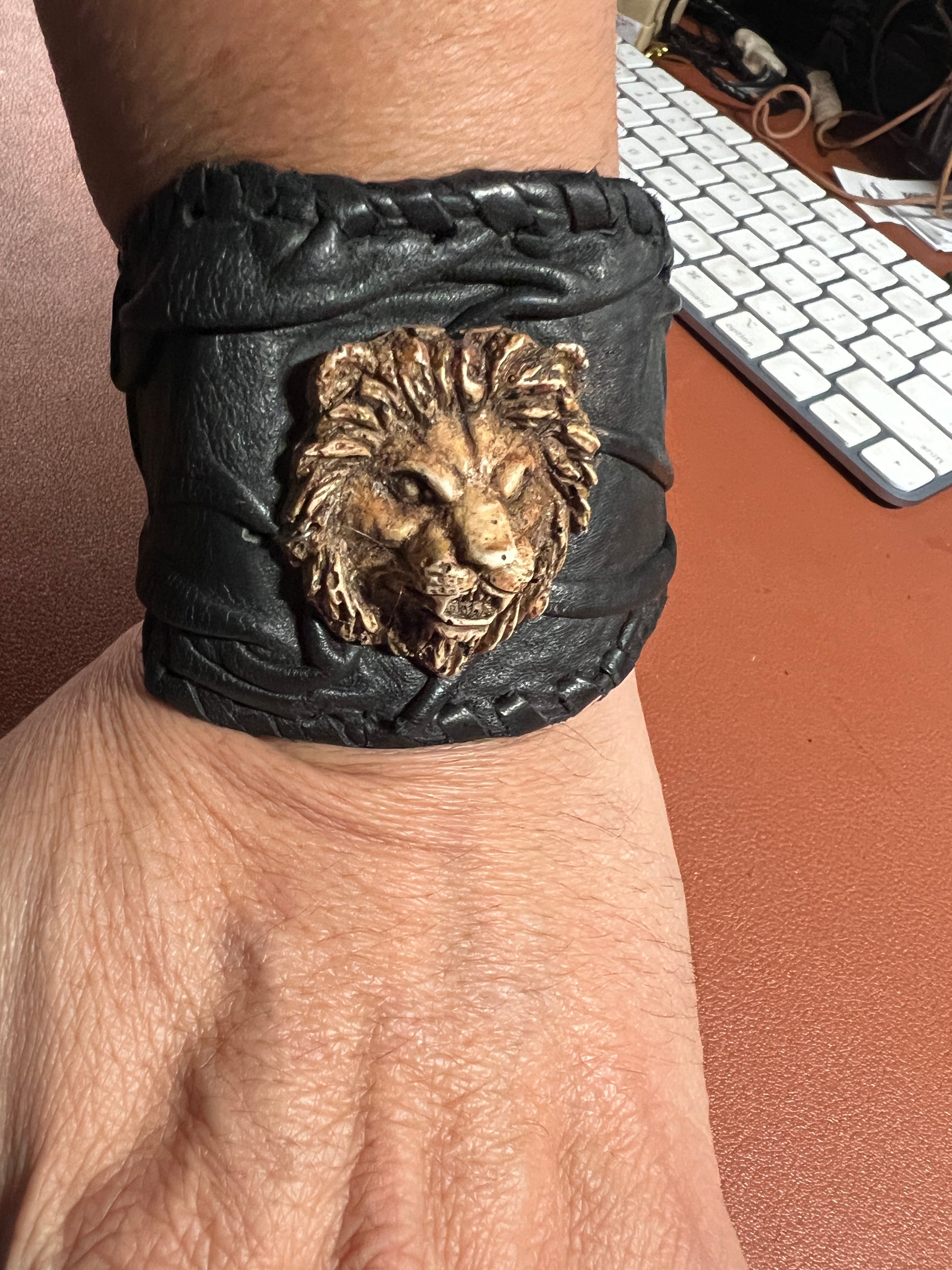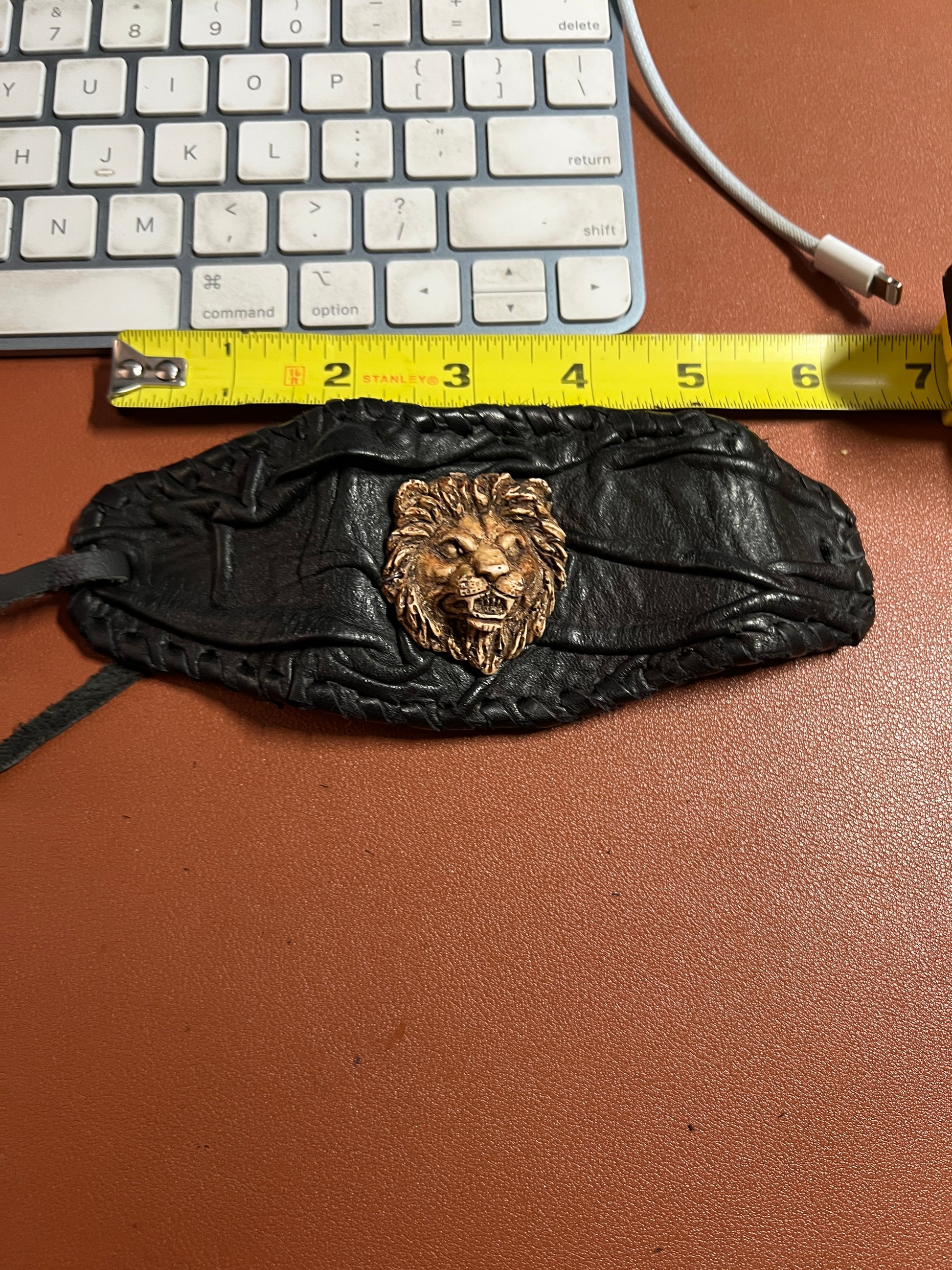 Leather Aztec Wrist Cuff Bracelet Lion, Leo, Mens, handmade Mexica Aztec (#36)