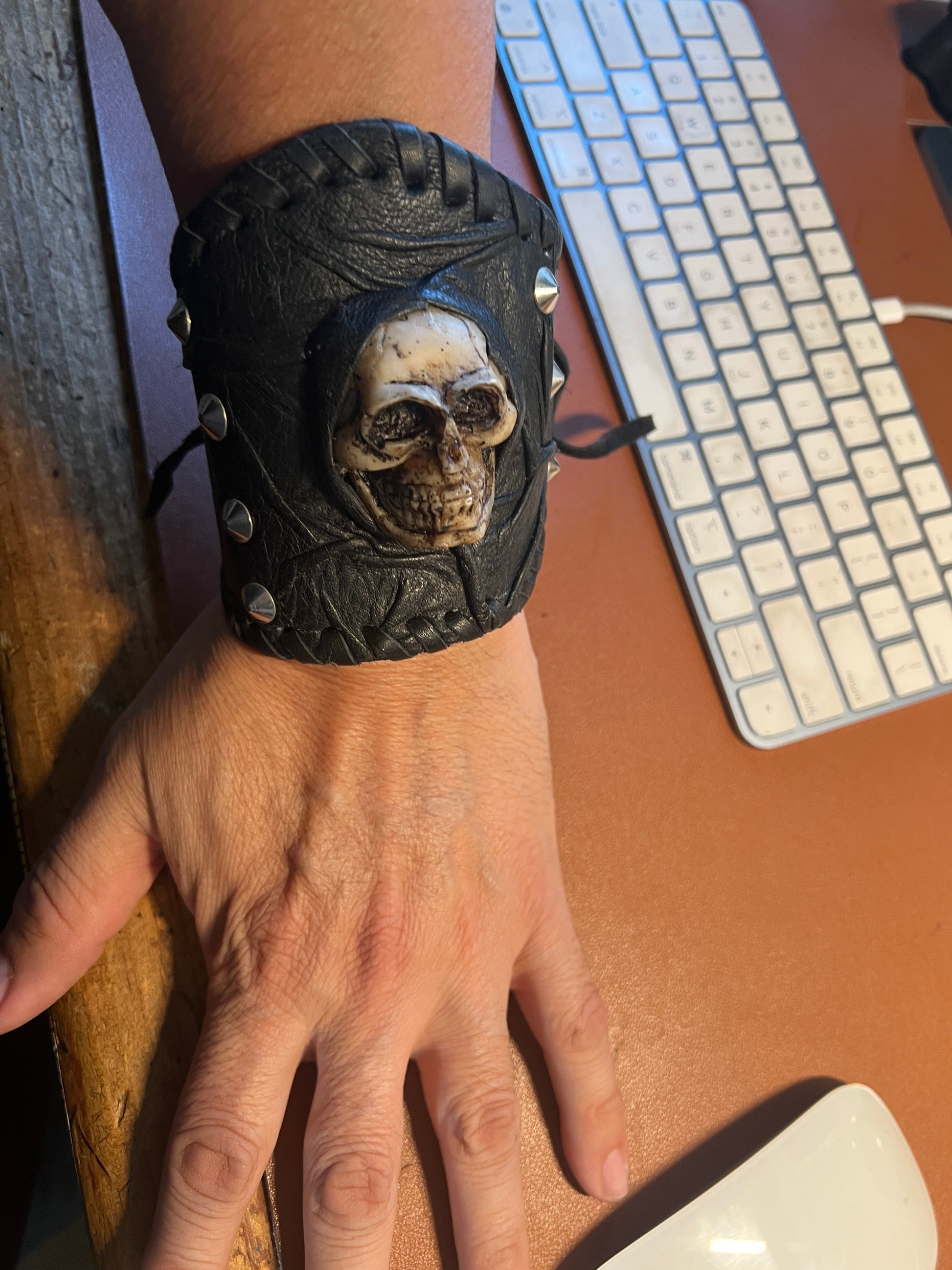Leather Aztec Wrist Cuff Bracelet Skull, Studs, Mens, handmade Mexica Aztec (#36)