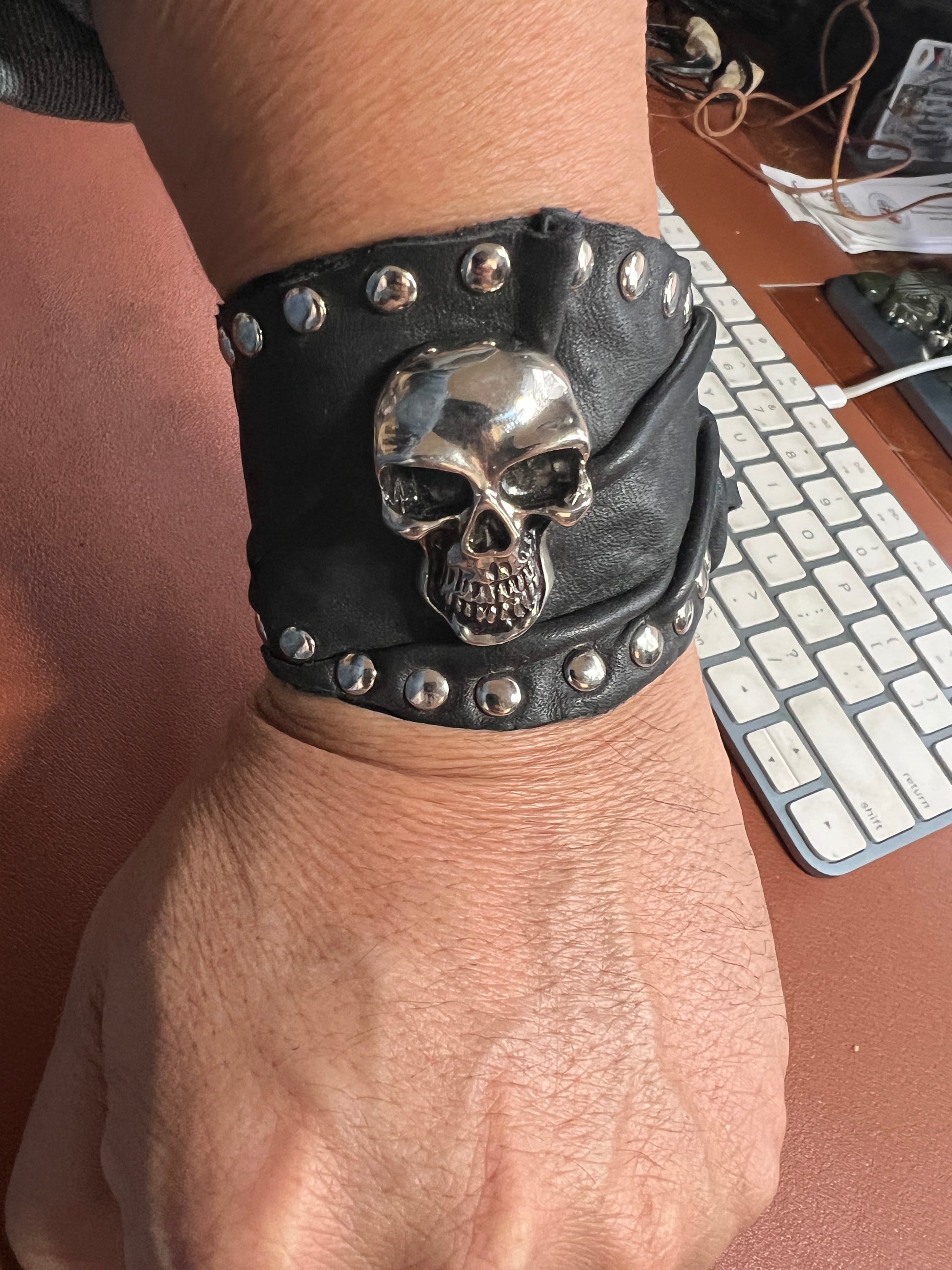 Leather Aztec Wrist Cuff Bracelet Skull, Studs, Mens, handmade Mexica Aztec (#37)