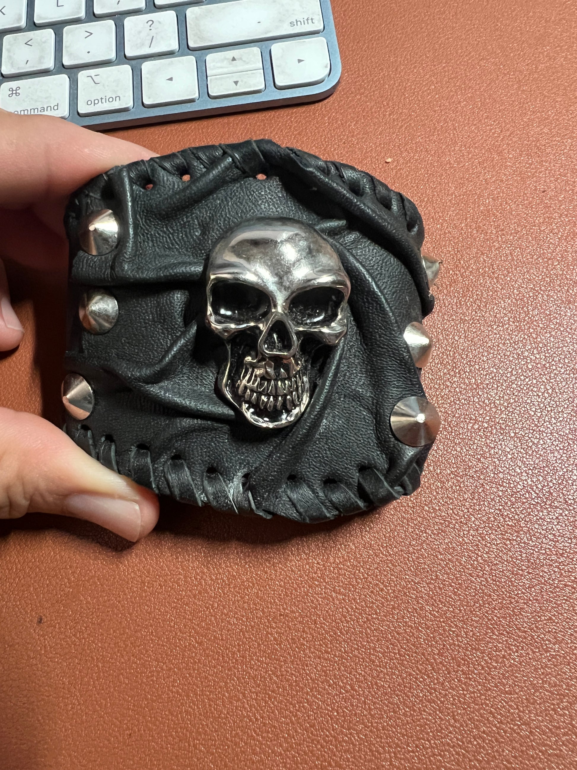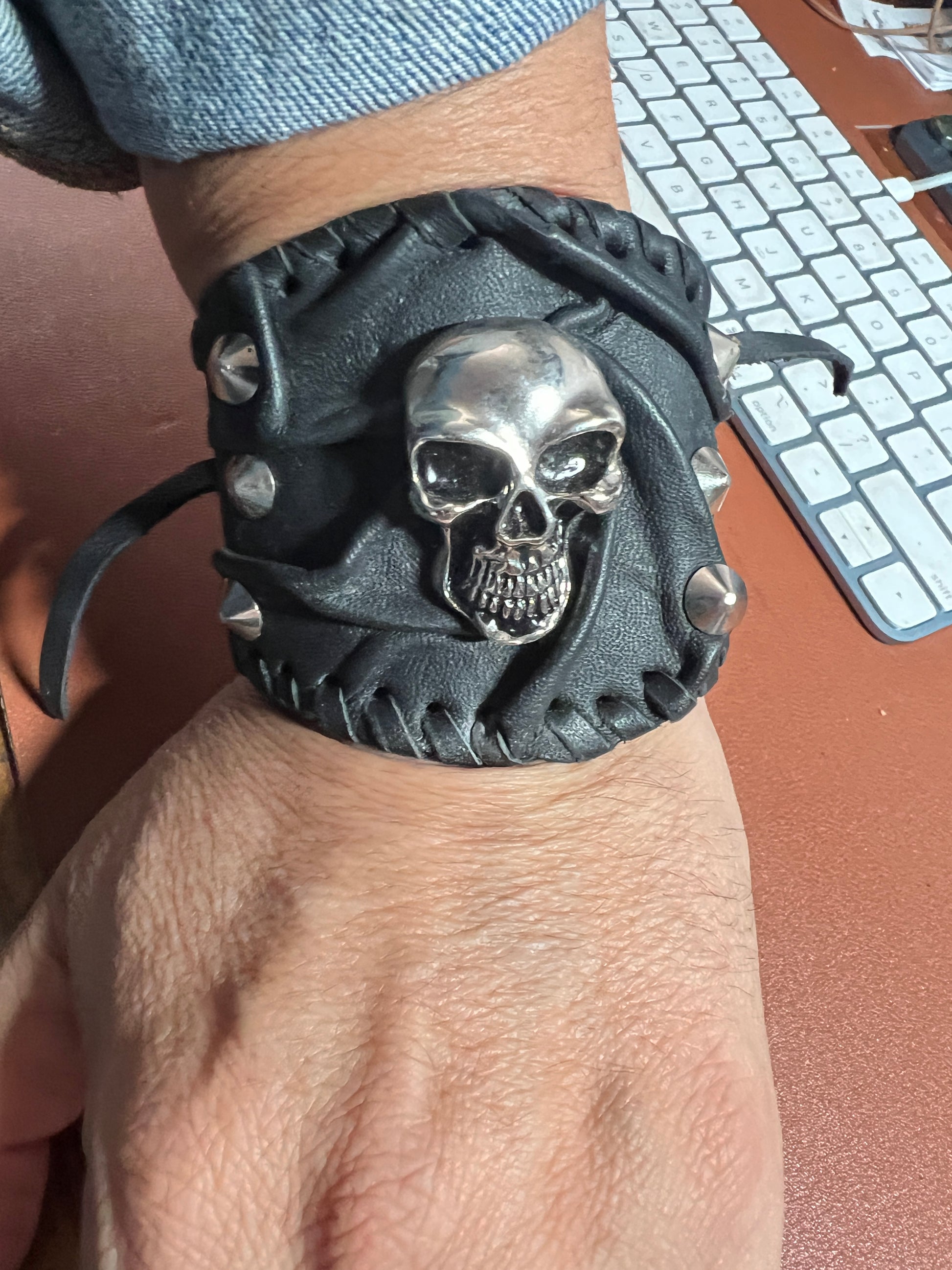 Leather Aztec Wrist Cuff Bracelet Skull, Studs, Mens, handmade Mexica Aztec #38