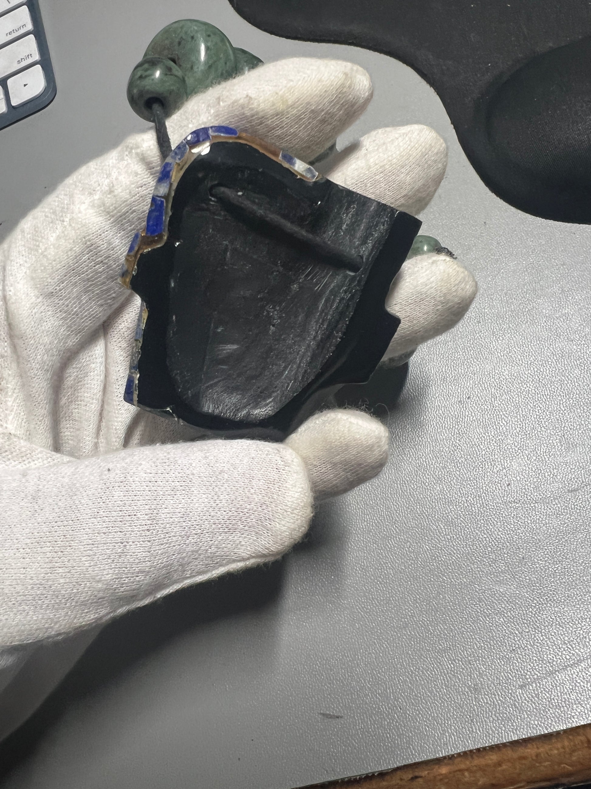 Life and Death Mayan Aztec Mask Pendant Necklace, Obsidian, Blue Soladite, Mother of Pearl, #13