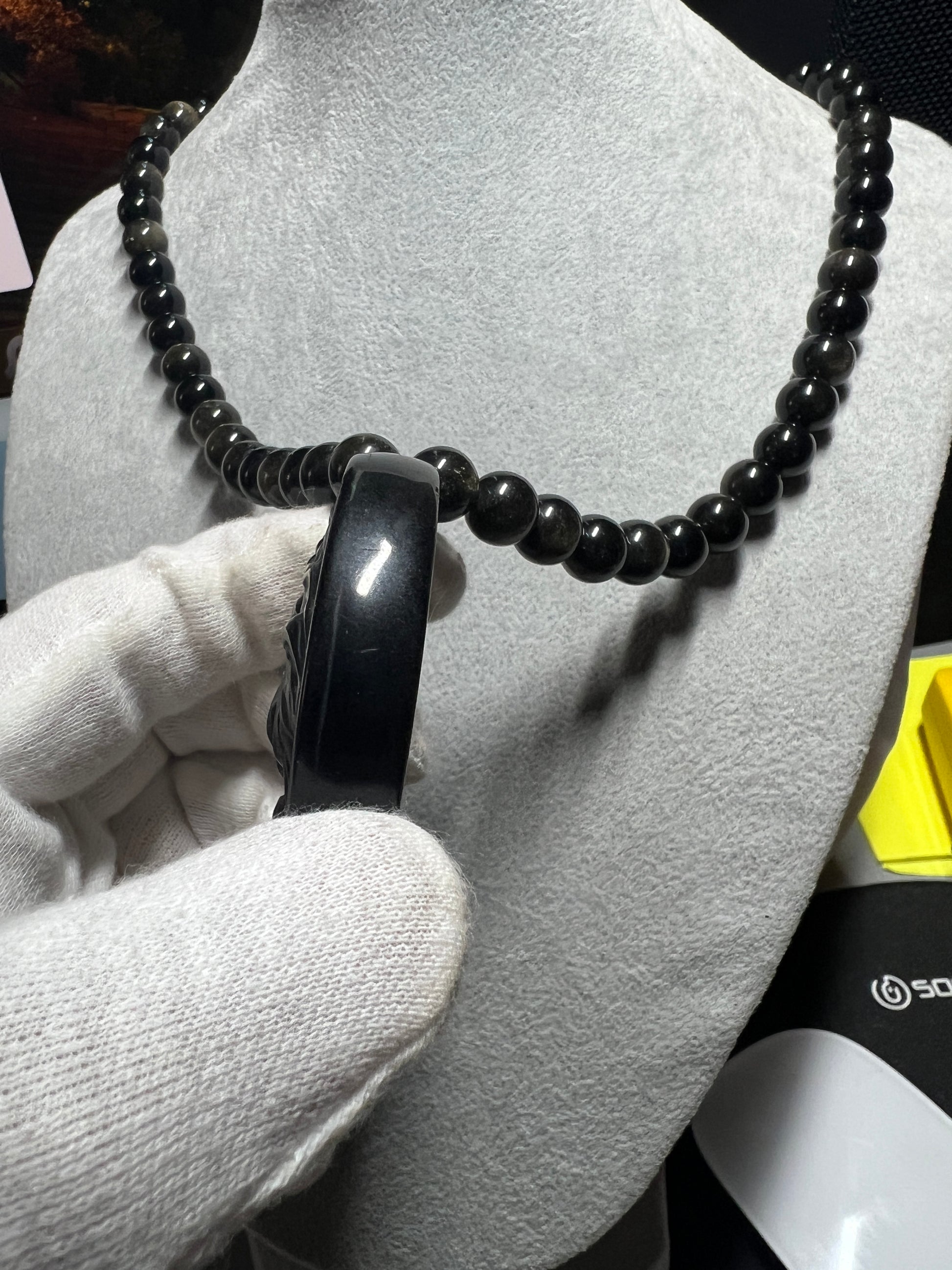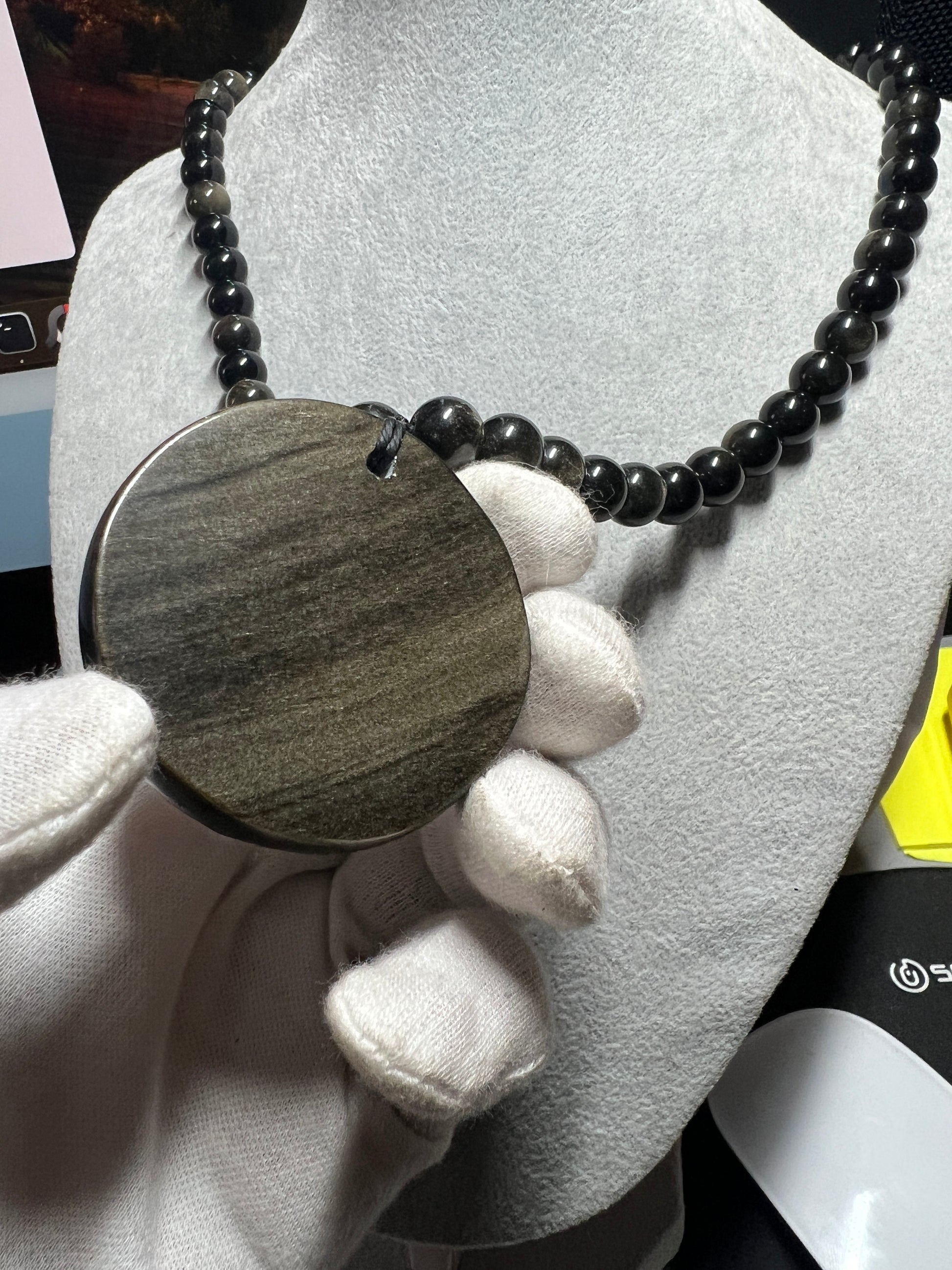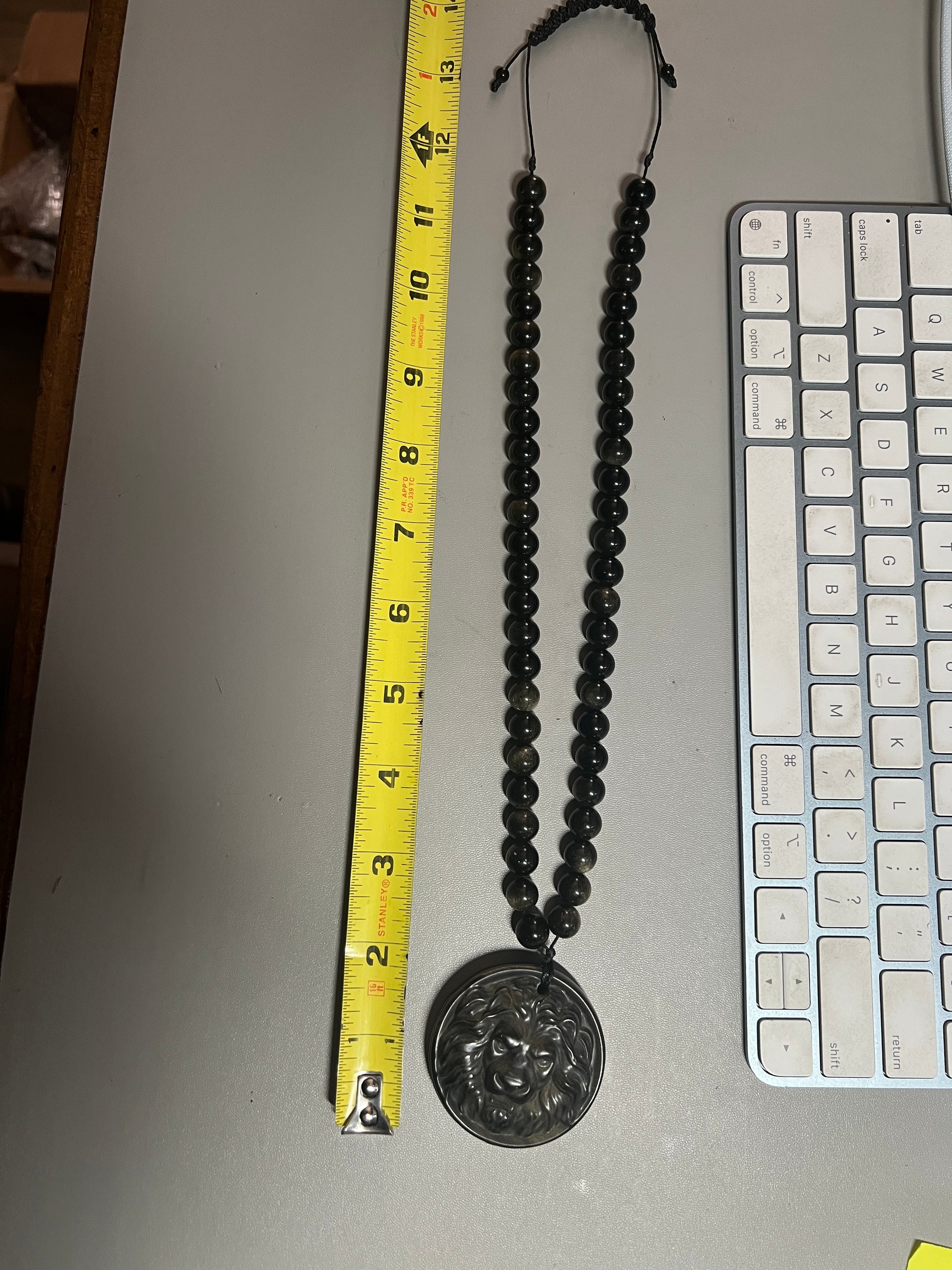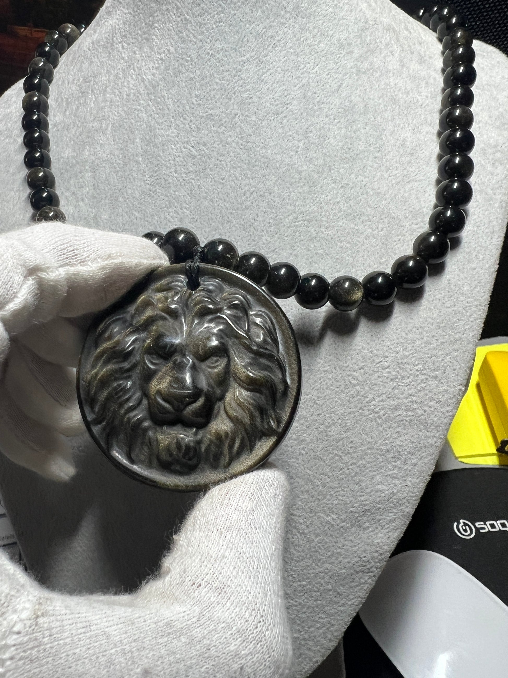 Lion Gold Obsidian Pendant Beaded Necklace, Lions, King of Jungle, Rare, Unique (#16)
