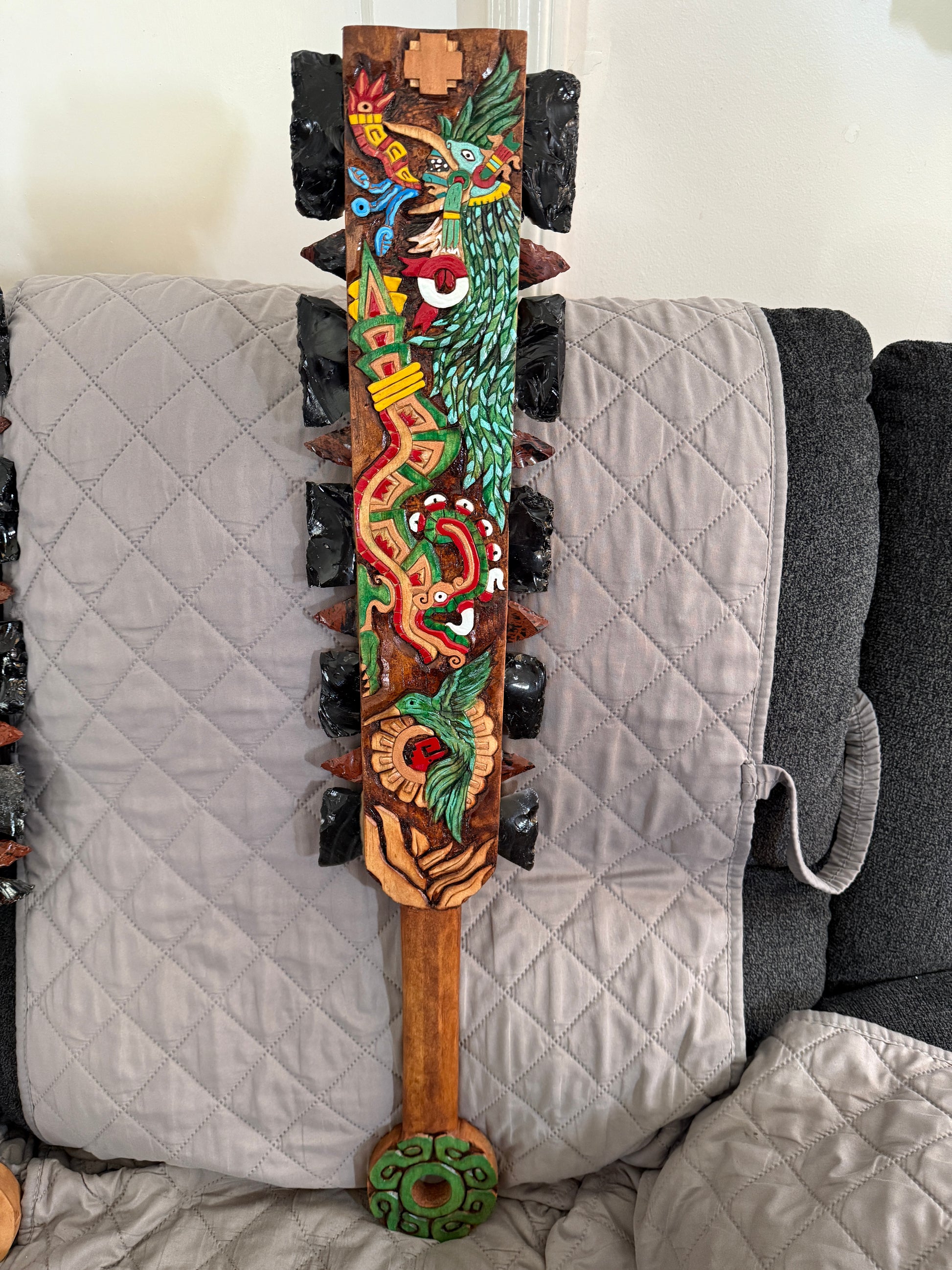 Macuahuitl Aztec Huitzilopochtli, Humming Bird Warrior, Mexican, Ancient Mexico 31.5"