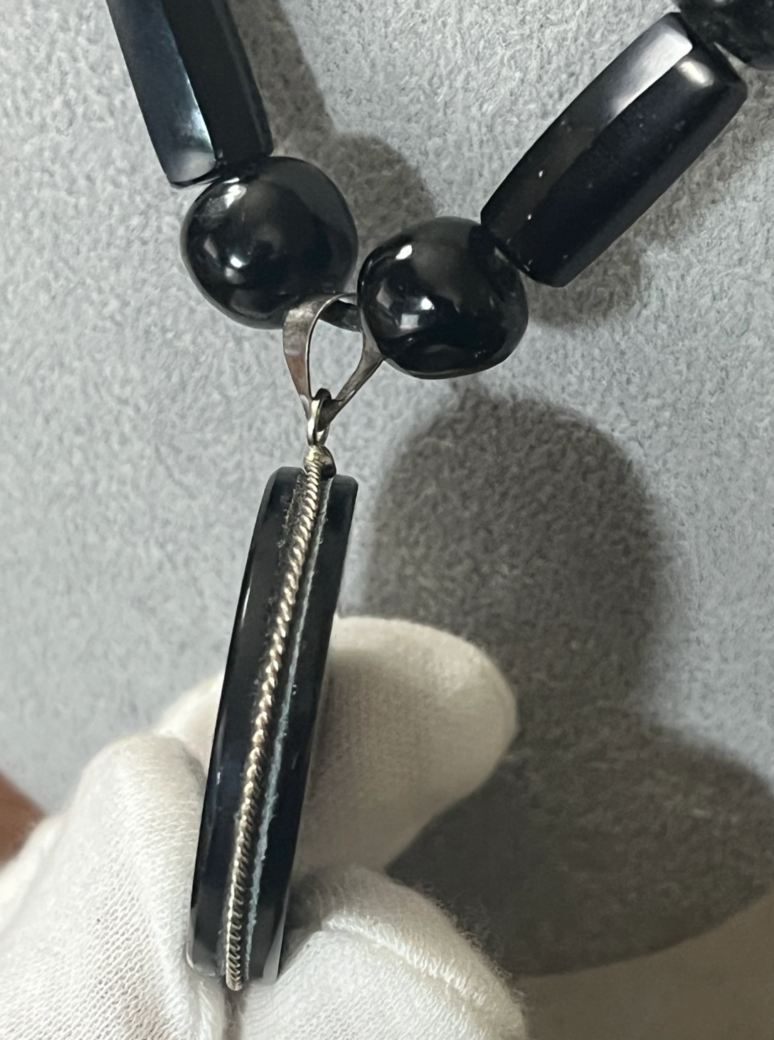 Mayan 4 Directions, Cardinal, Medicine Wheel, Obsidian Pendant with Obsidian Beads, Necklace #17