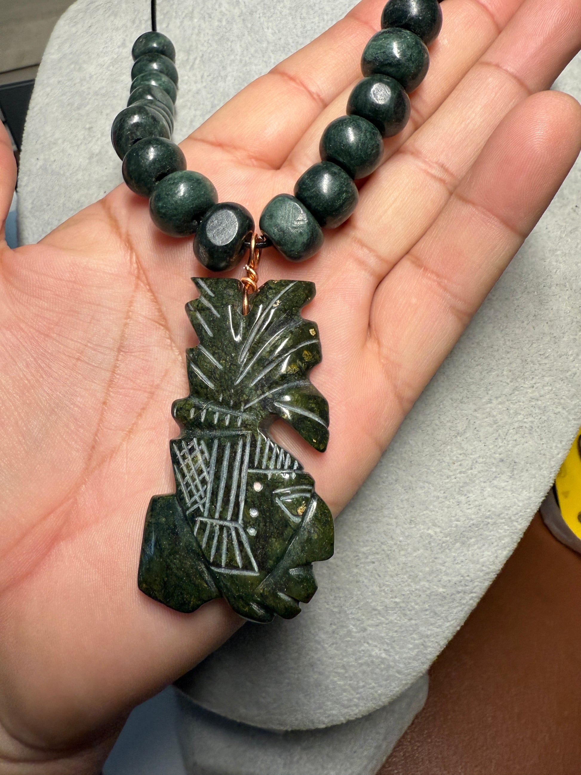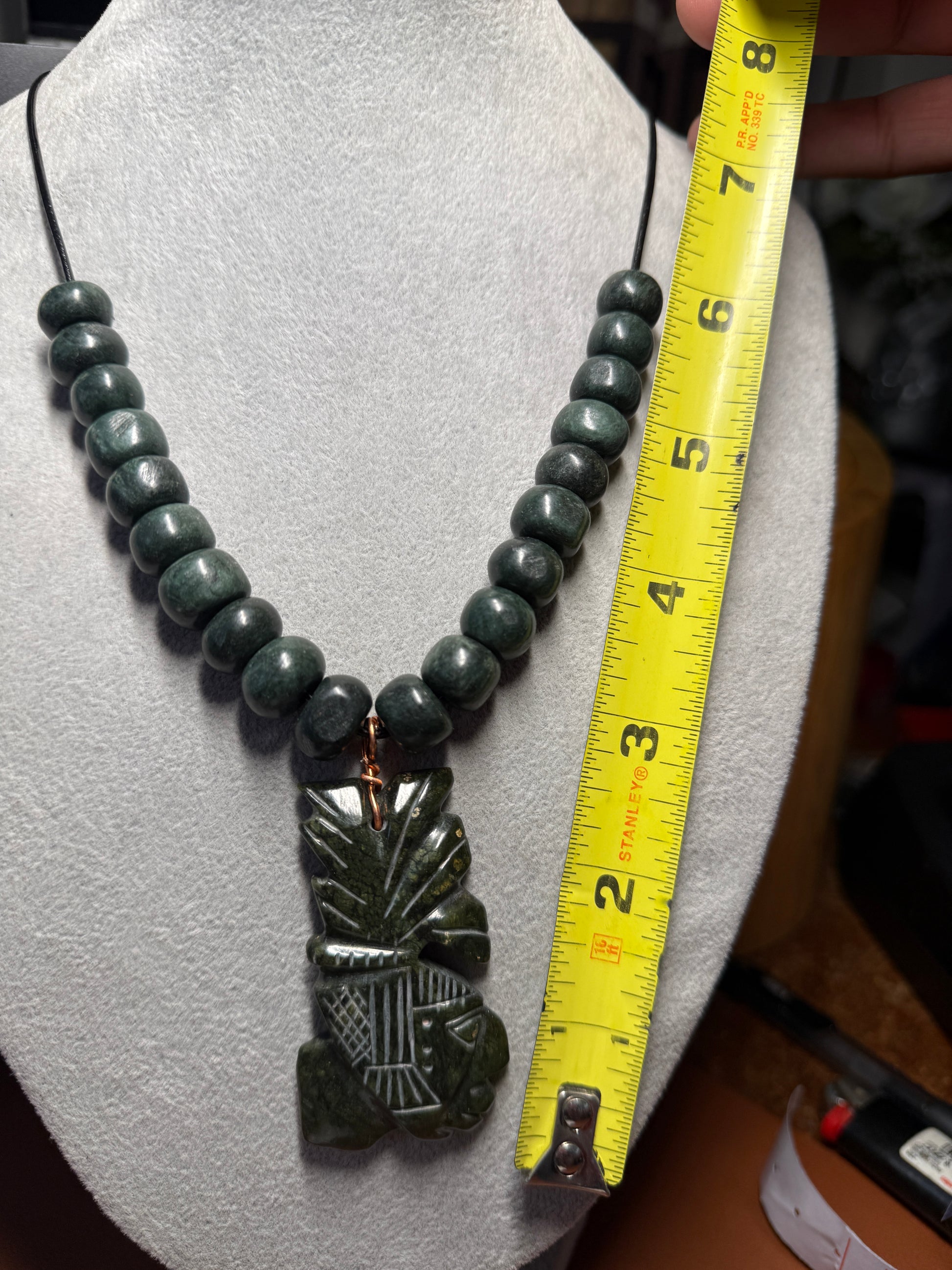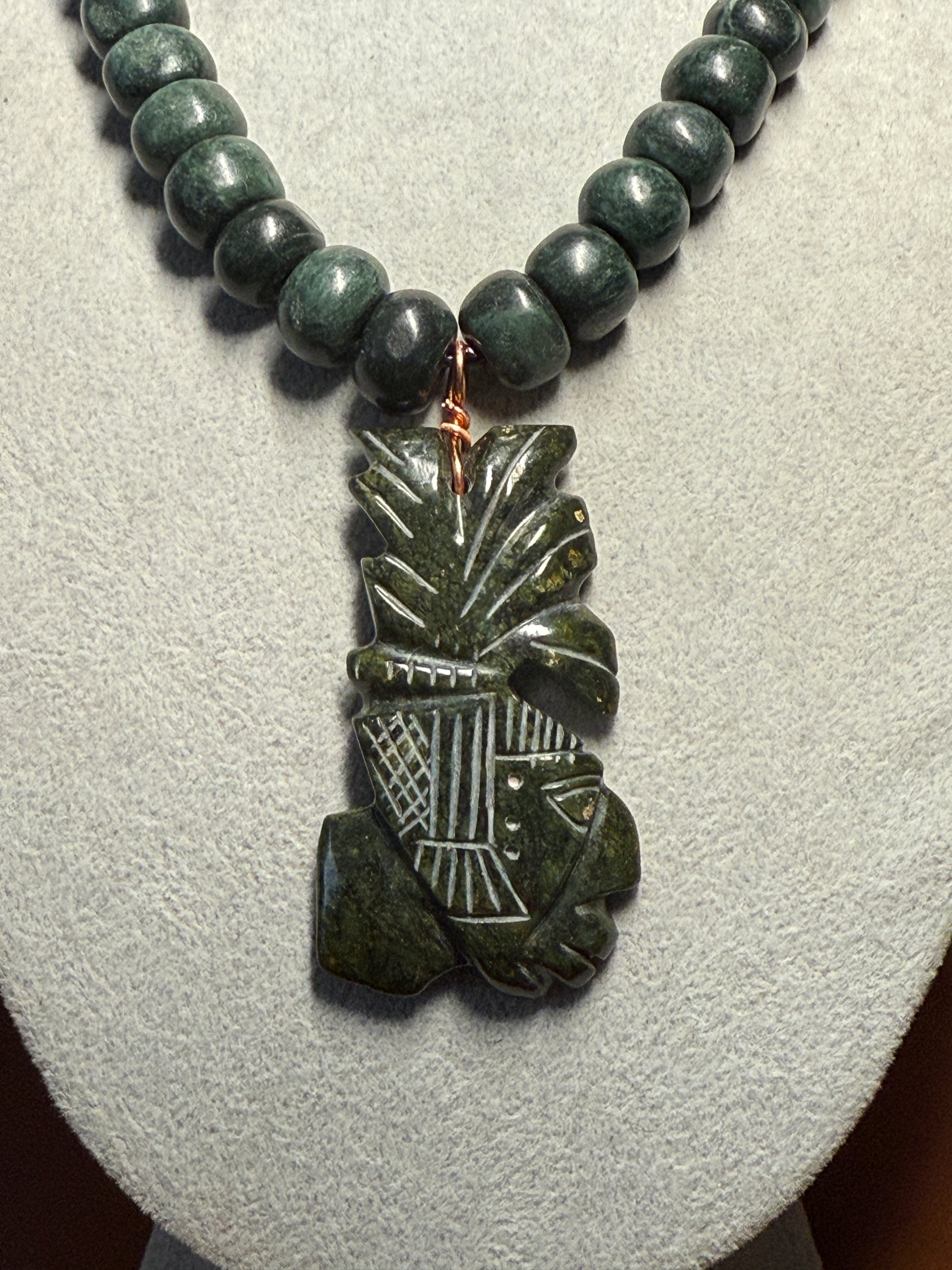 Mayan Emperor K'inich Janaab' Pakal the Great Pendant, Serpentine Stone, Guatemalan Marble, Beaded, Necklace, Mayan, Mexico