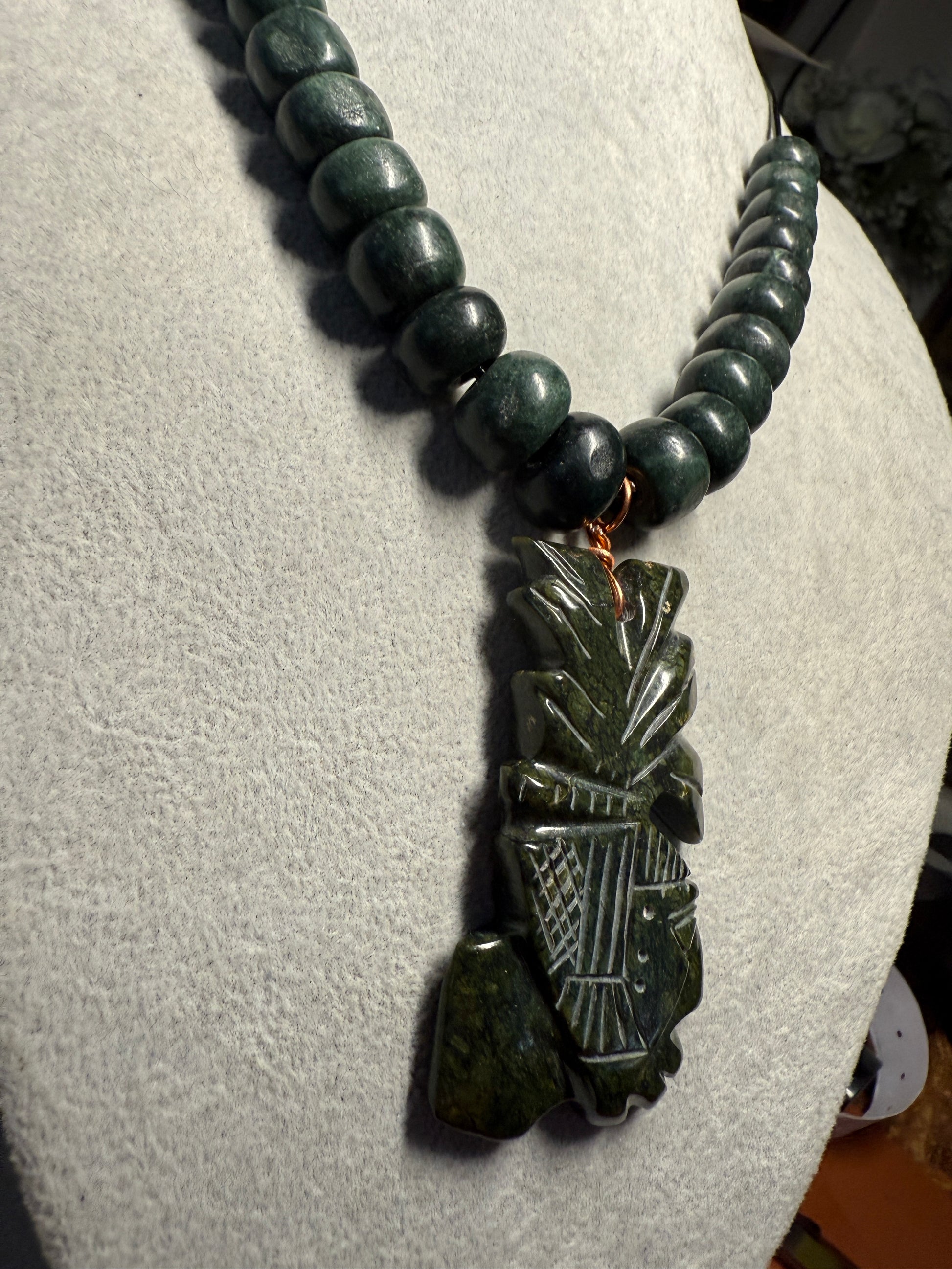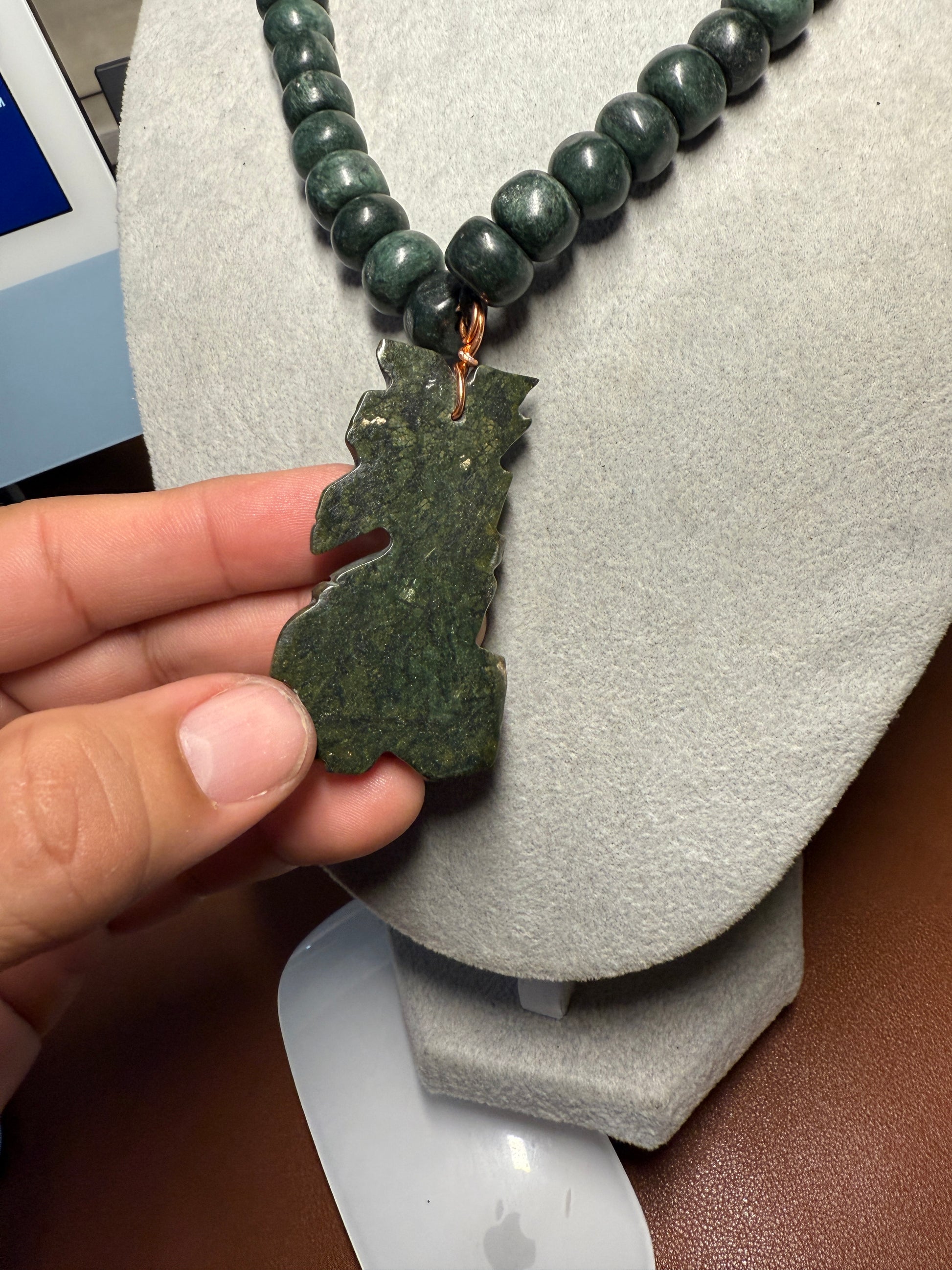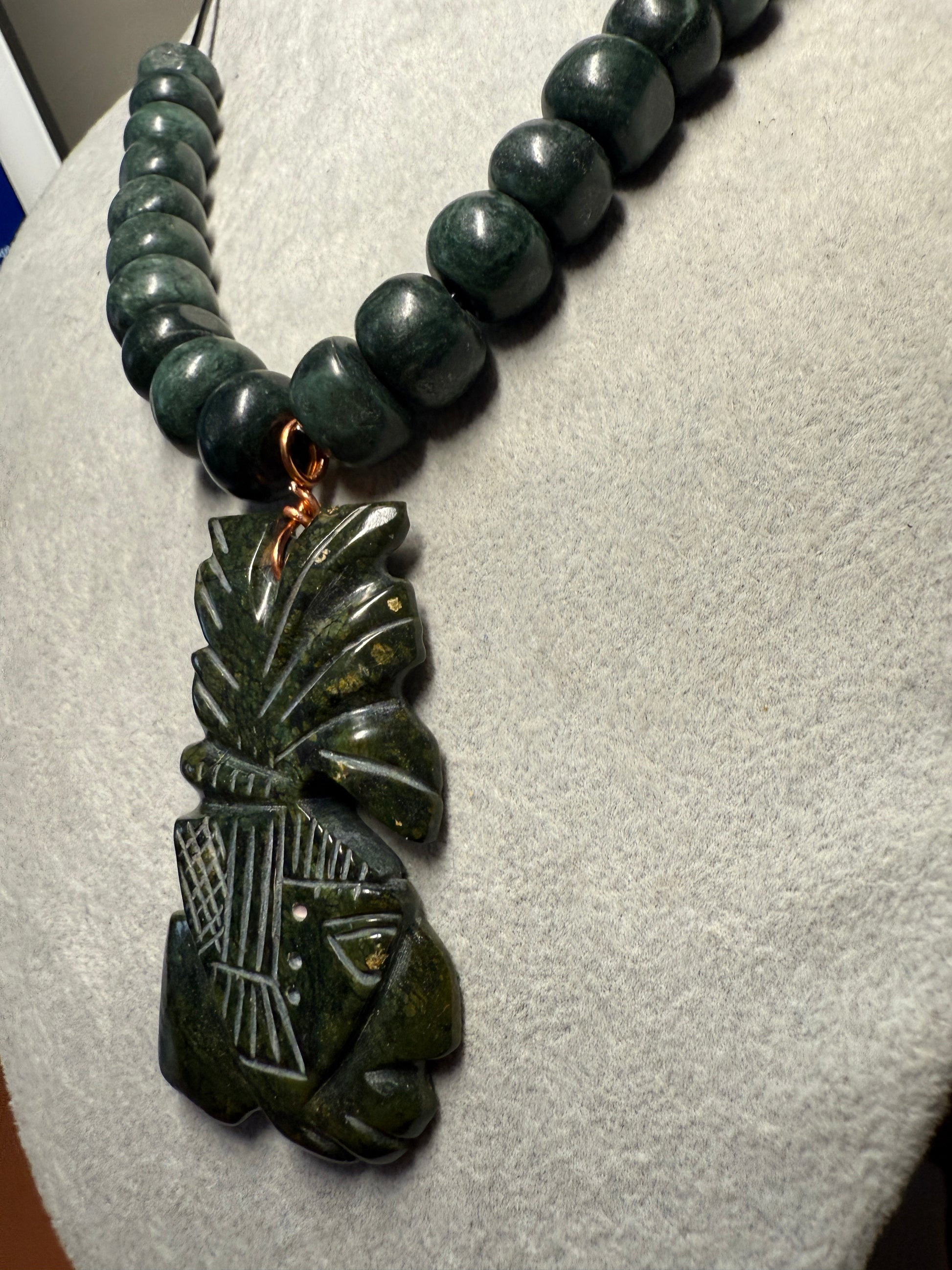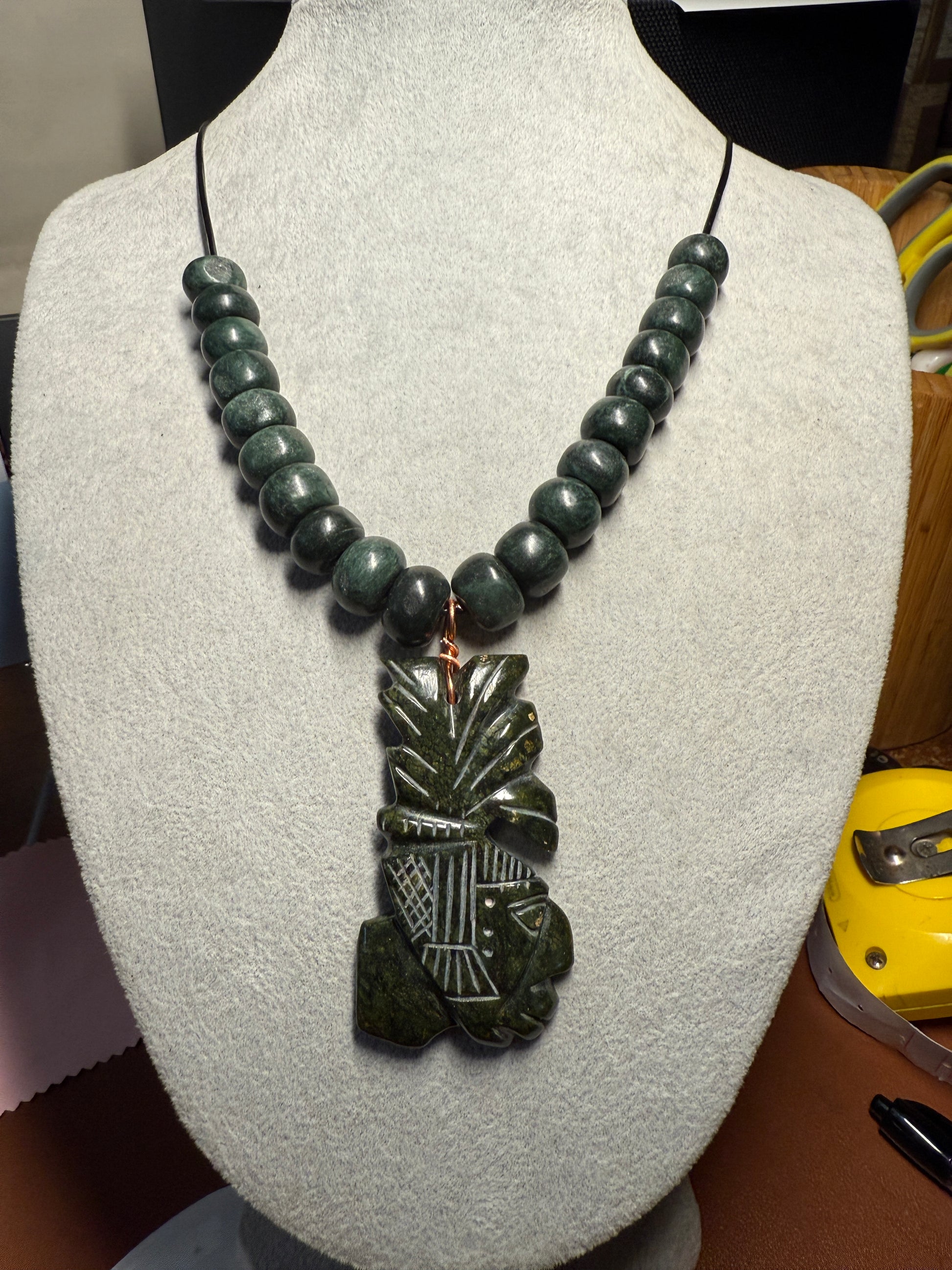Mayan Emperor K'inich Janaab' Pakal the Great Pendant, Serpentine Stone, Guatemalan Marble, Beaded, Necklace, Mayan, Mexico