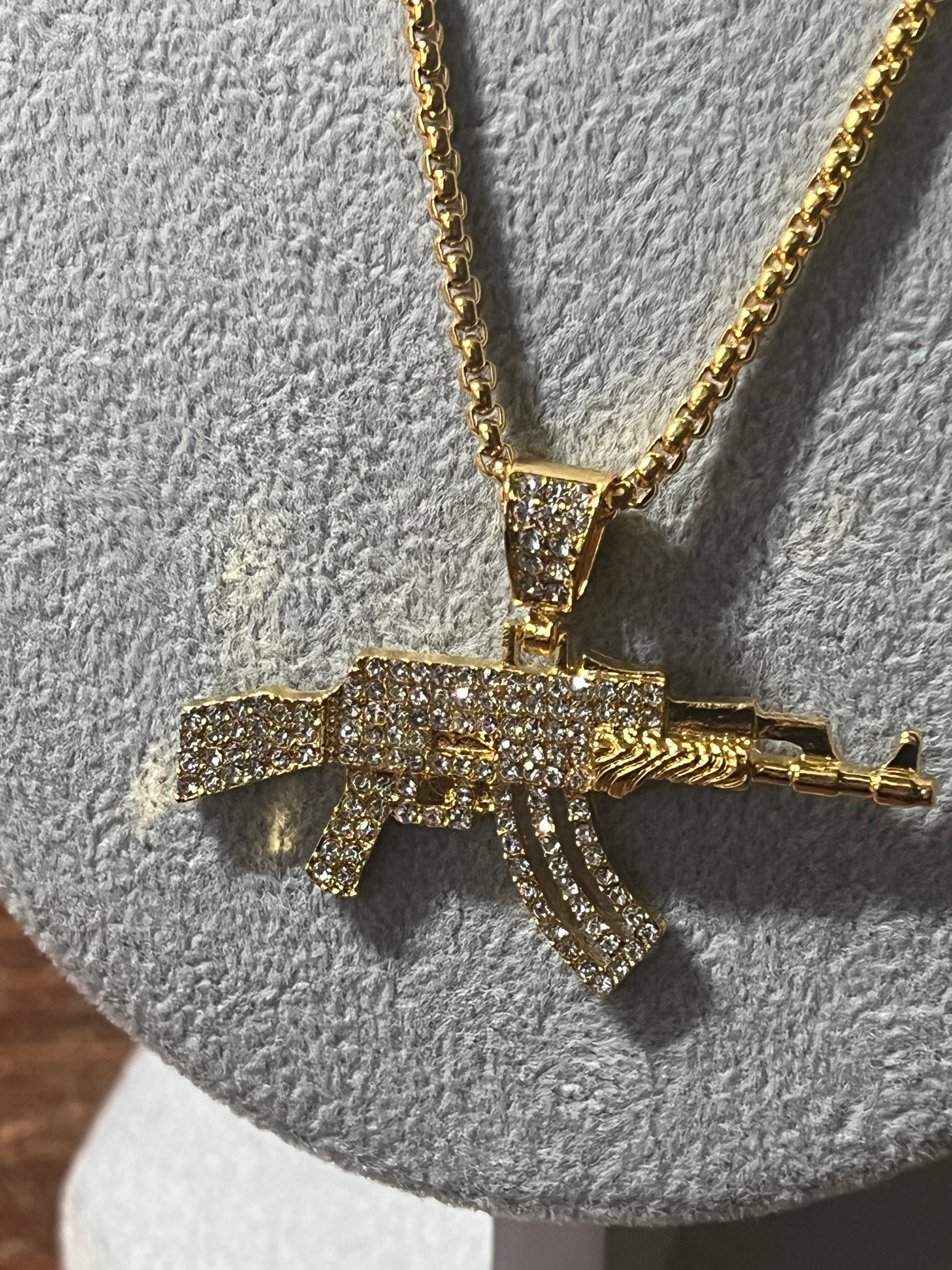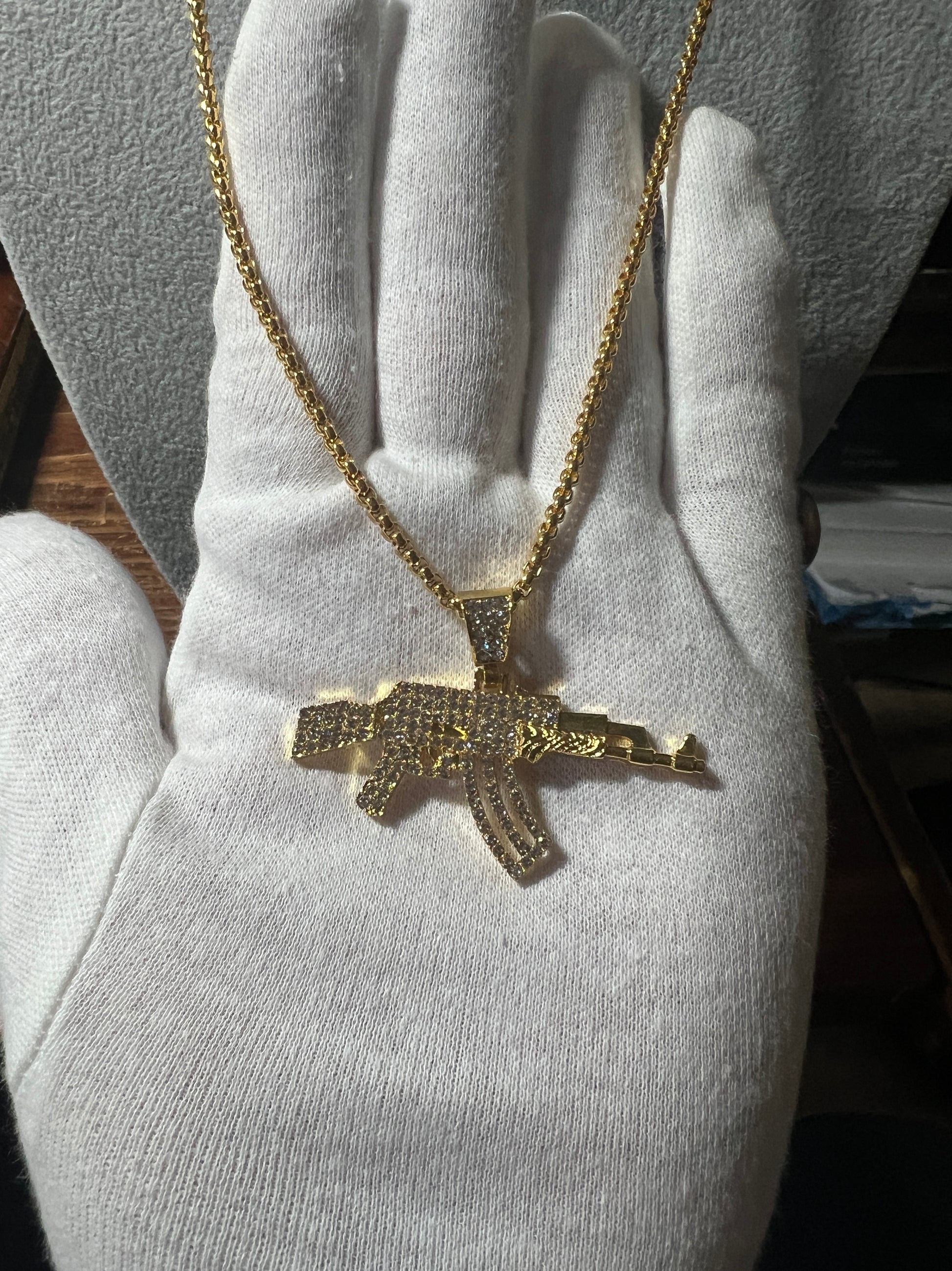 Men's alloy 2" AK pistol necklace High Quality Gold Tone Gun Pendant Hiphop Pendant For Man 23" (#20)