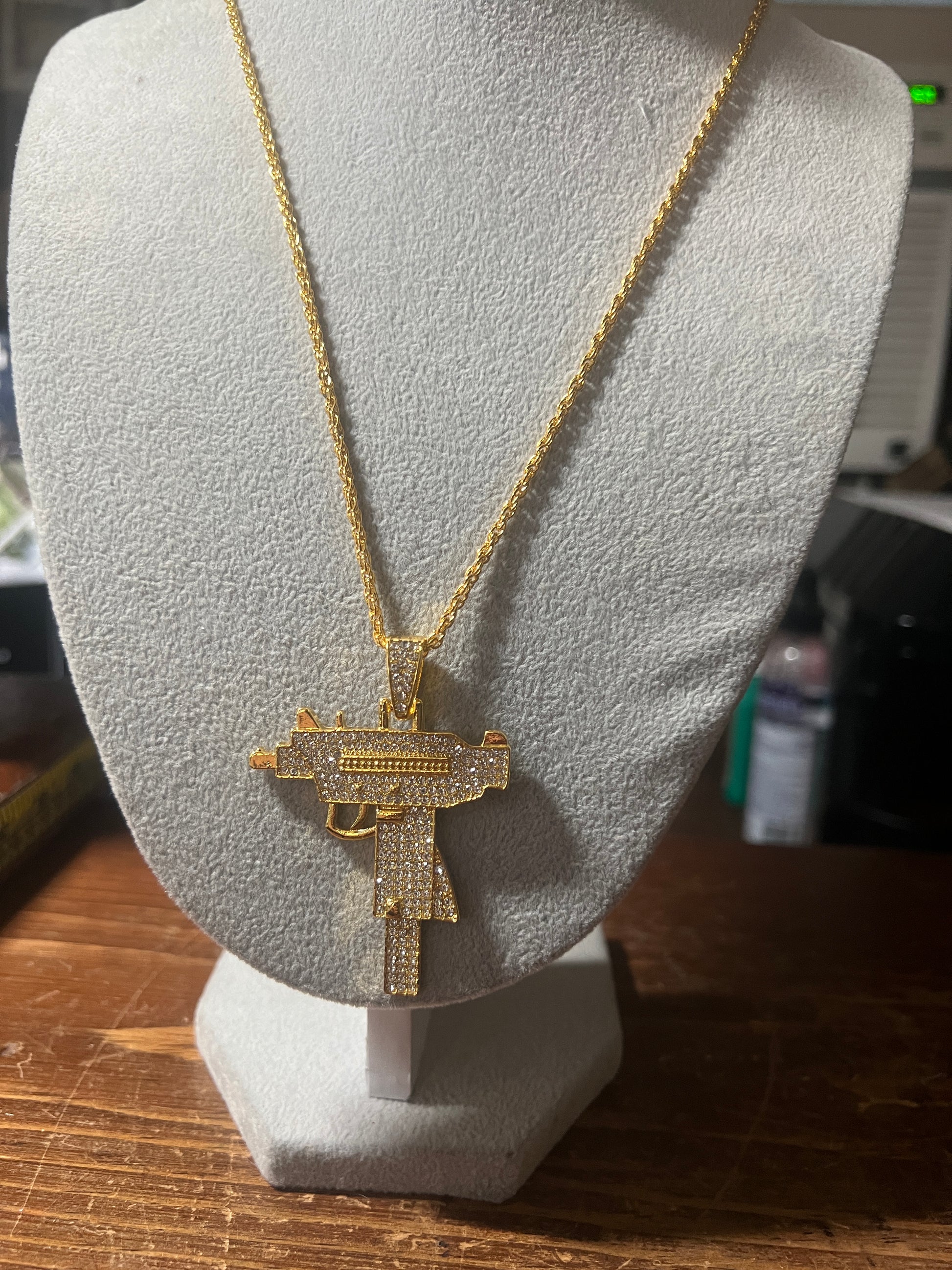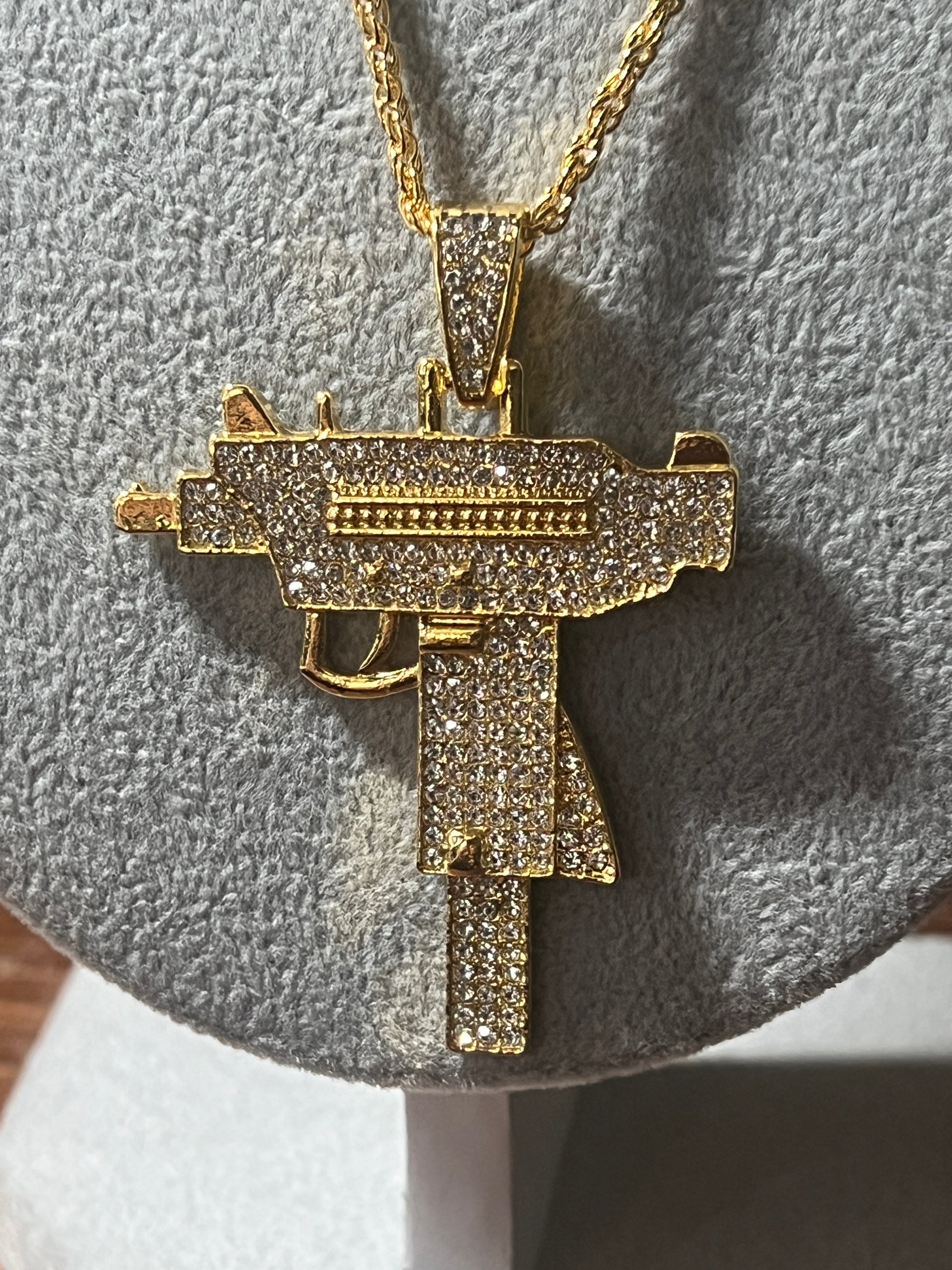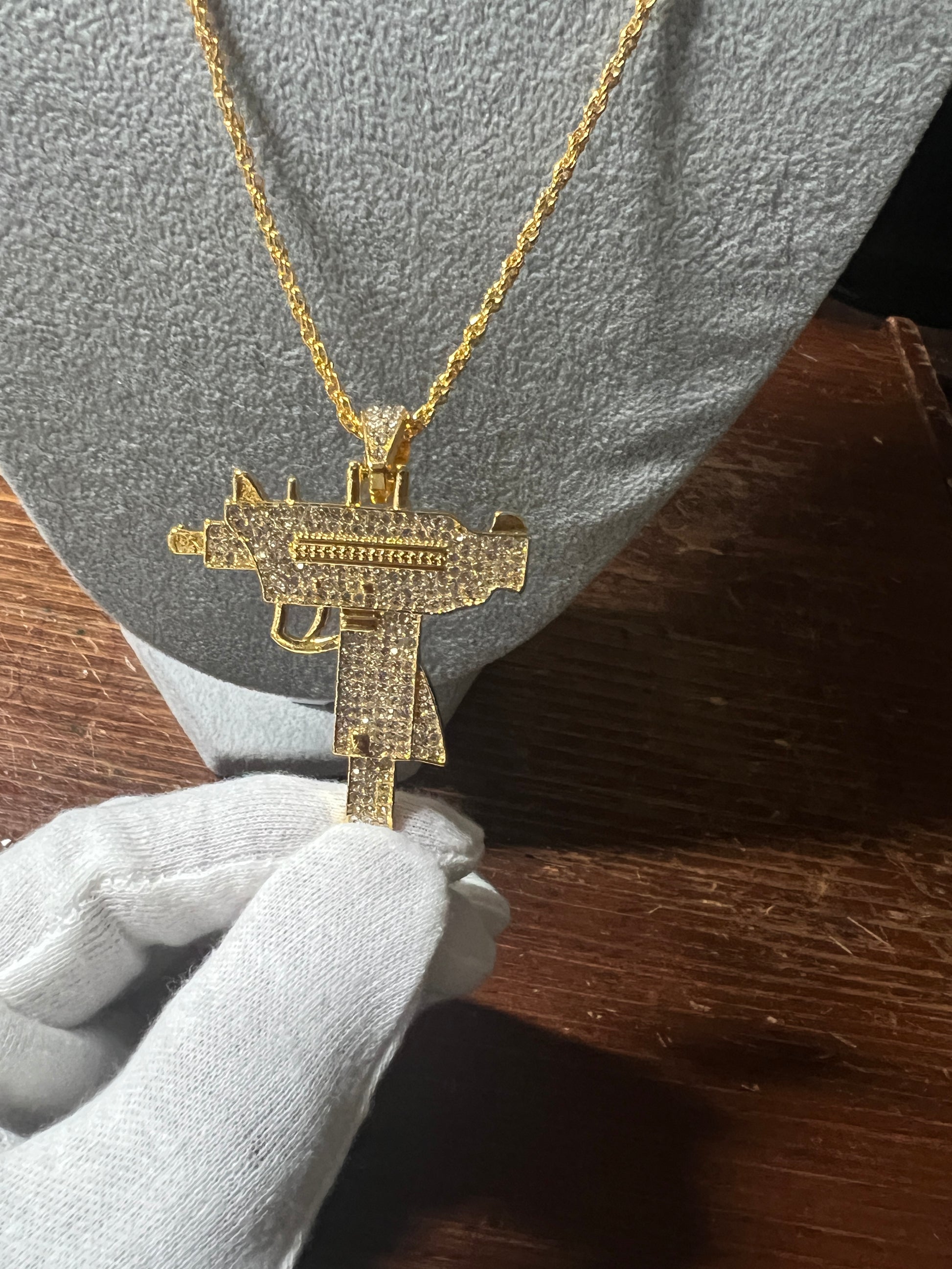 Men's alloy 2" MAC pistol necklace High Quality Gold tone Gun Pendant Hiphop Pendant For Young Man 23" Long Chain
