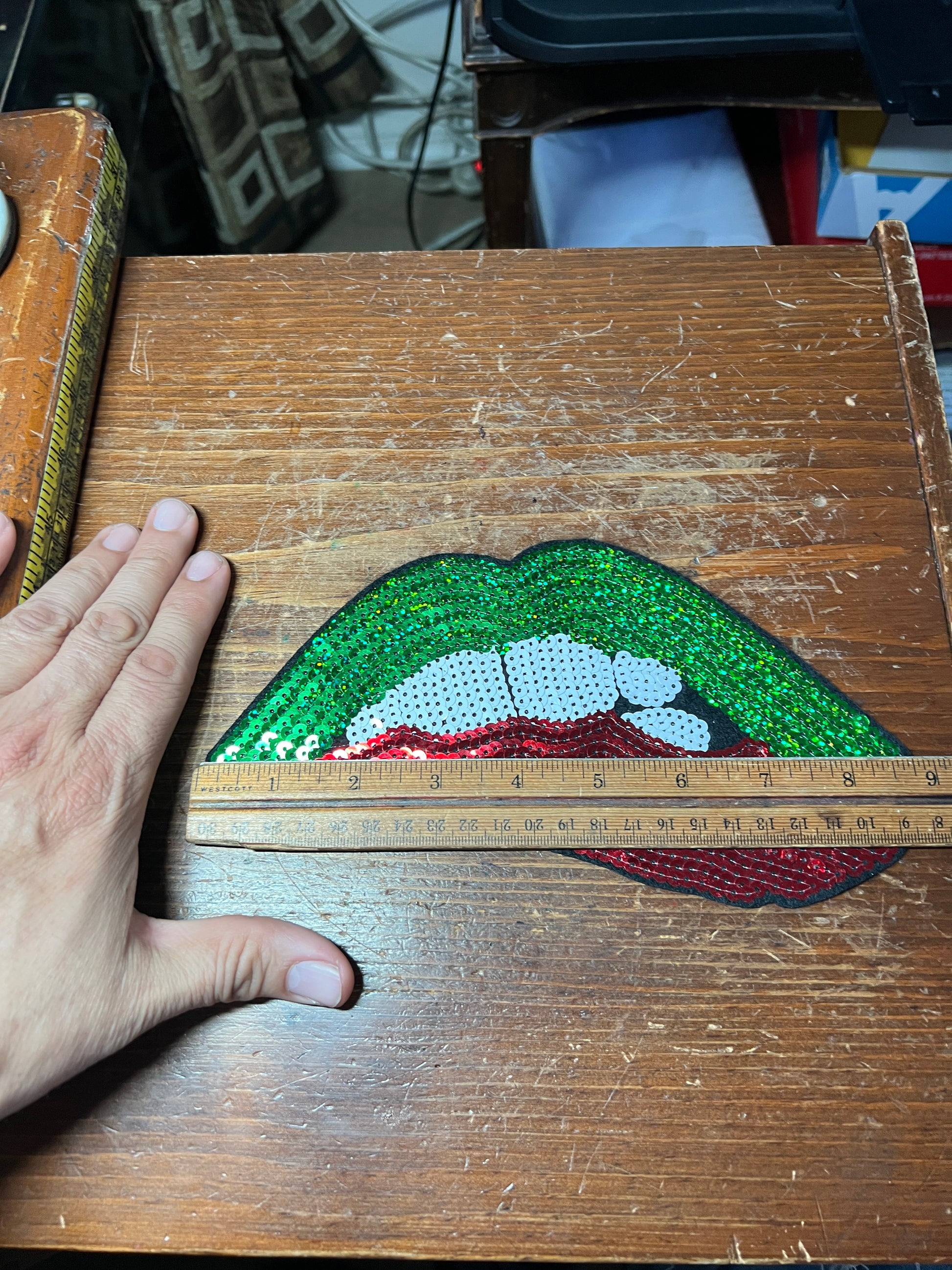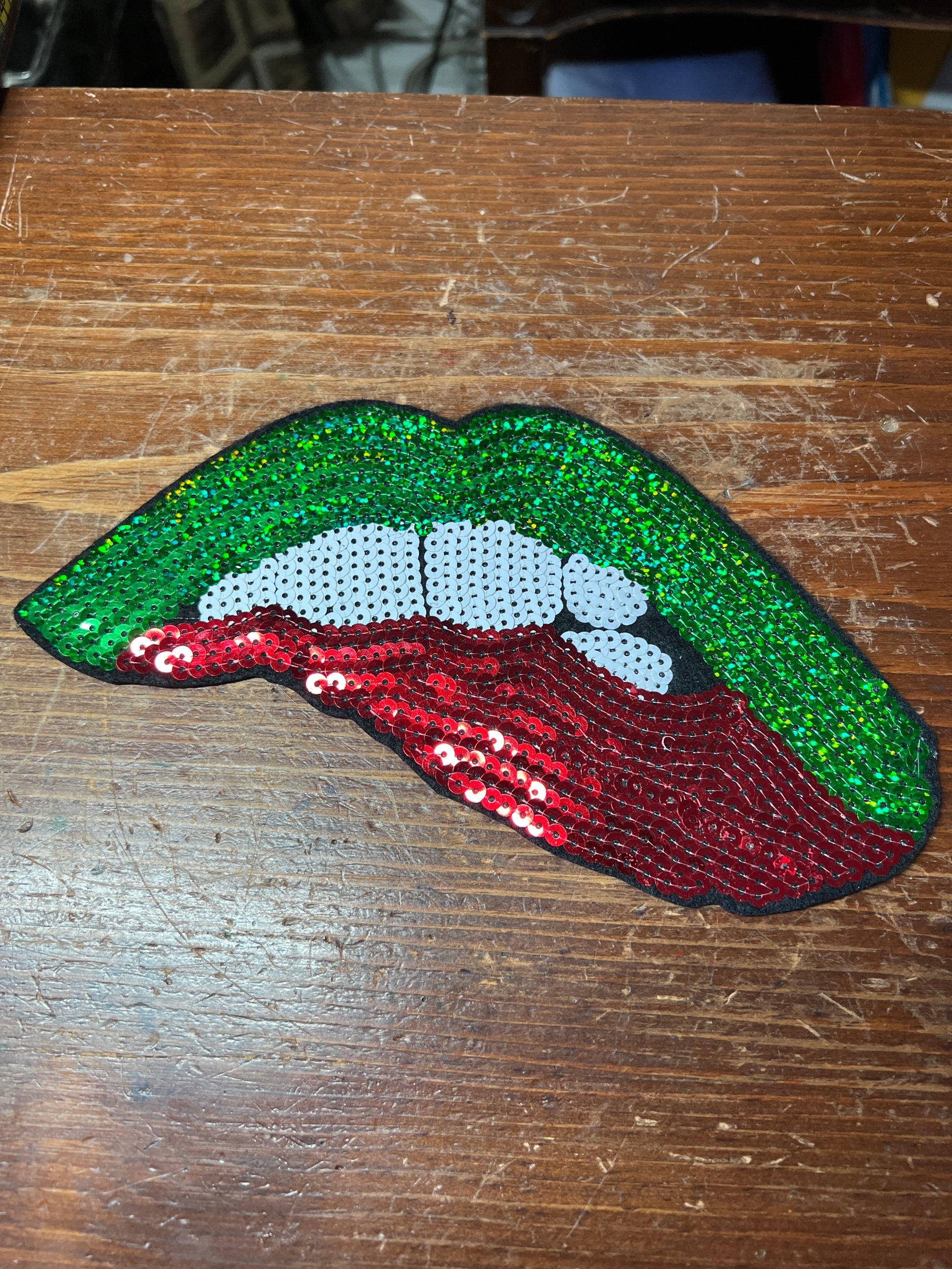 Mexican Kiss Bite, Sexy Lips, Yummy, Delicious, Mexico, Large 9", iron-on patch, Sequins (#31)