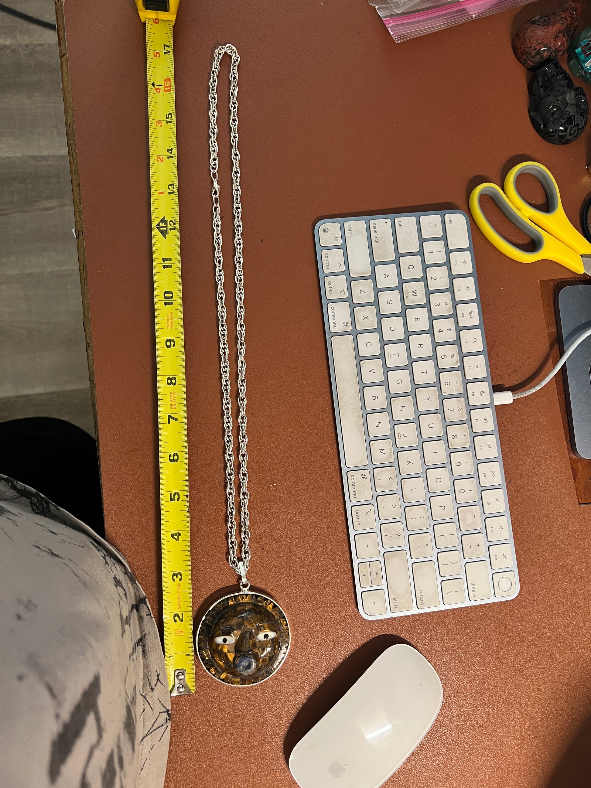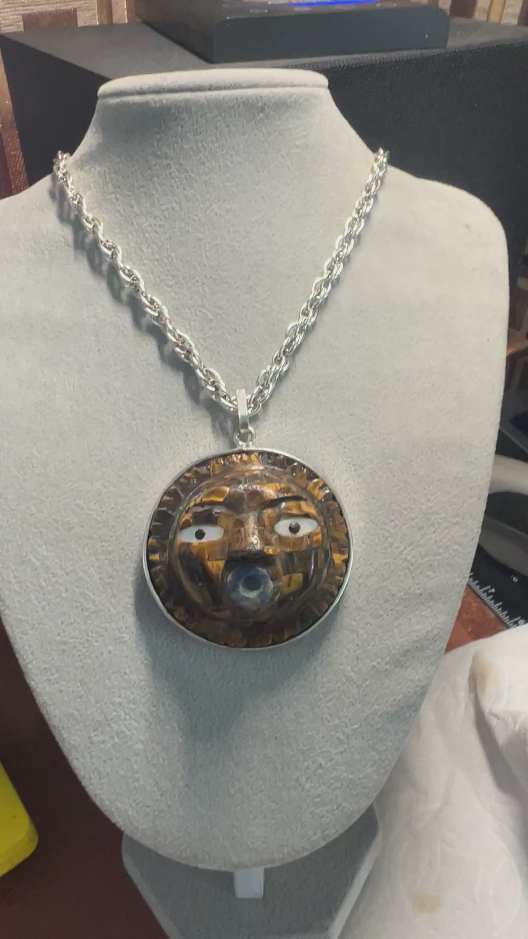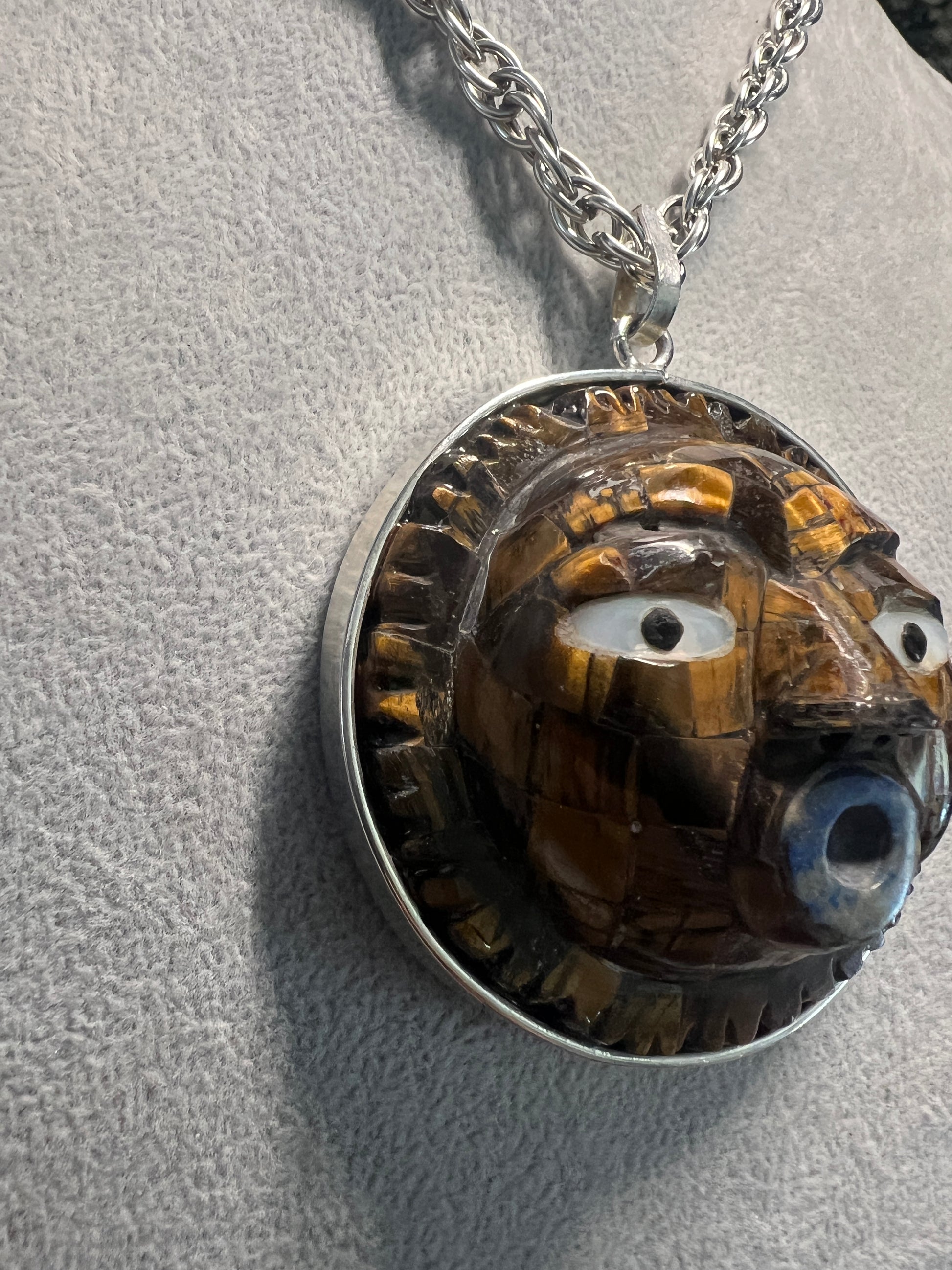 Mexican Sun Pendant, Tiger Eye Stone, Necklace, Mexico, Folk Art, Aztecs, Mexica