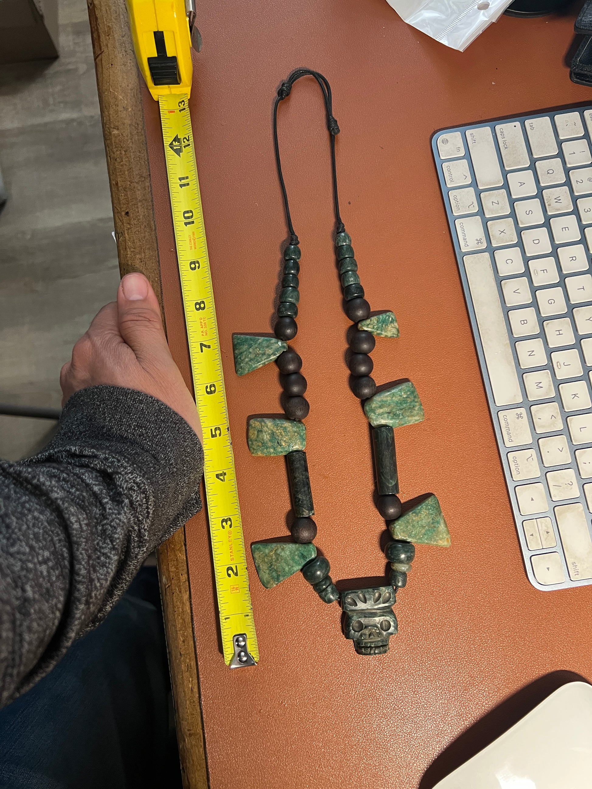 Mictlantecuhtli Crown Skull Aztec Death Lord Pendant, Serpentine, Jade, Bead #37