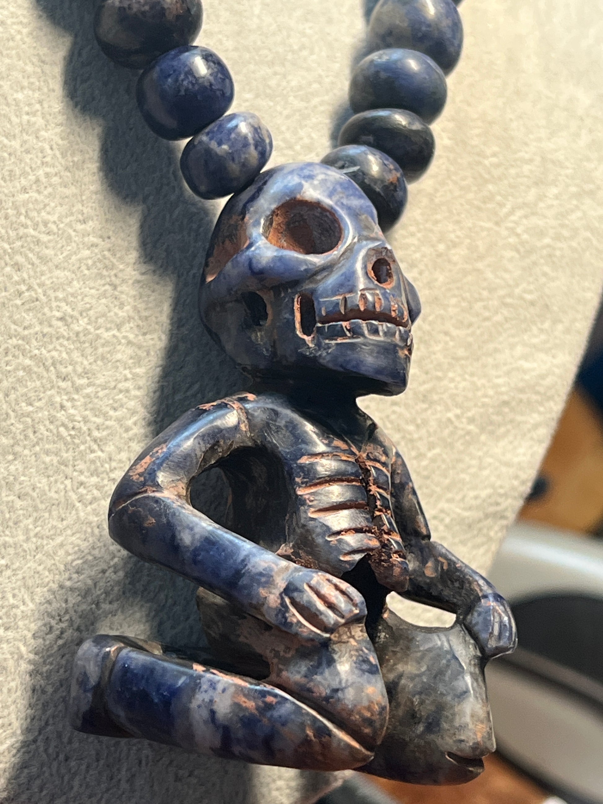 Mictlantecuhtli Sodalite Azul Aztec Death Lord Pendant, Necklace Mexico (#17)