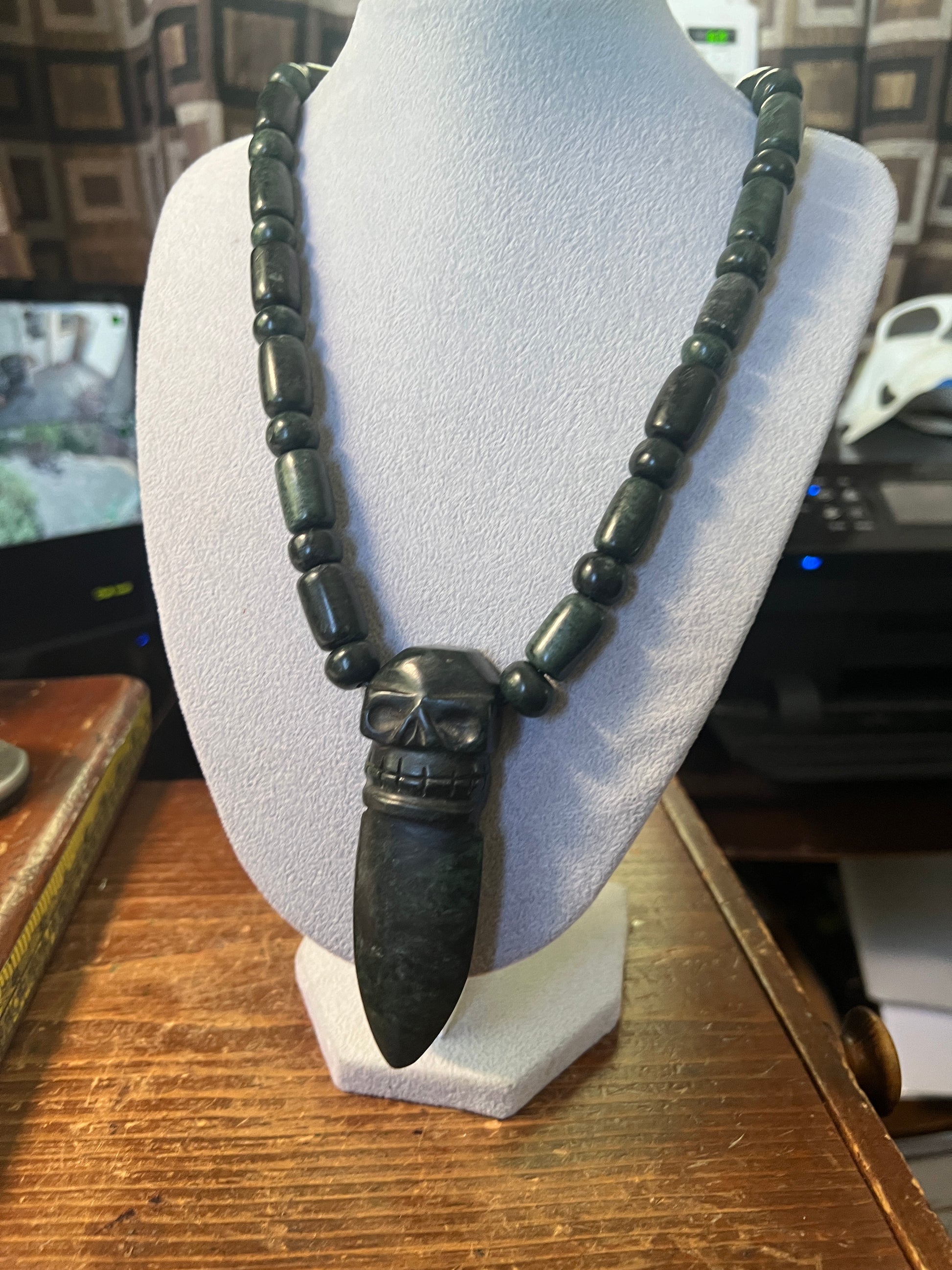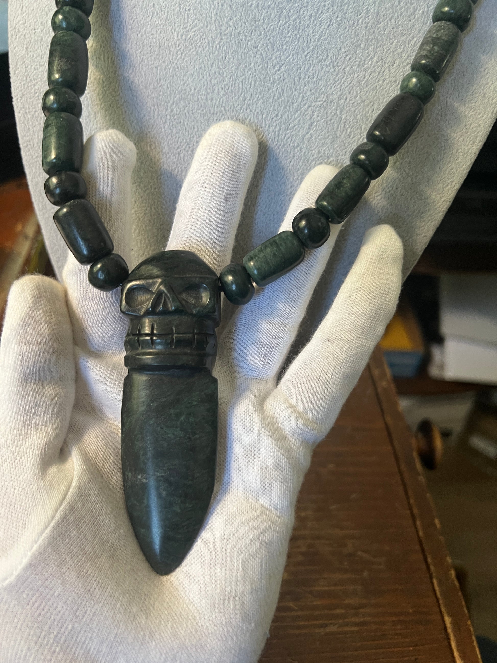 Mictlantecuitli Jade Necklace from Mexica Indigenous Indians, Mexico, Mexican, Aztec, Azteca, Skull, Dagger, Sacrifice, Altar, rare (#18)