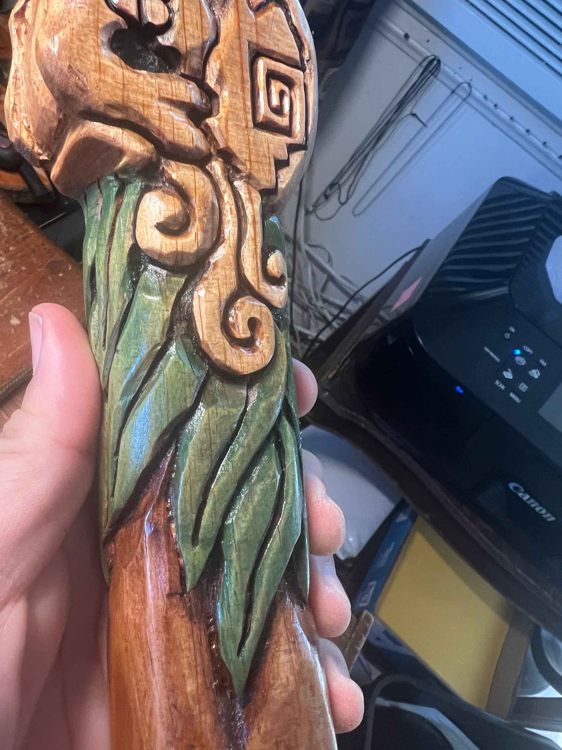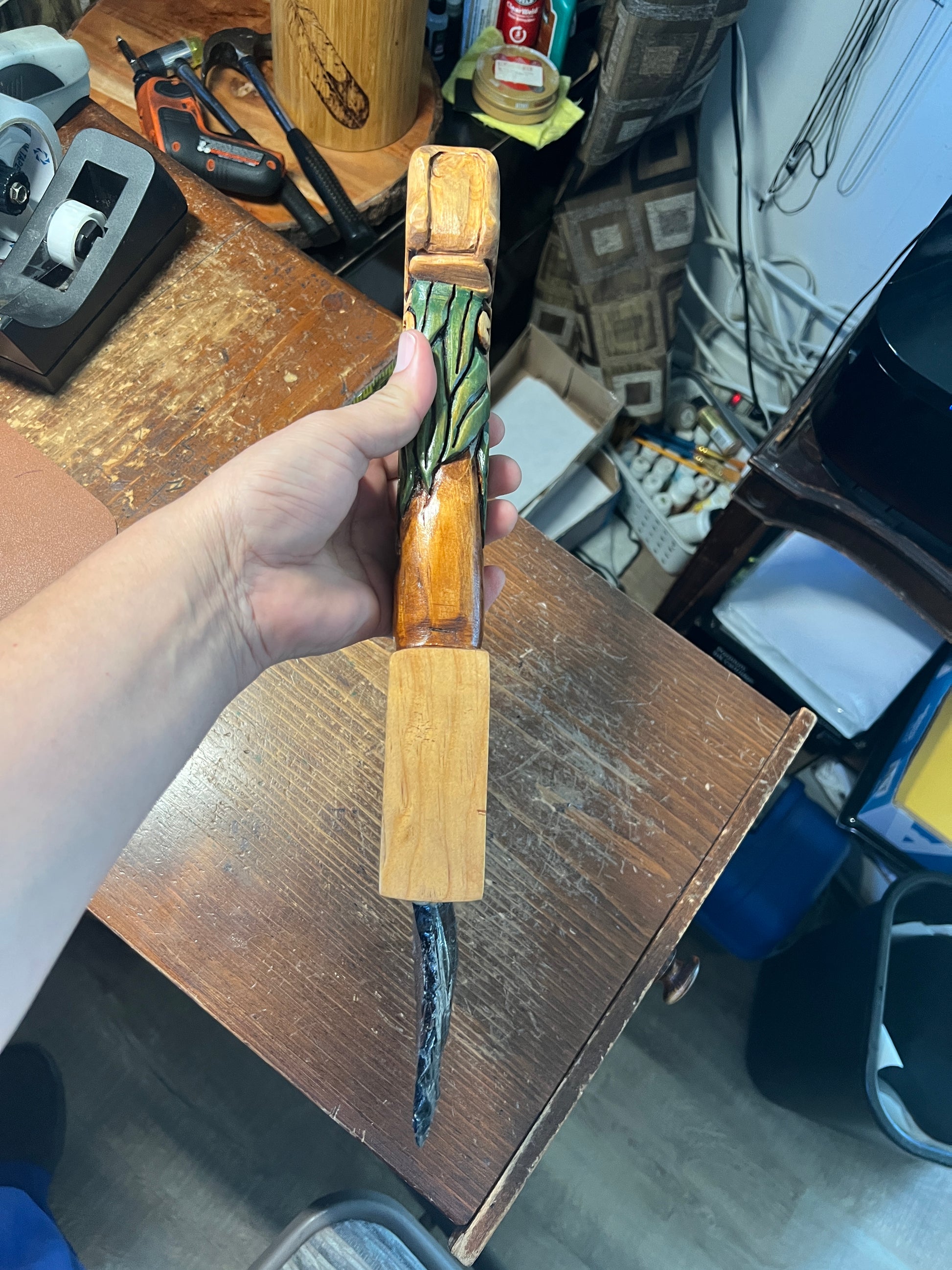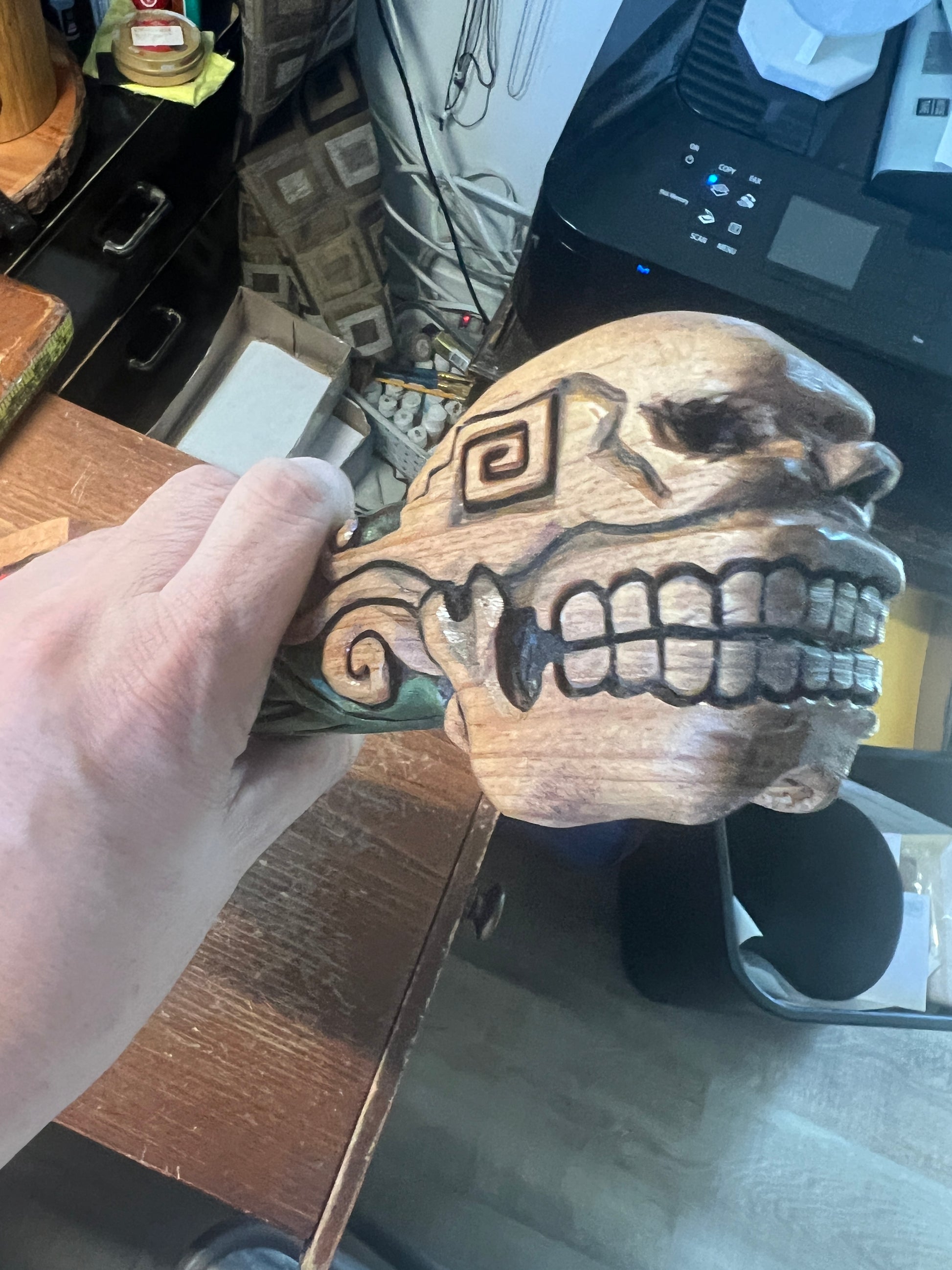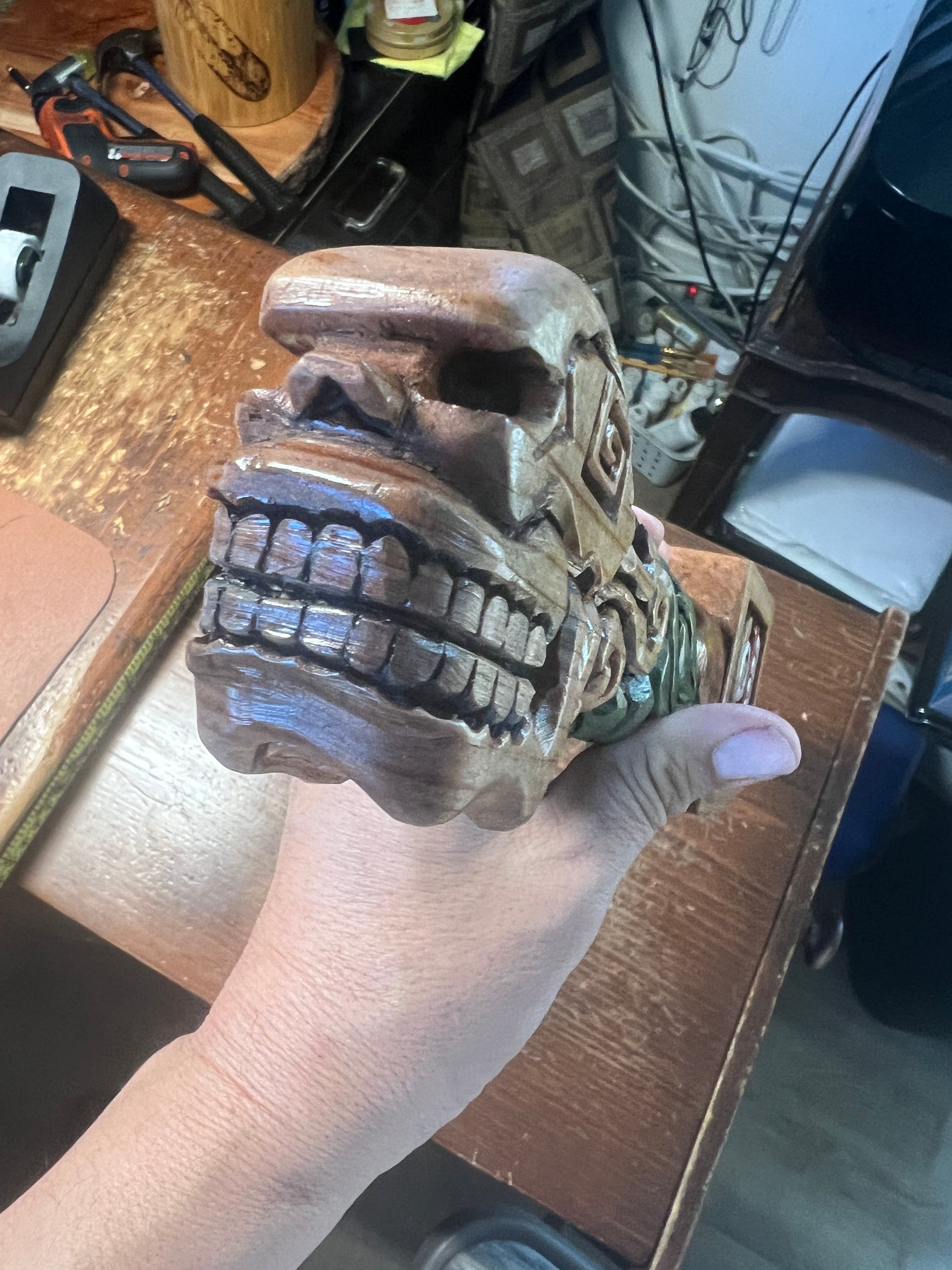 Mictlantecuitli Tlaloc Wood Obsidian Sacrificial Dagger, Aztec Dagger, Skull Daga, 17" Long, Deep Carved Wood
