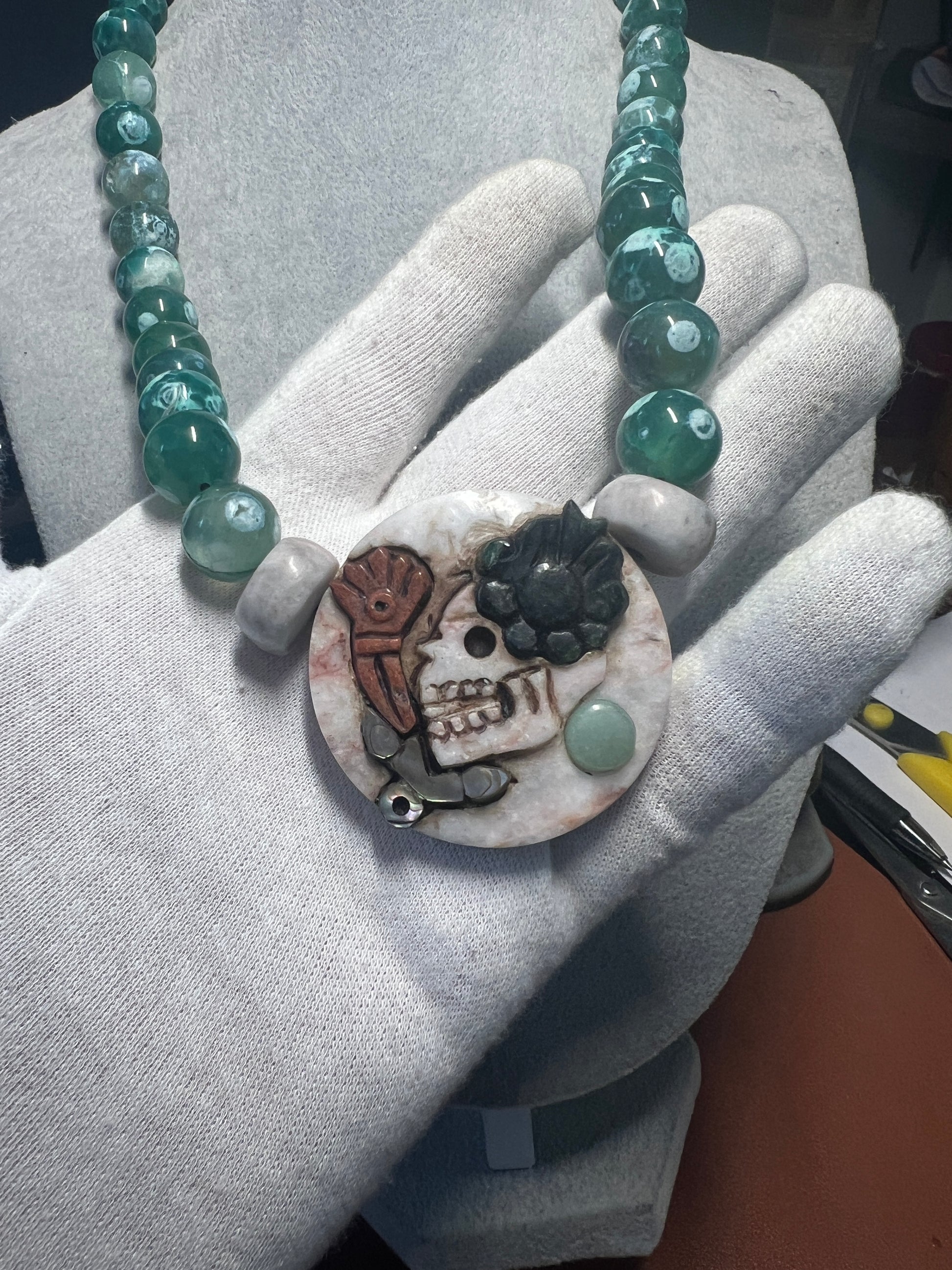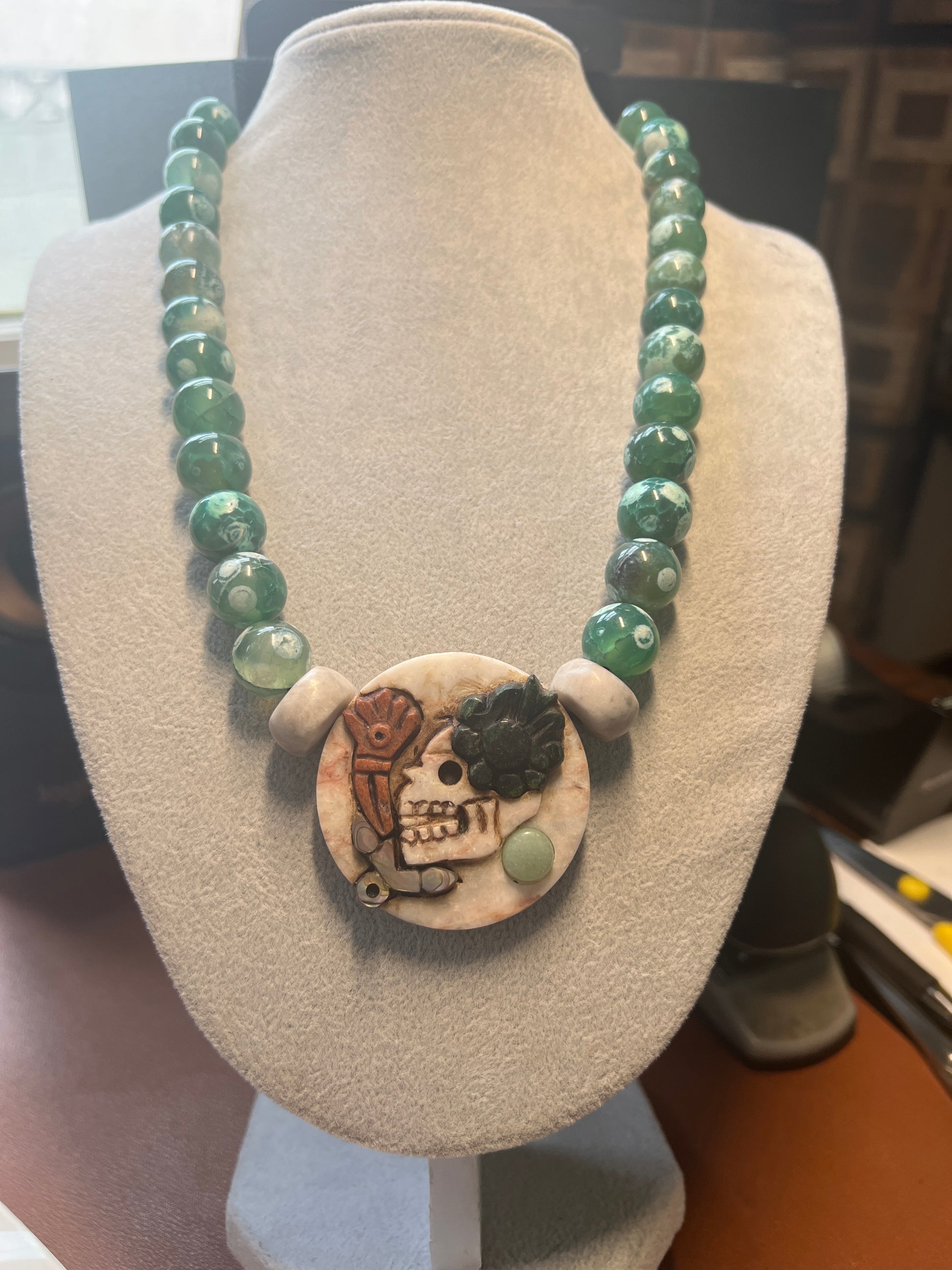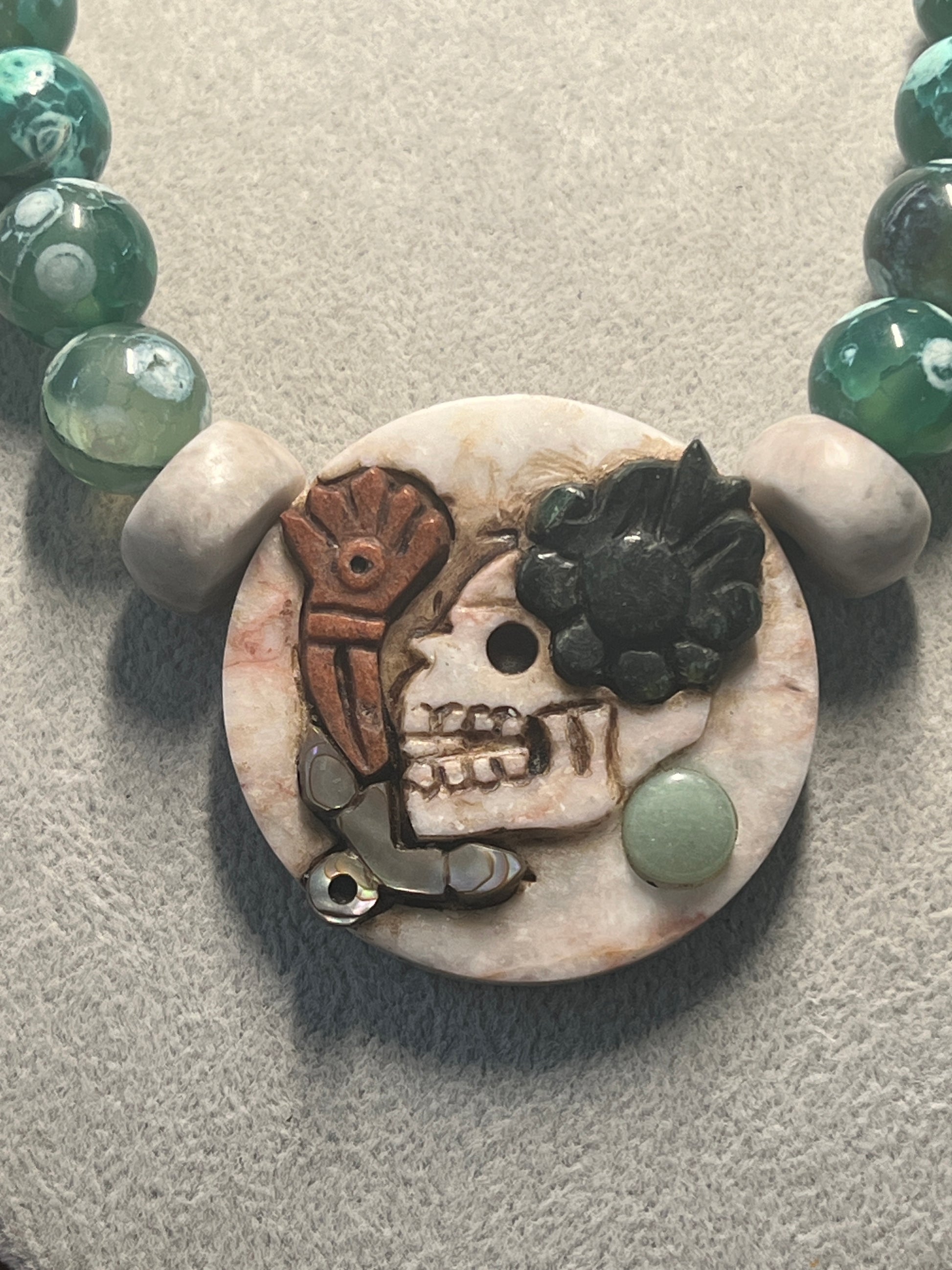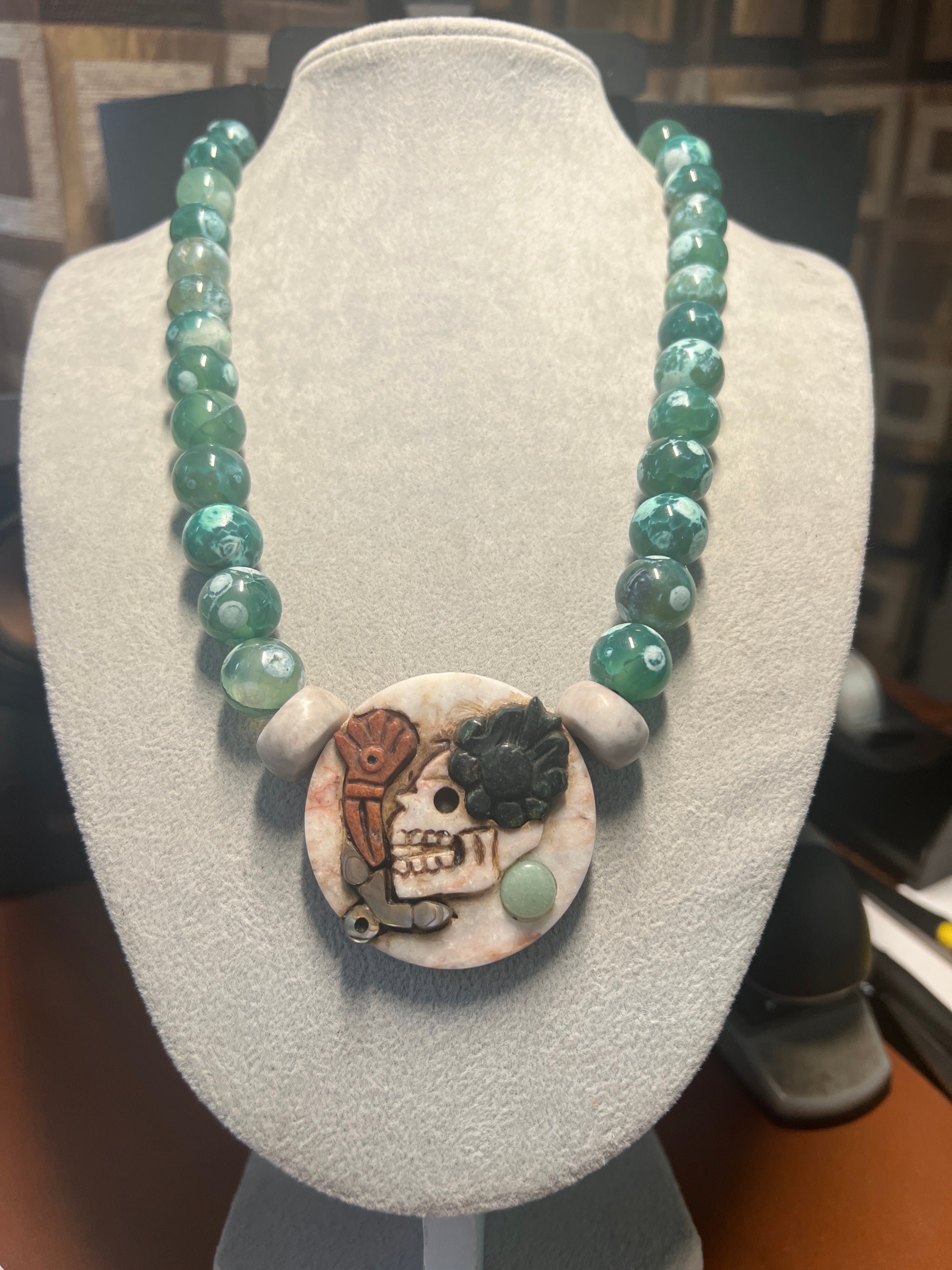 Aztec Miquiztli Pendant Necklace from Mexico all Natural Stones Handmade #38