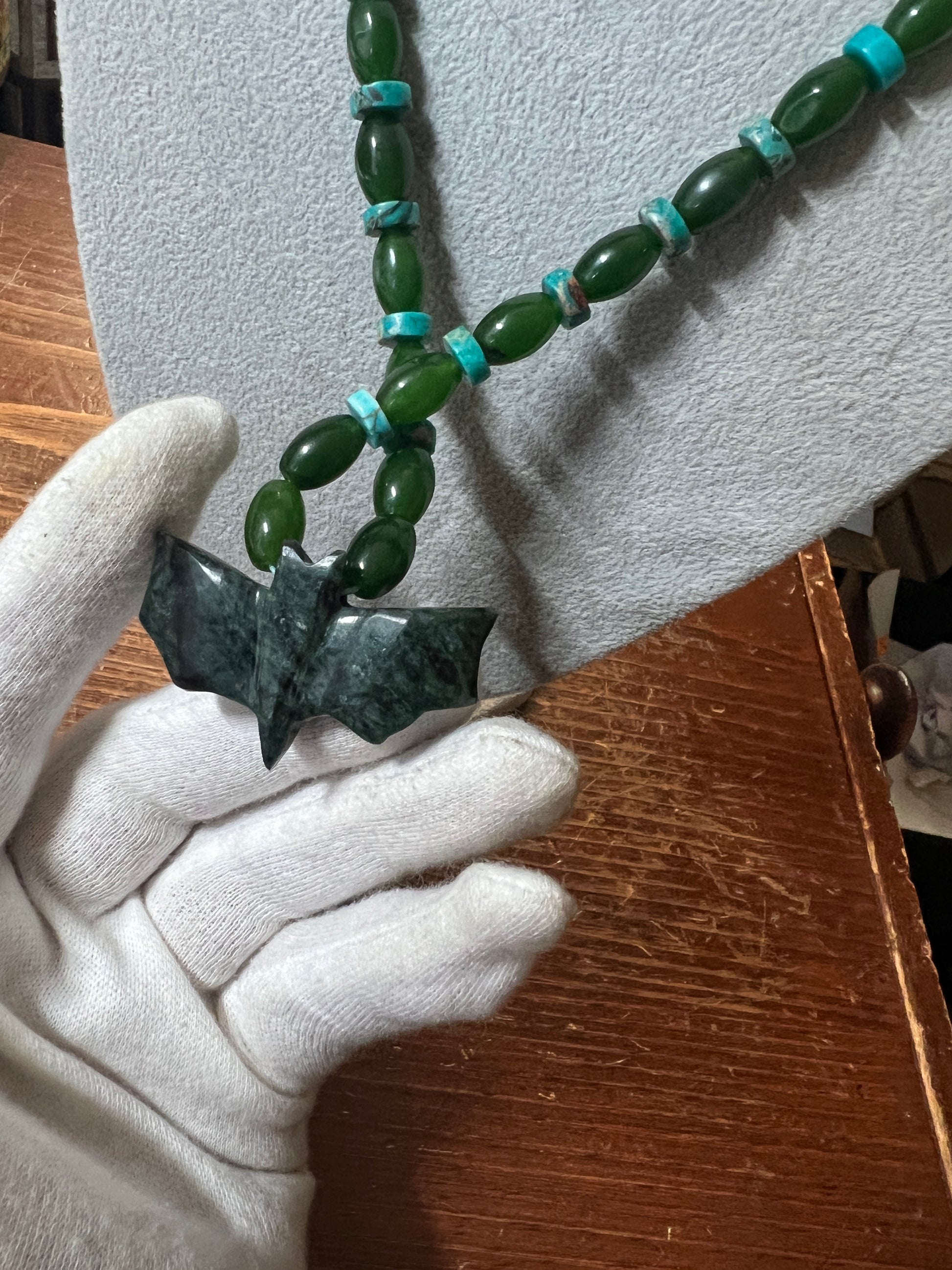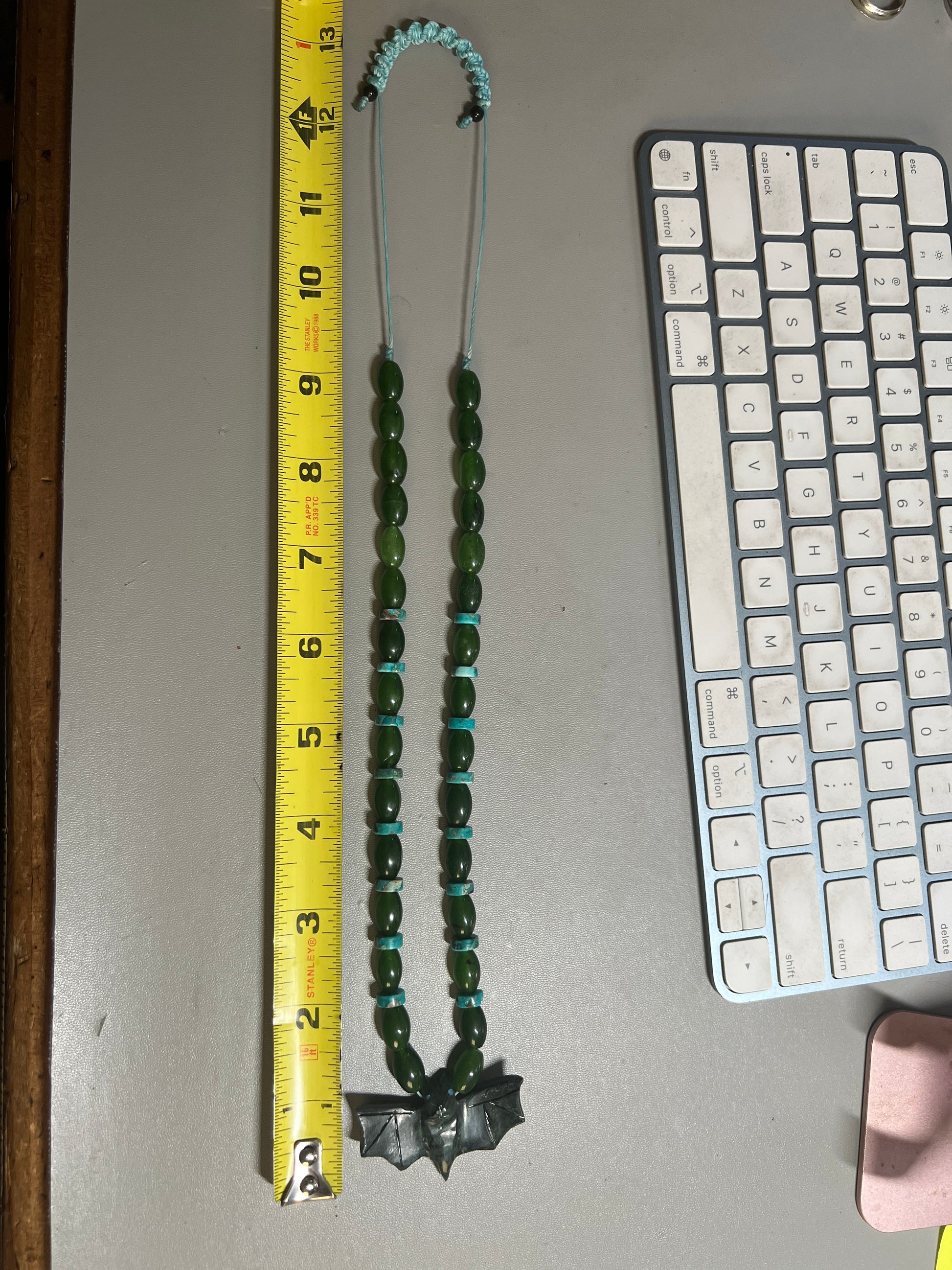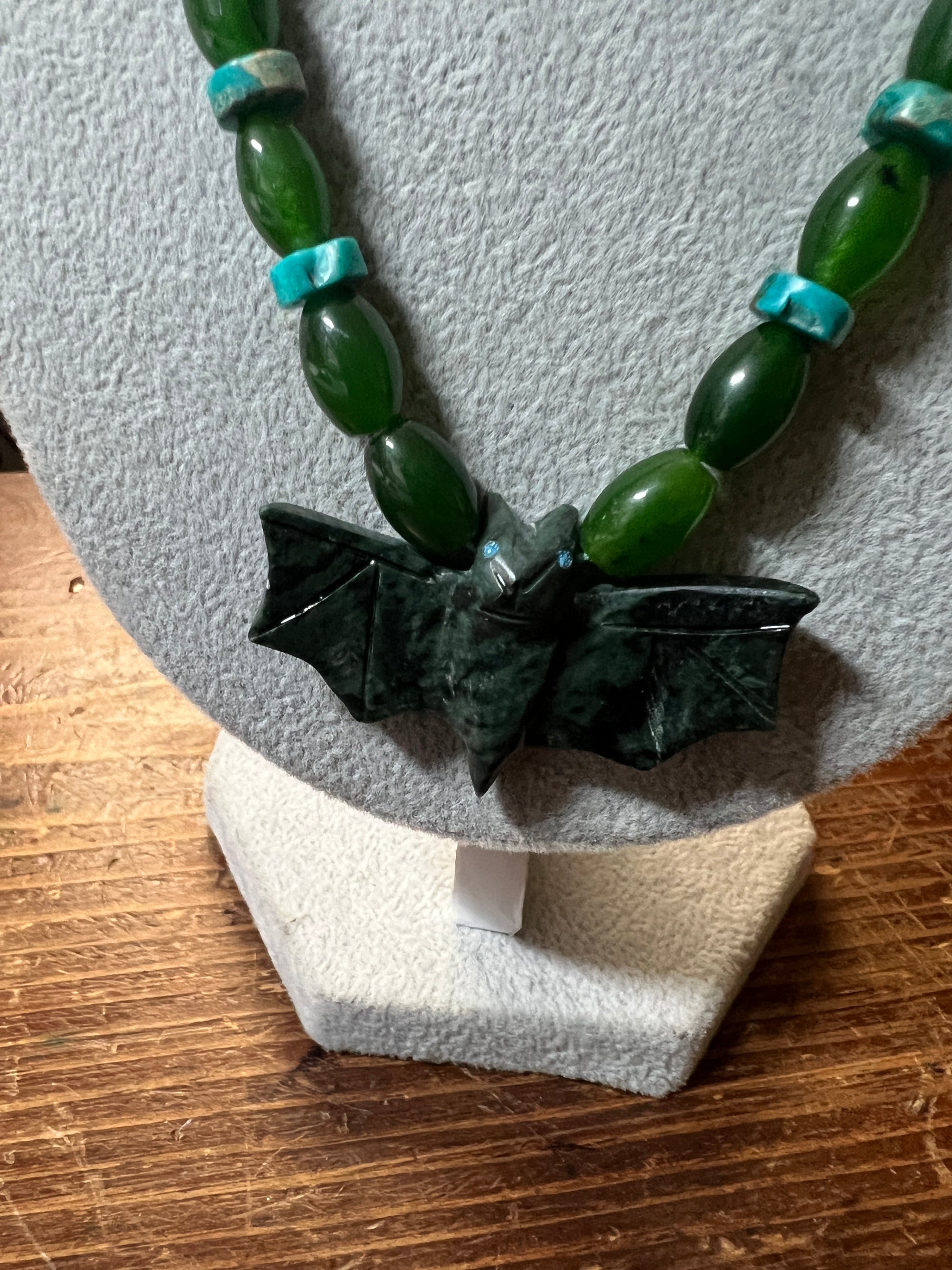 Murcielago Bat Jade Pendant Nefrite Beaded Necklace, gothic, bats, Native American (#13)