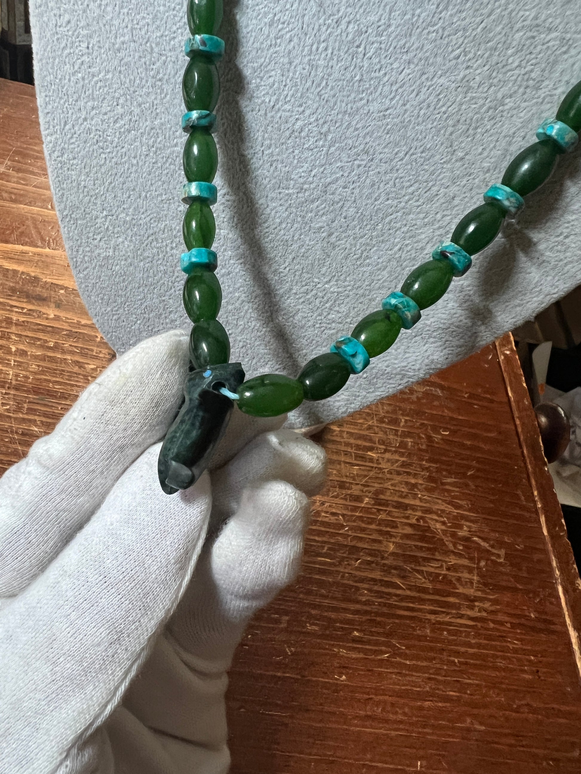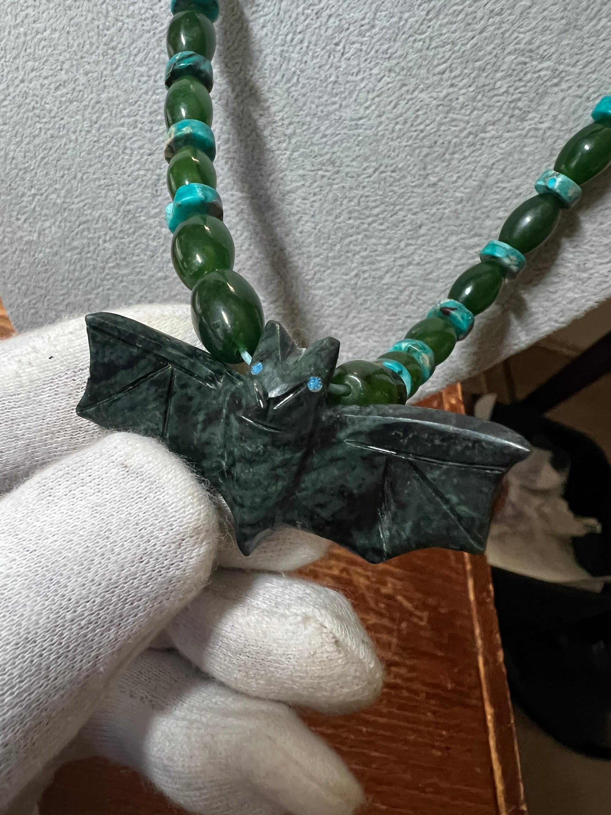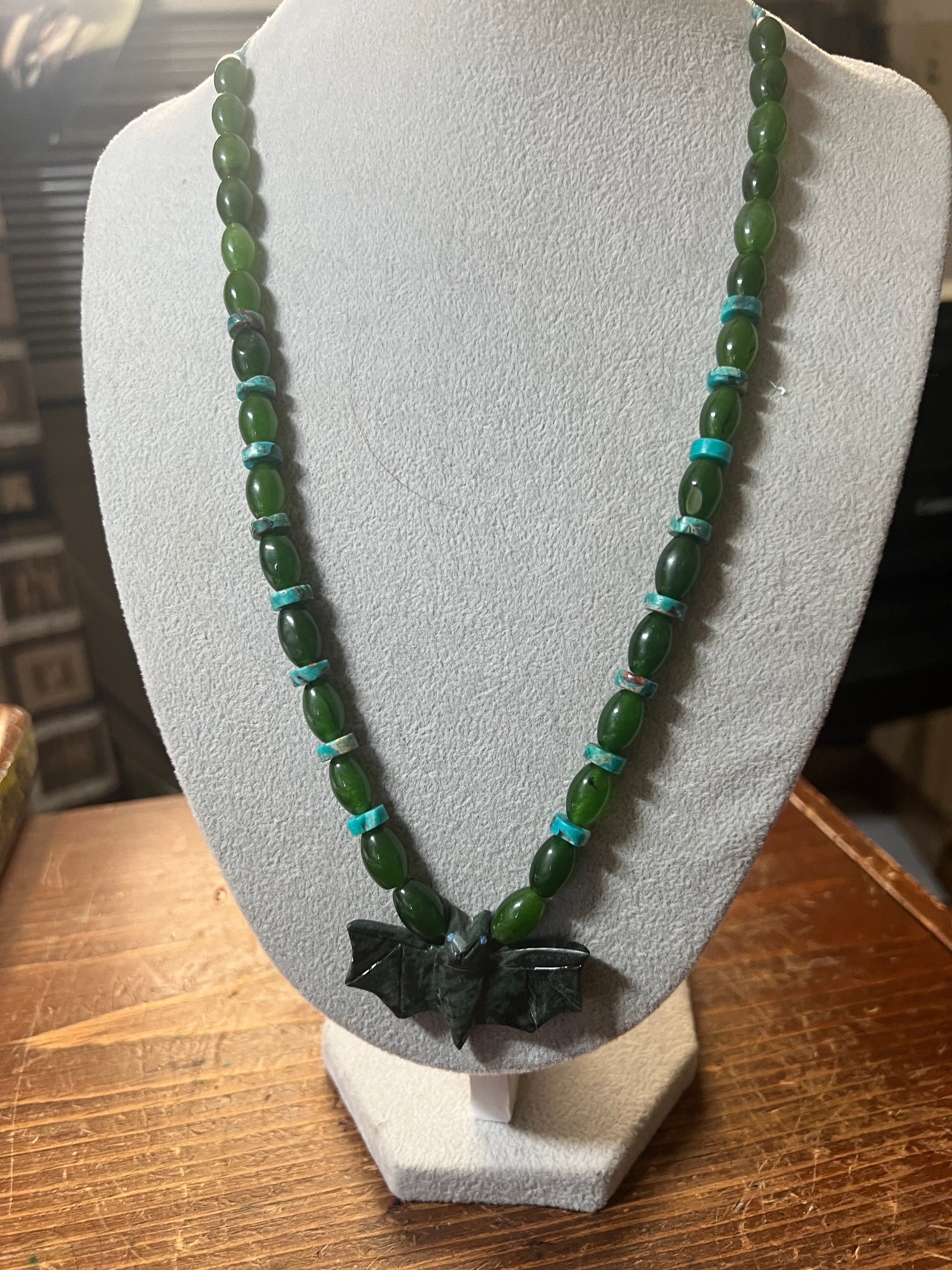 Murcielago Bat Jade Pendant Nefrite Beaded Necklace, gothic, bats, Native American (#13)
