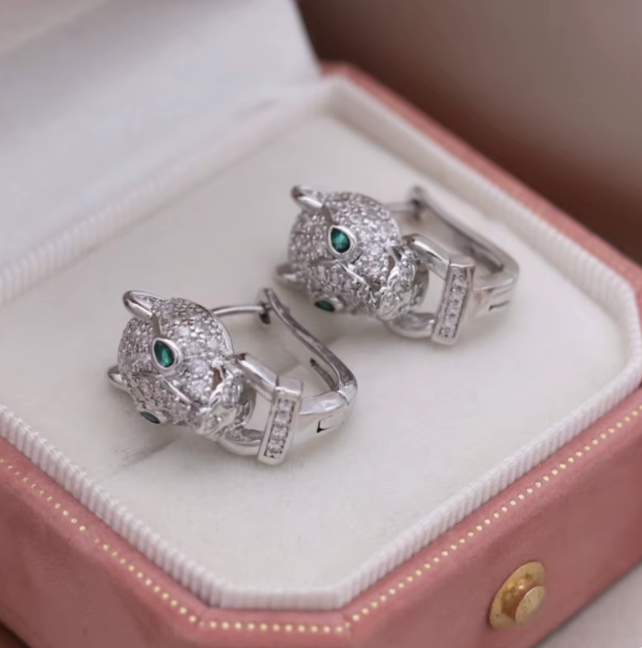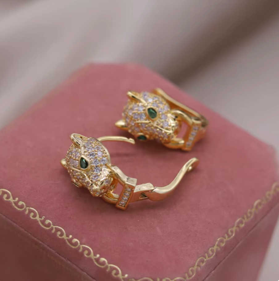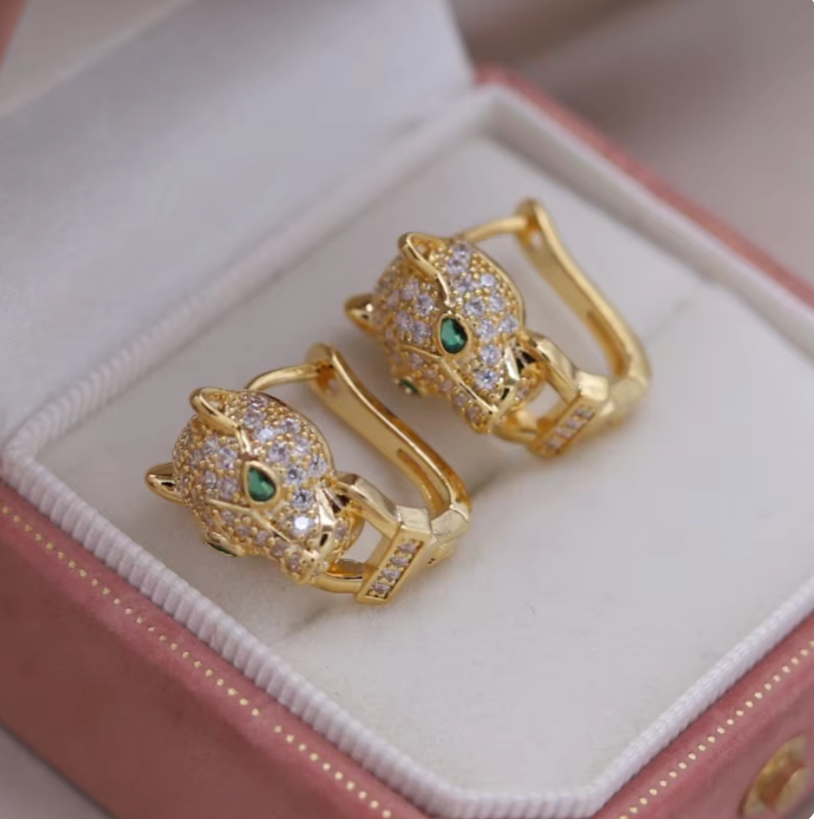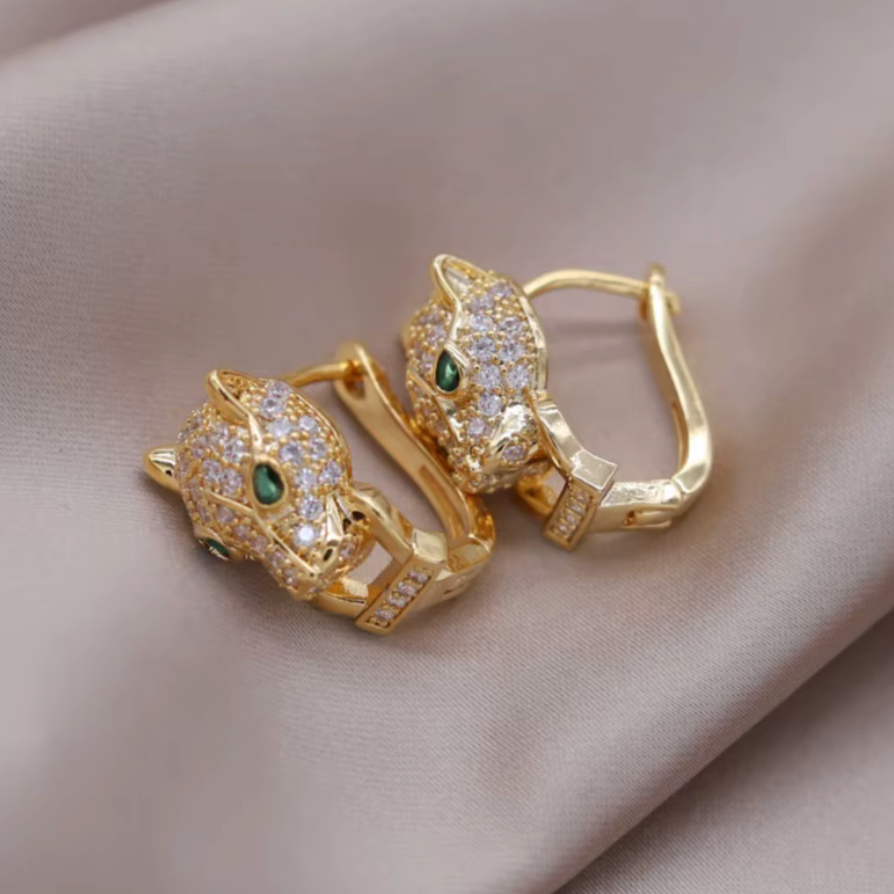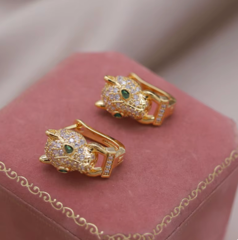 Aztec Jaguar Gold Plated Silver Plated Zircon Rhinestone Fashion Luxury Earrings (#7)