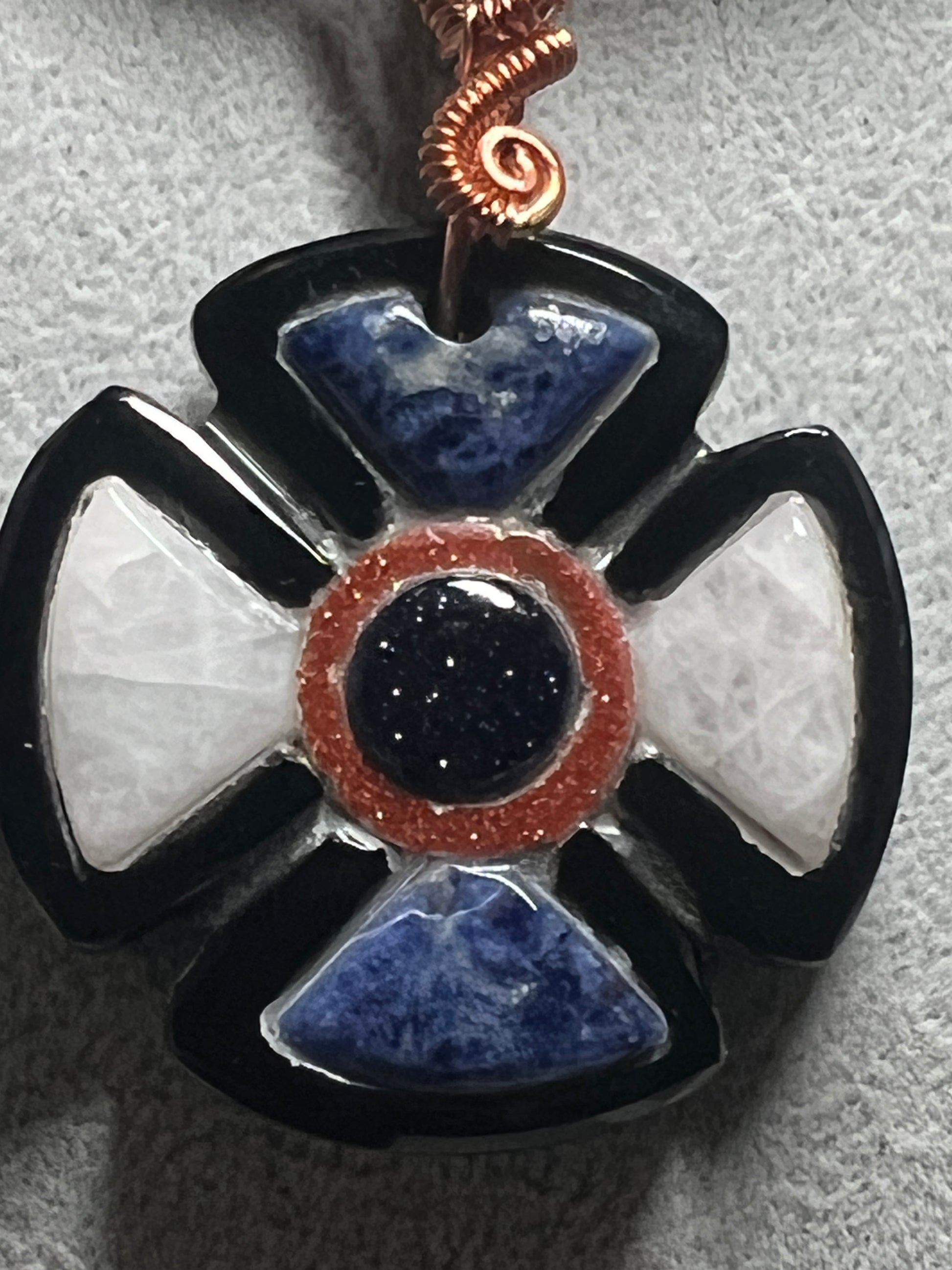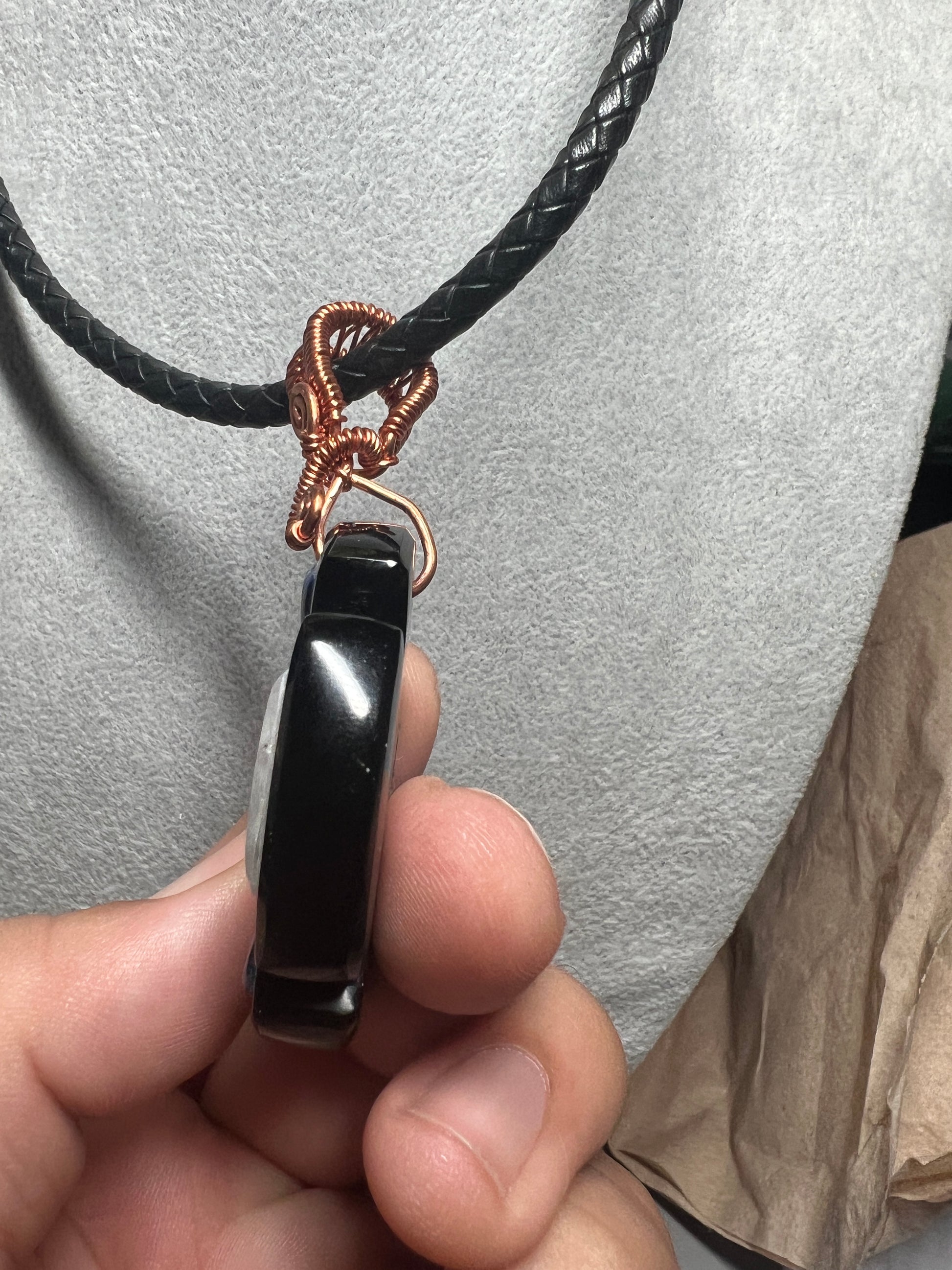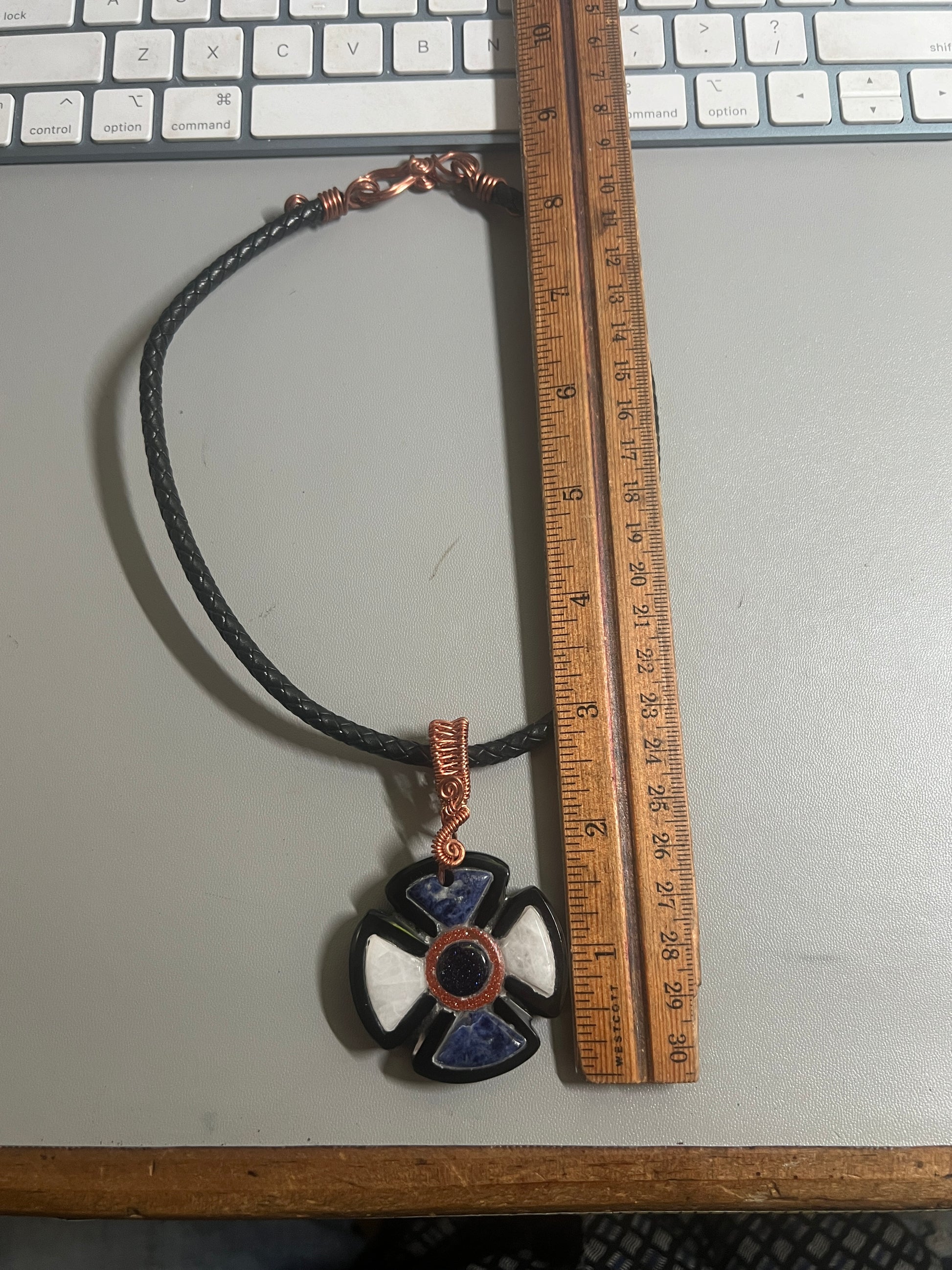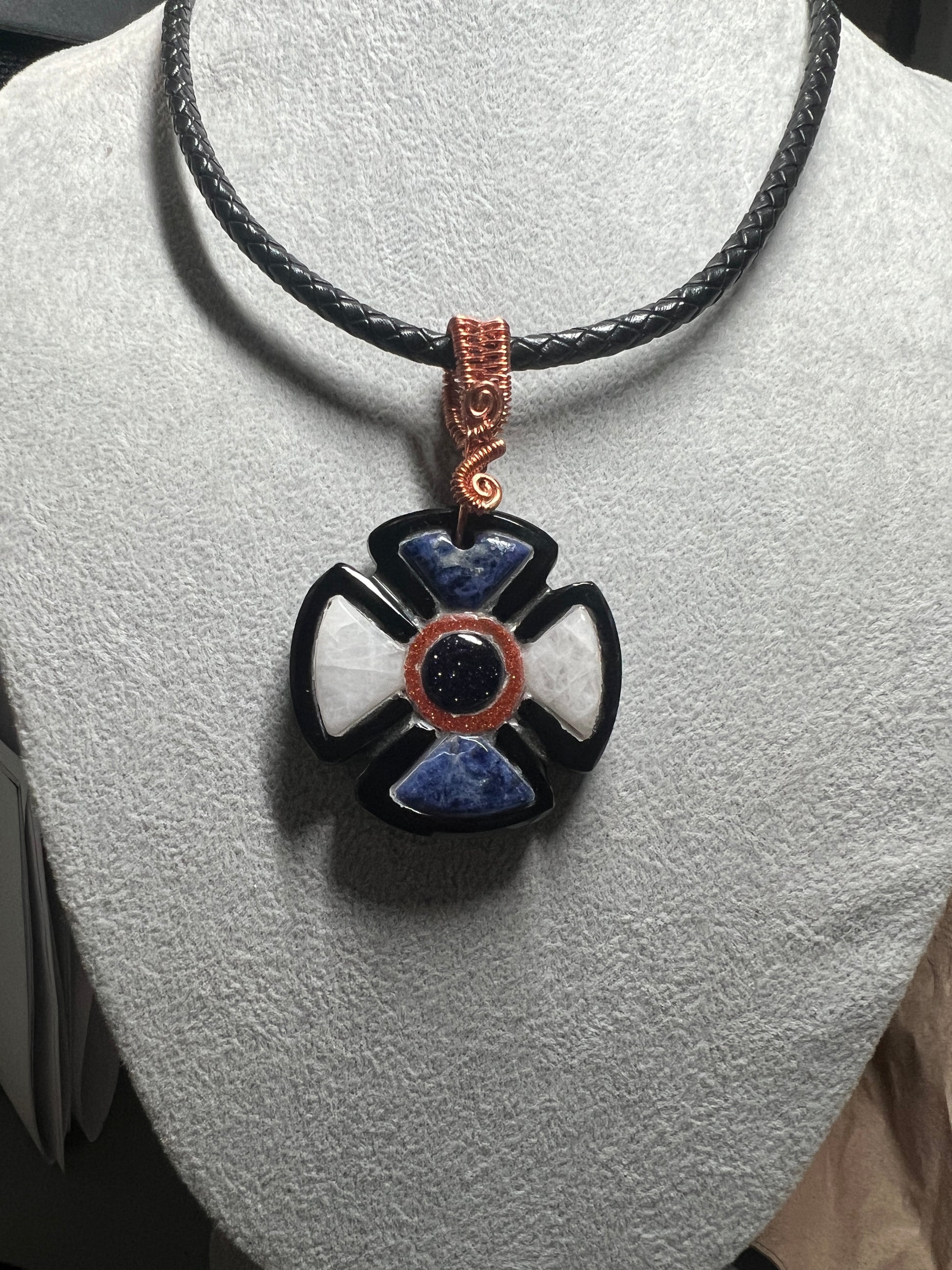 Obsidian Flower Stone Pendant, Choker, Aztec Mexica Maya, 1.75", leather rope necklace, 17" Mexico