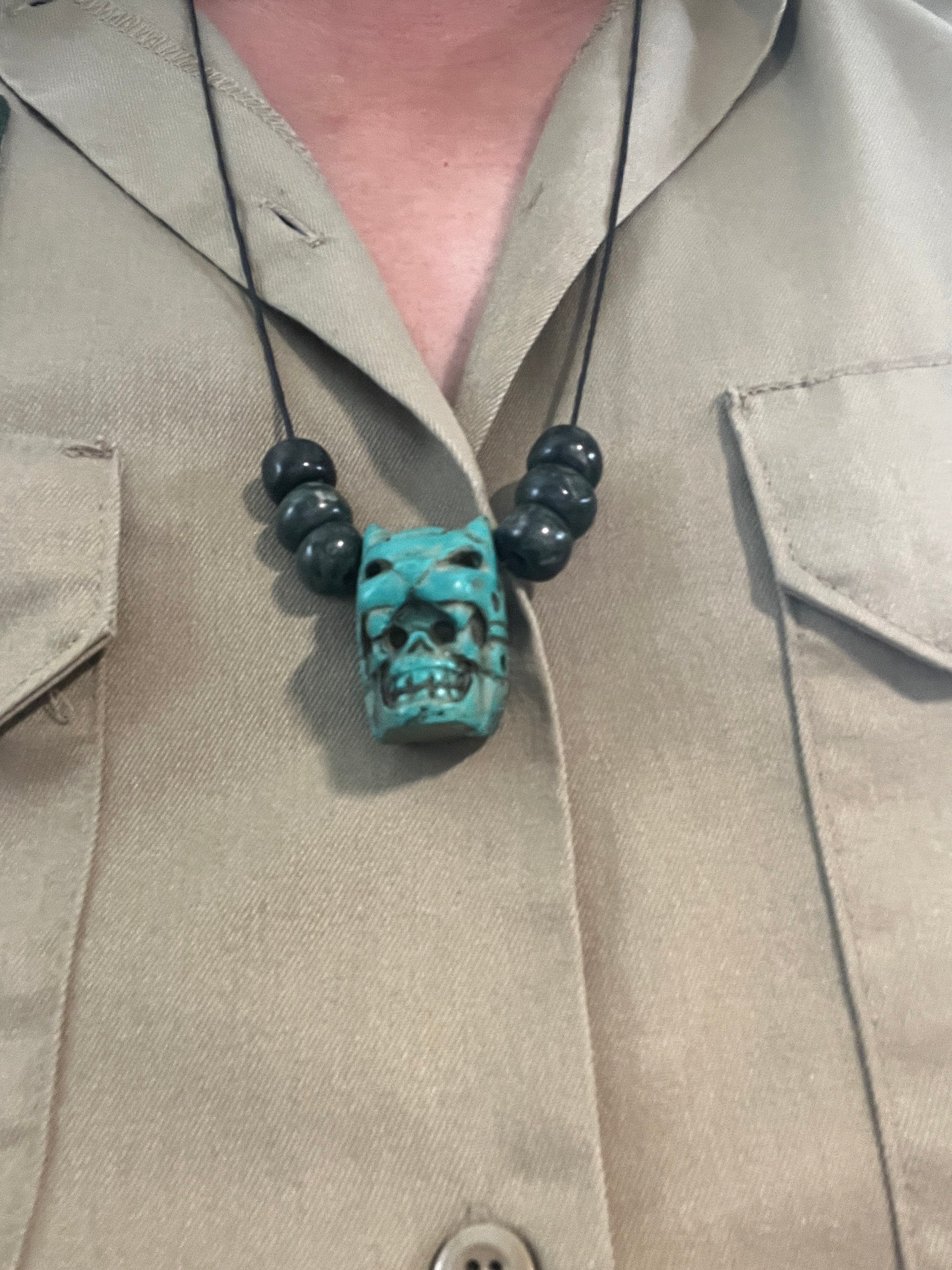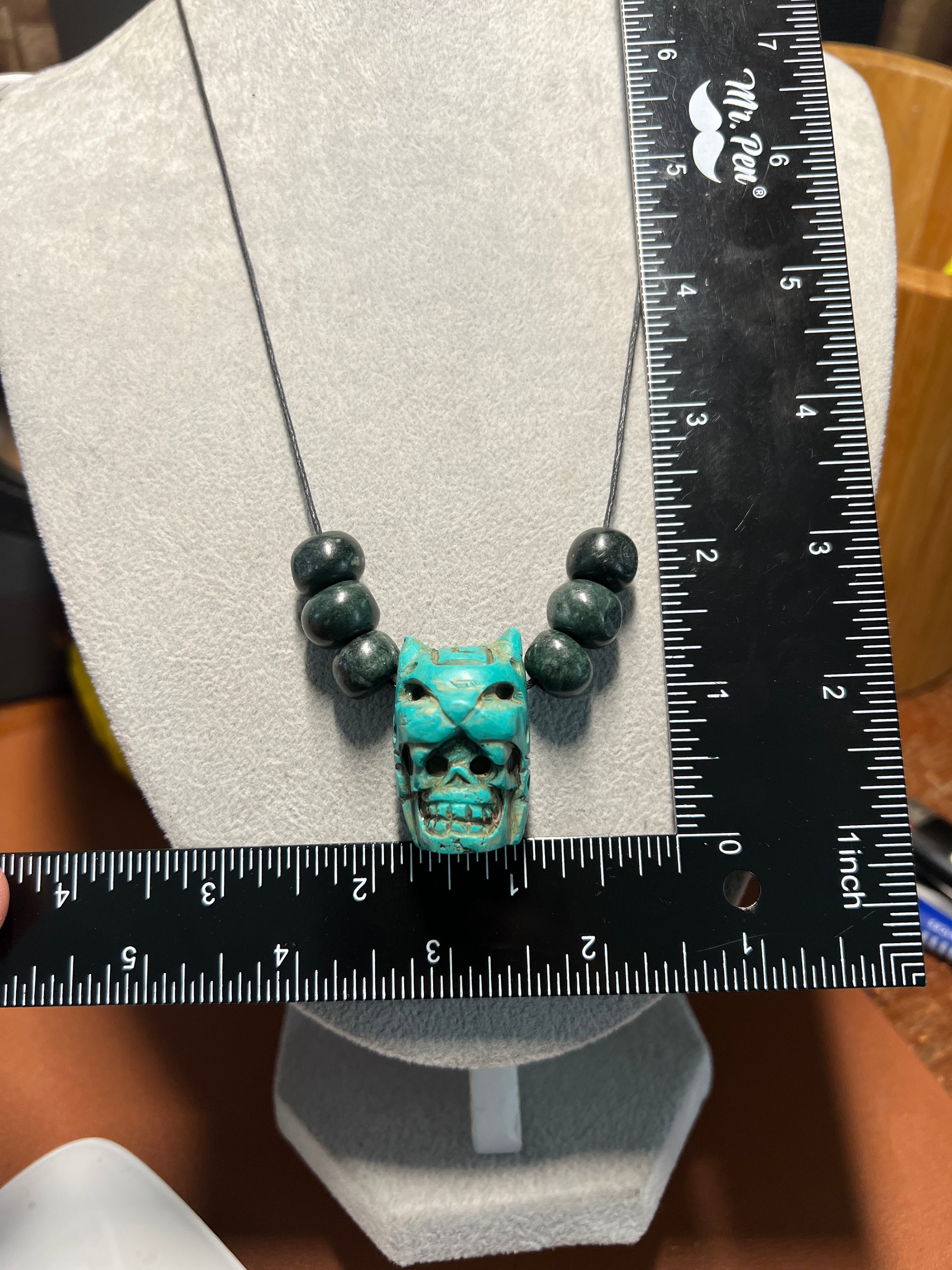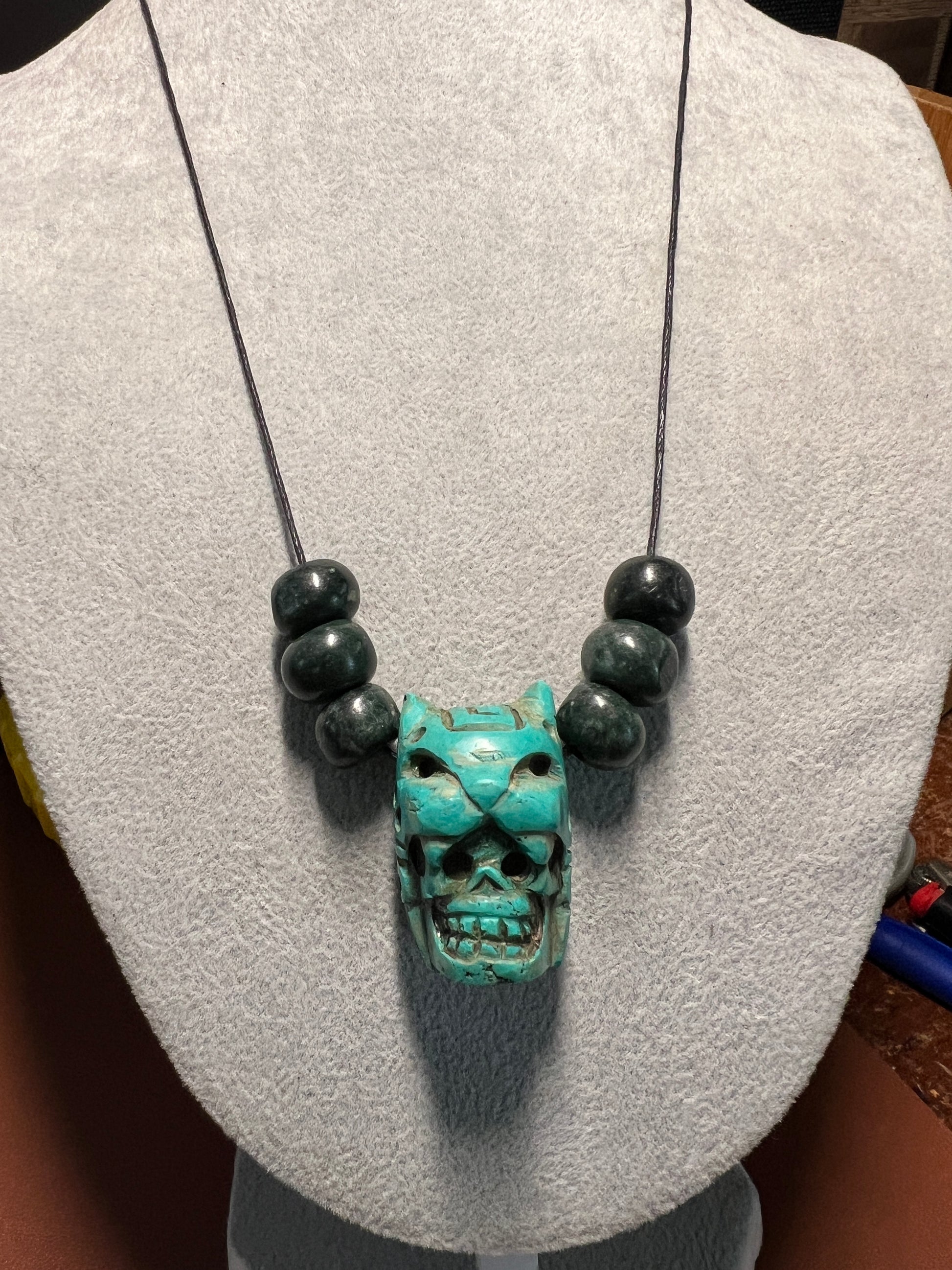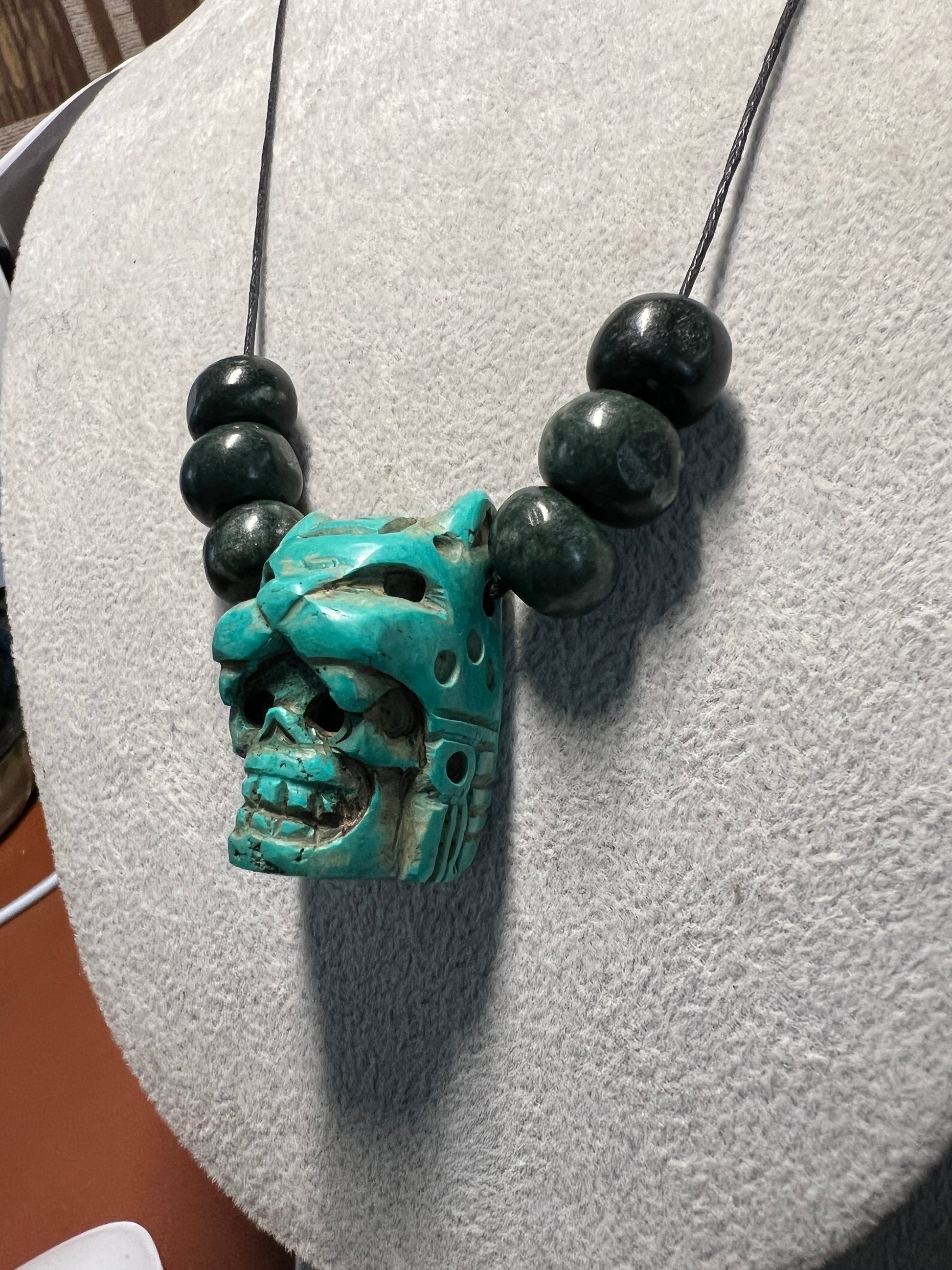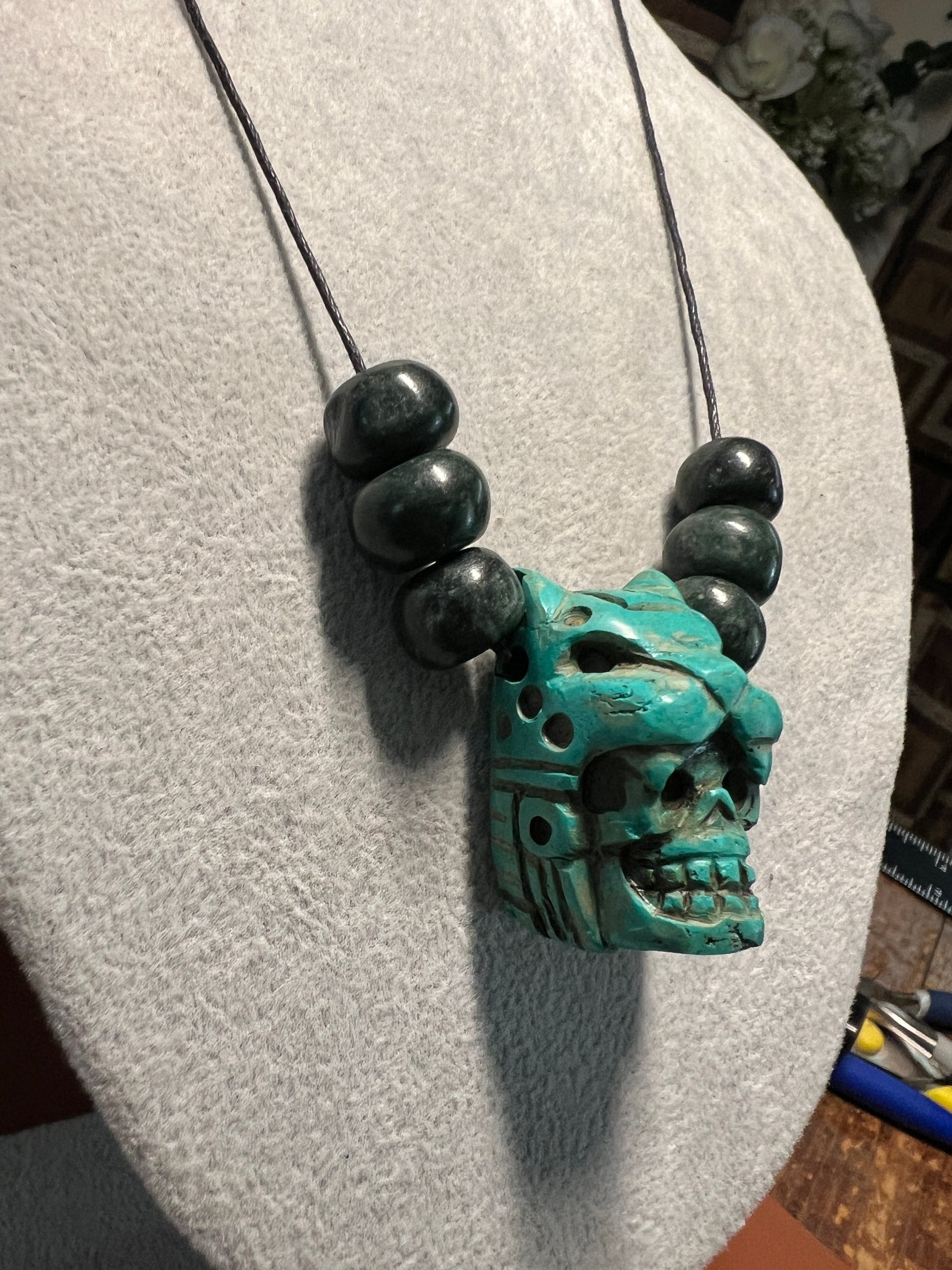 Jaguar Dead Warrior Pendant Necklace Clay Marble, Aztec, Mayan, Mexican (#2)
