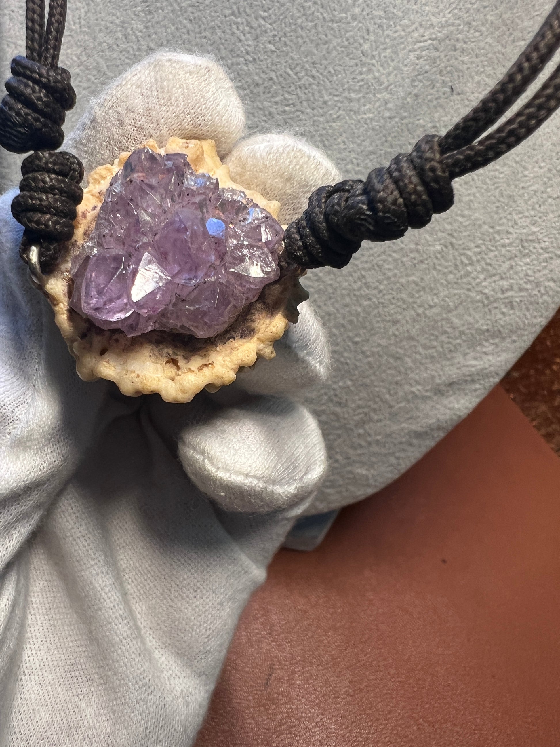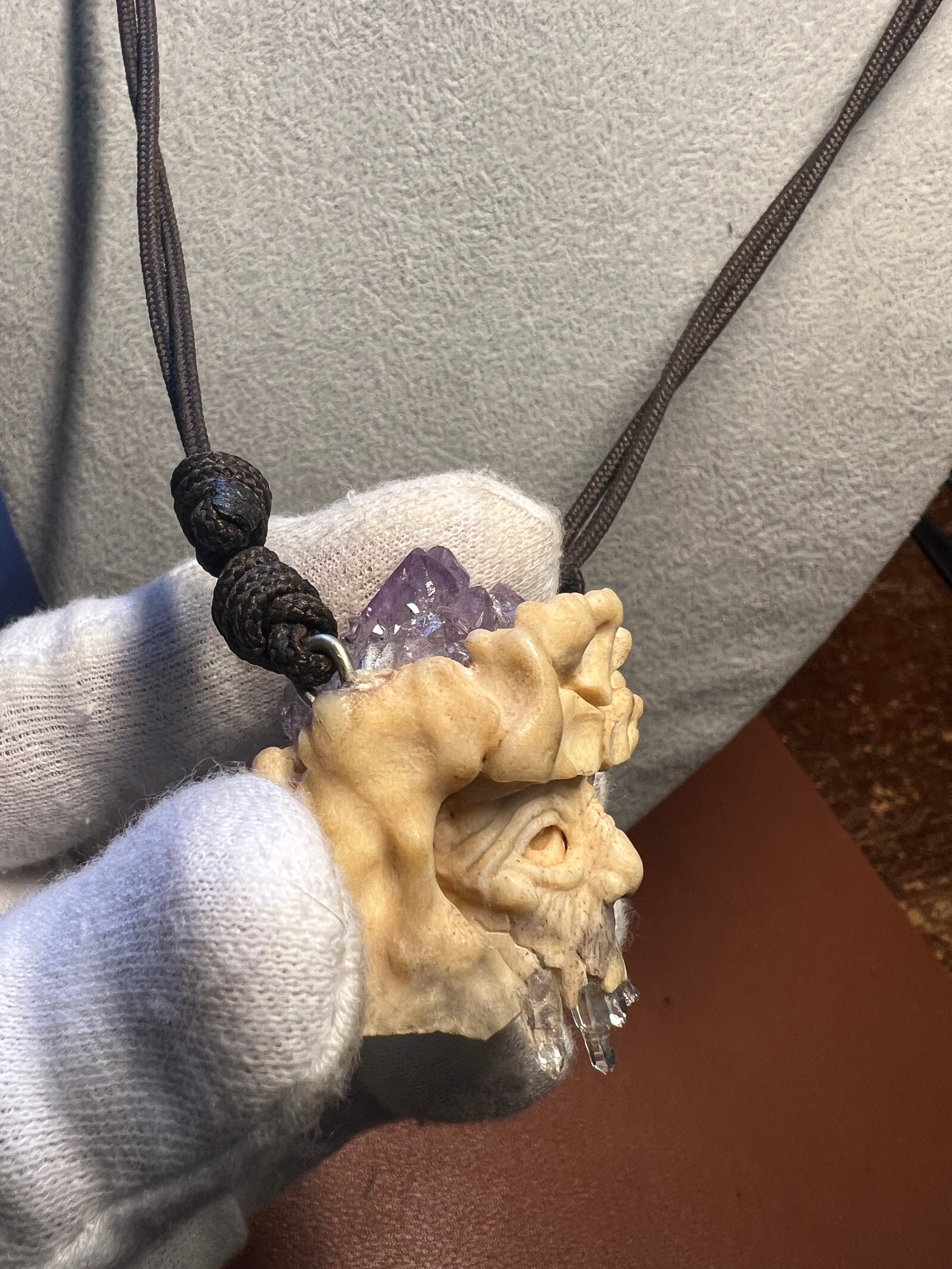 Materials: deer antler, amethyst quartz, and crystals
