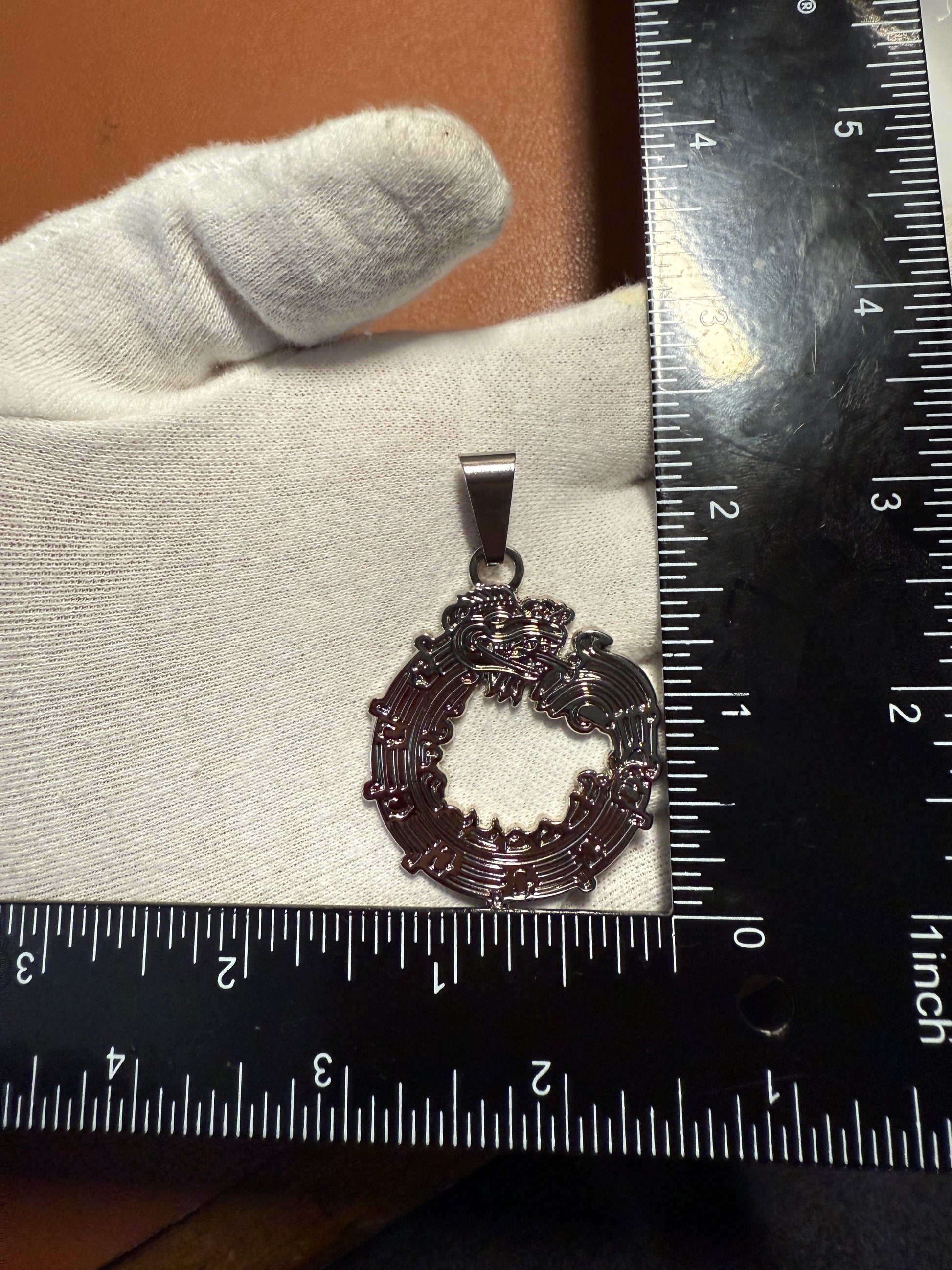 Aztec Quetzalcoatl Mayan Kukulkan Dragon Pendant, Silver Tone Metal, Mexican #39
