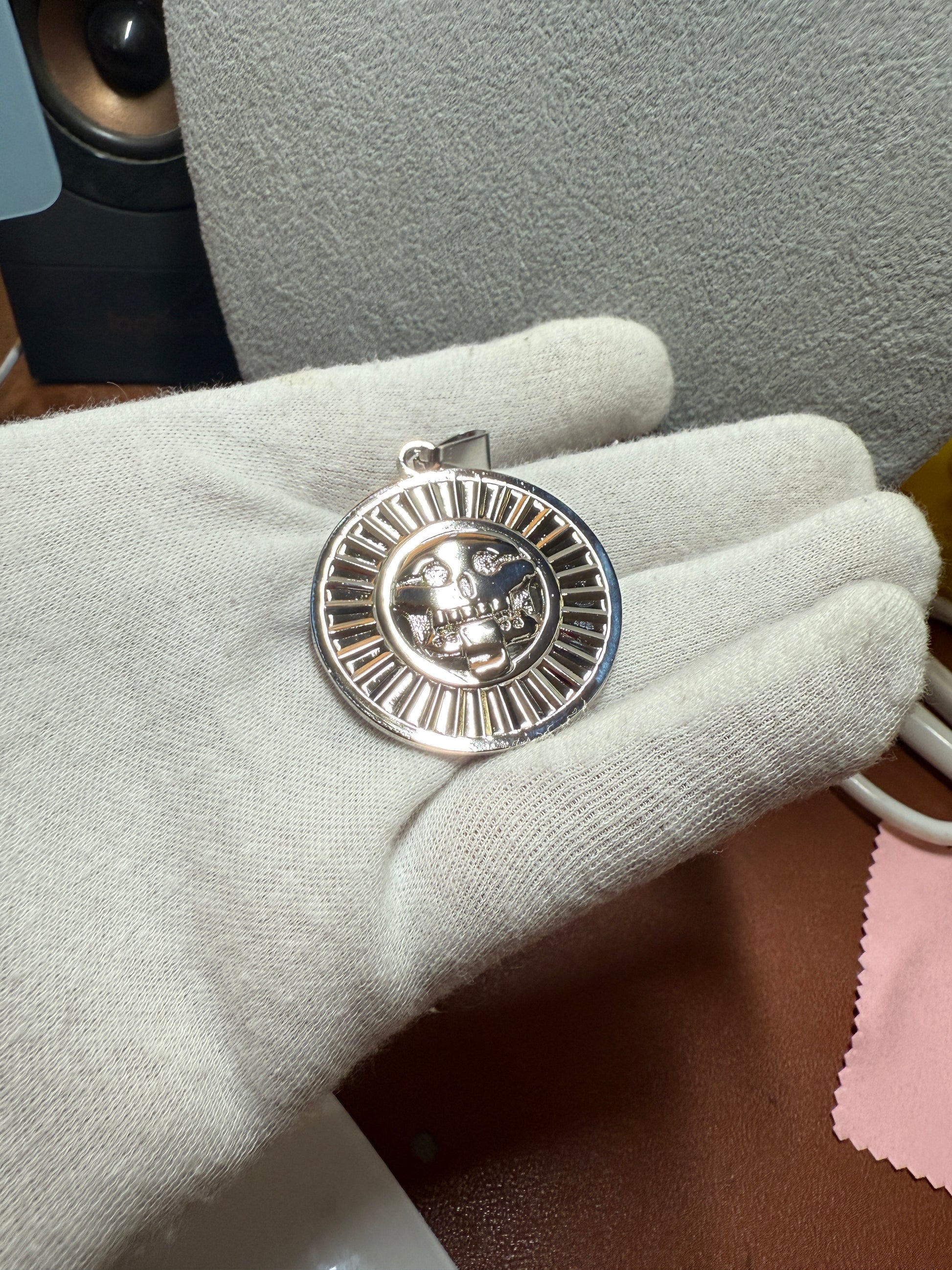 Mictlantecuhtli Pendant, Piedra Muerte Disk, Silver Tone Metal, Aztec Mexica #40