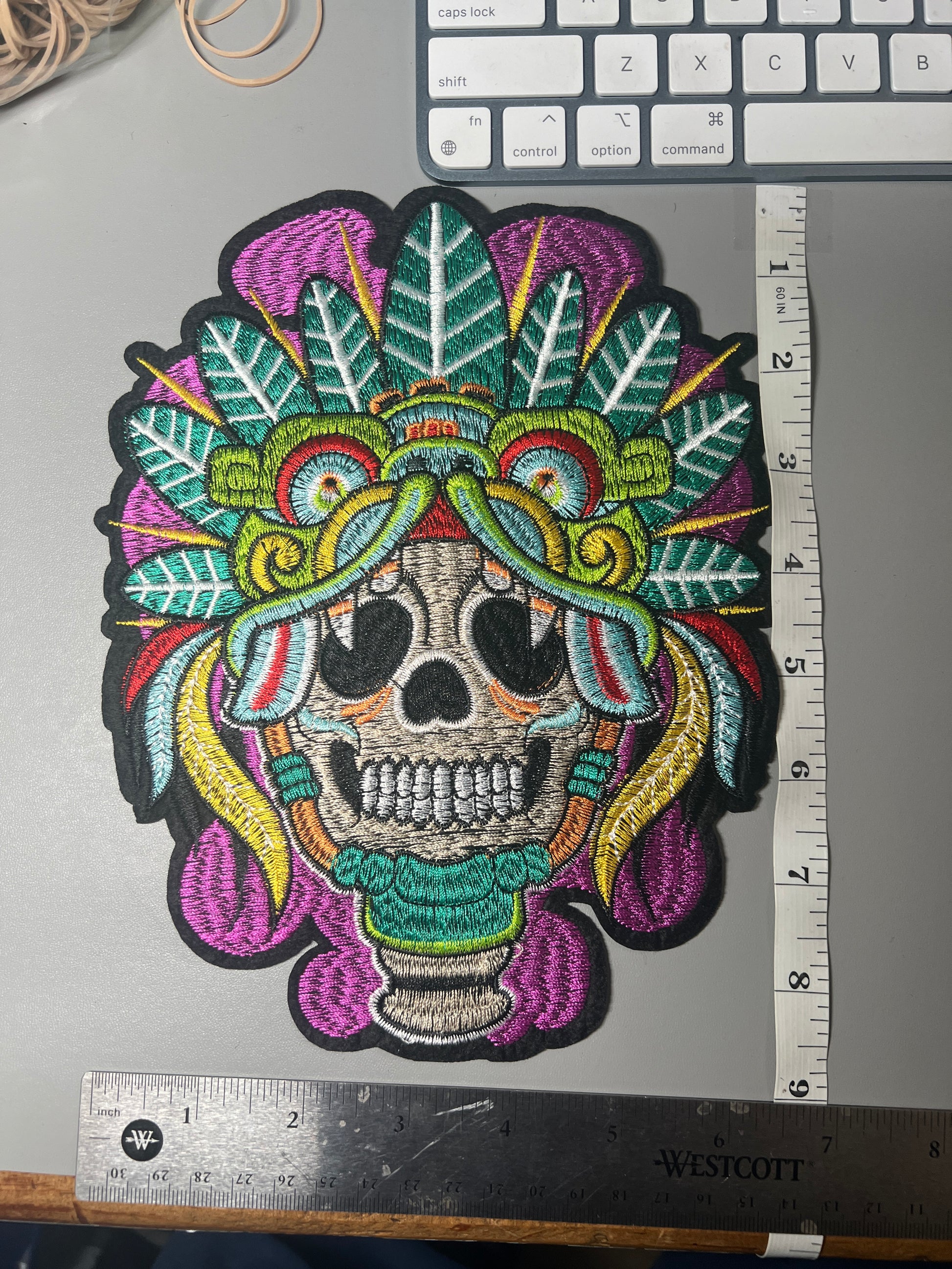 Quetzalcoatl, Kukulkan, Warrior Patch, Skull Headdress, apprx. 9in. x 7in.