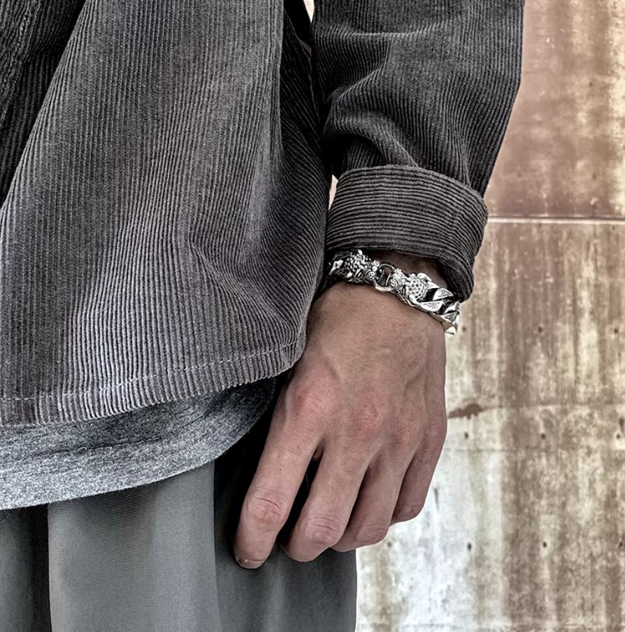 Aztec Mayan Jaguar Silver Tone Alloy braided double head bracelet Men's chain (#8)