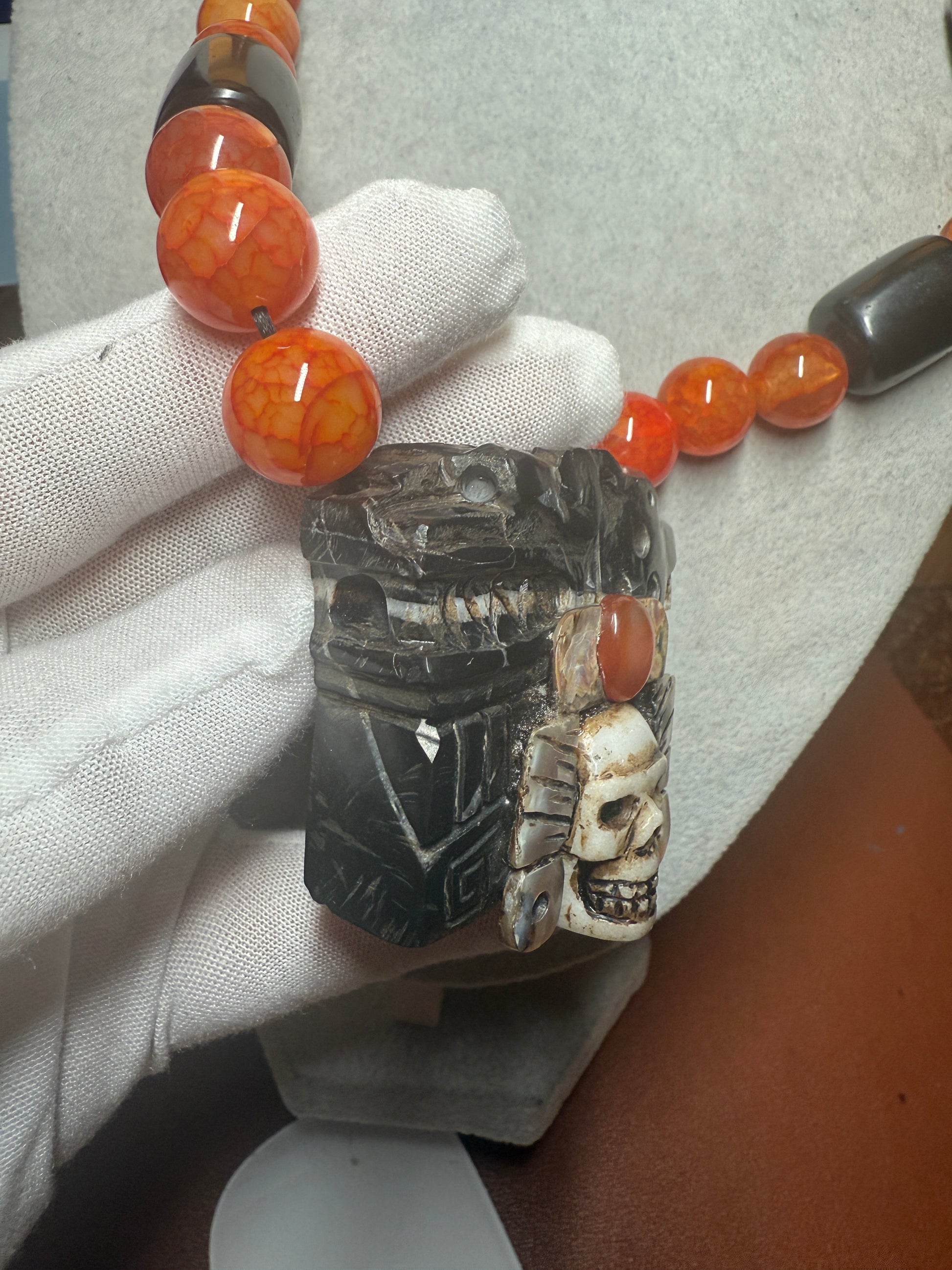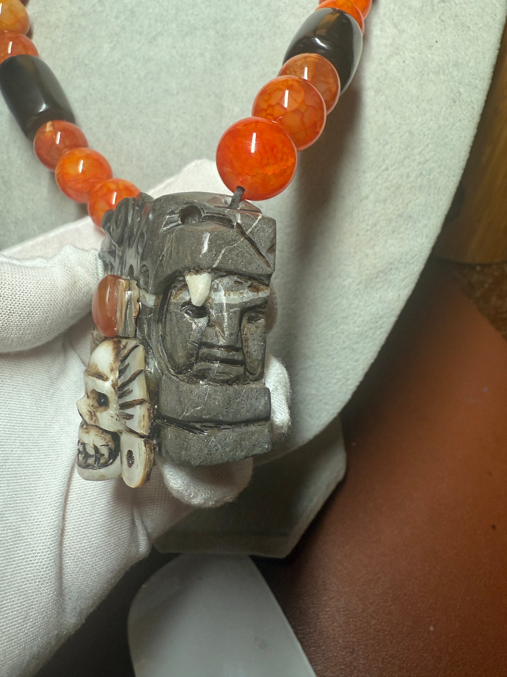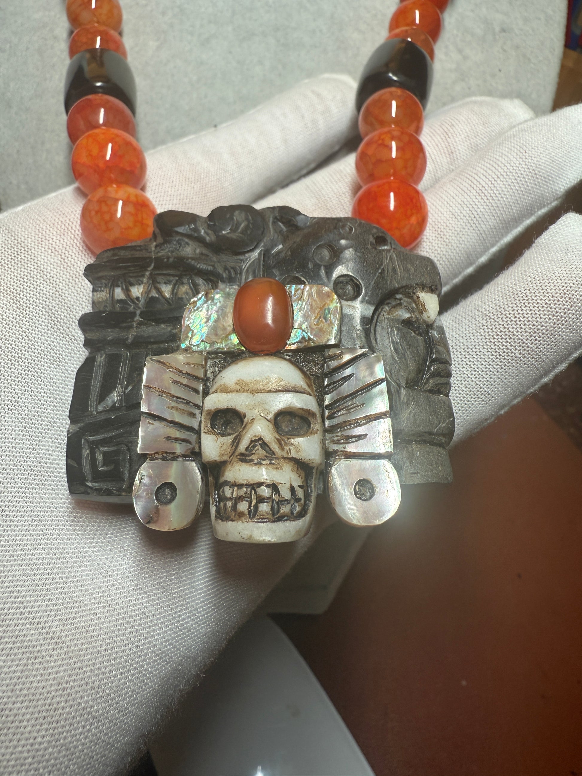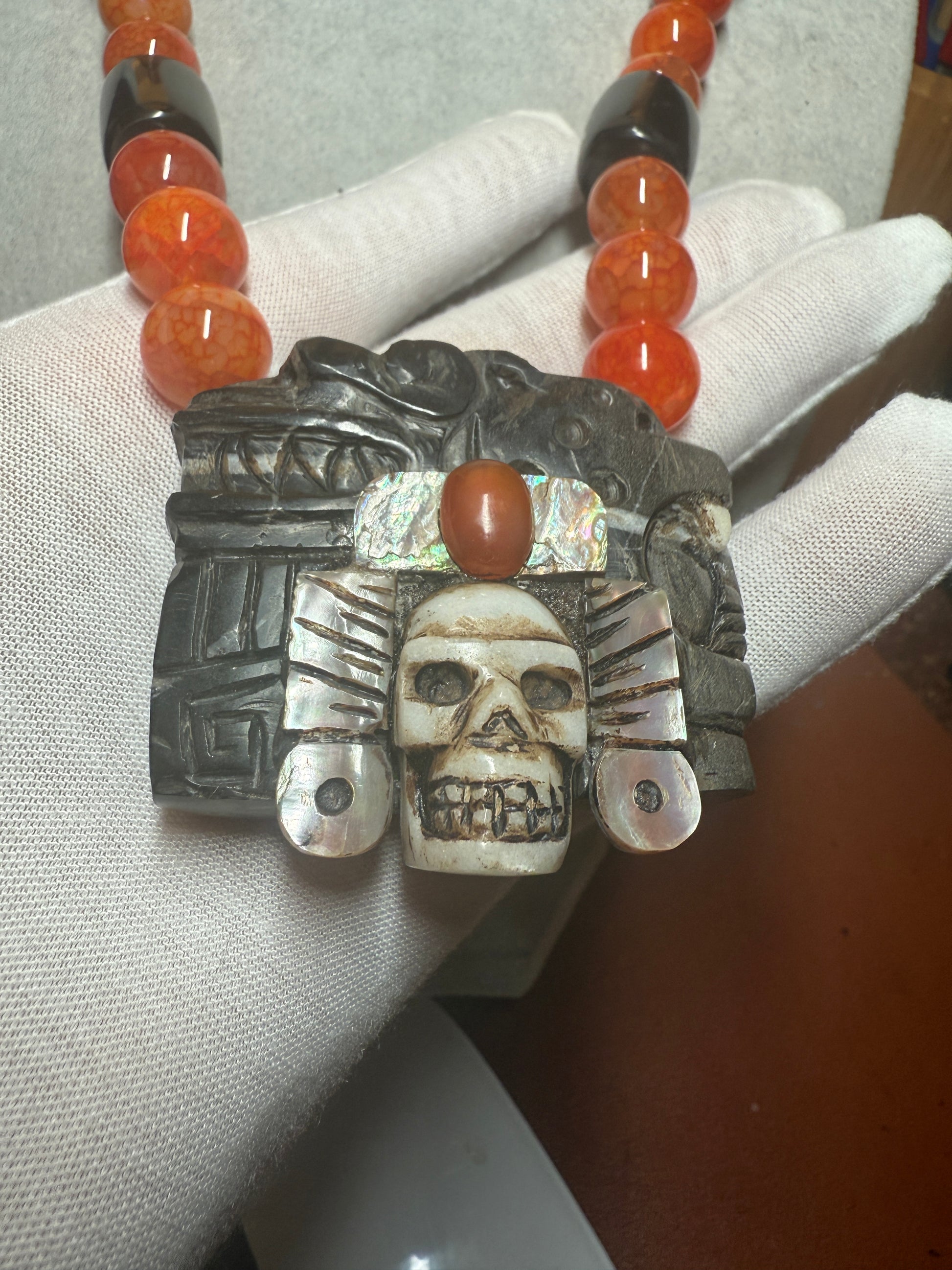 Kukulkan Quetzalcoatl Jaguar Mictlantecuhtli Warrior Pendant Necklace, all natural stones.