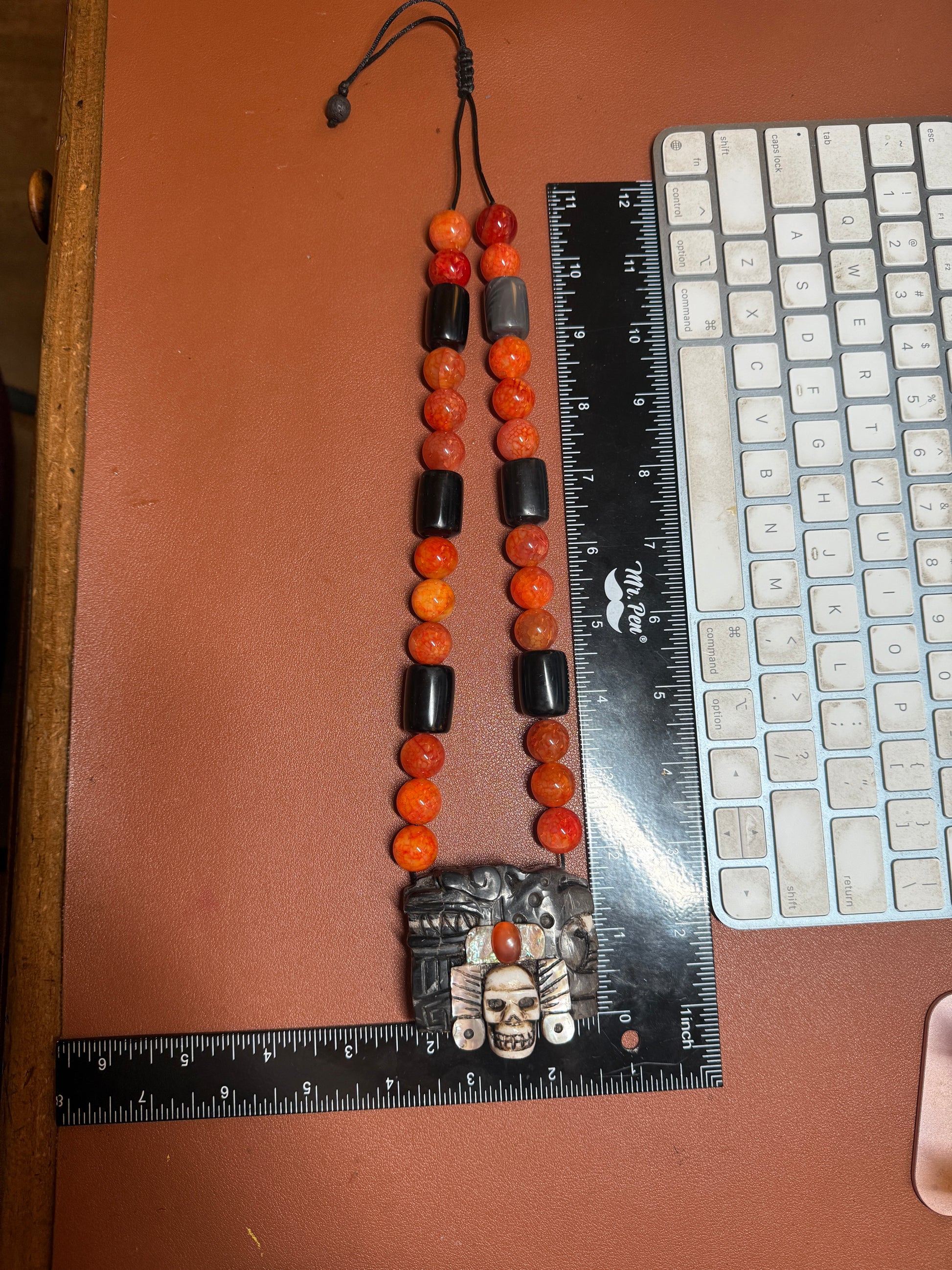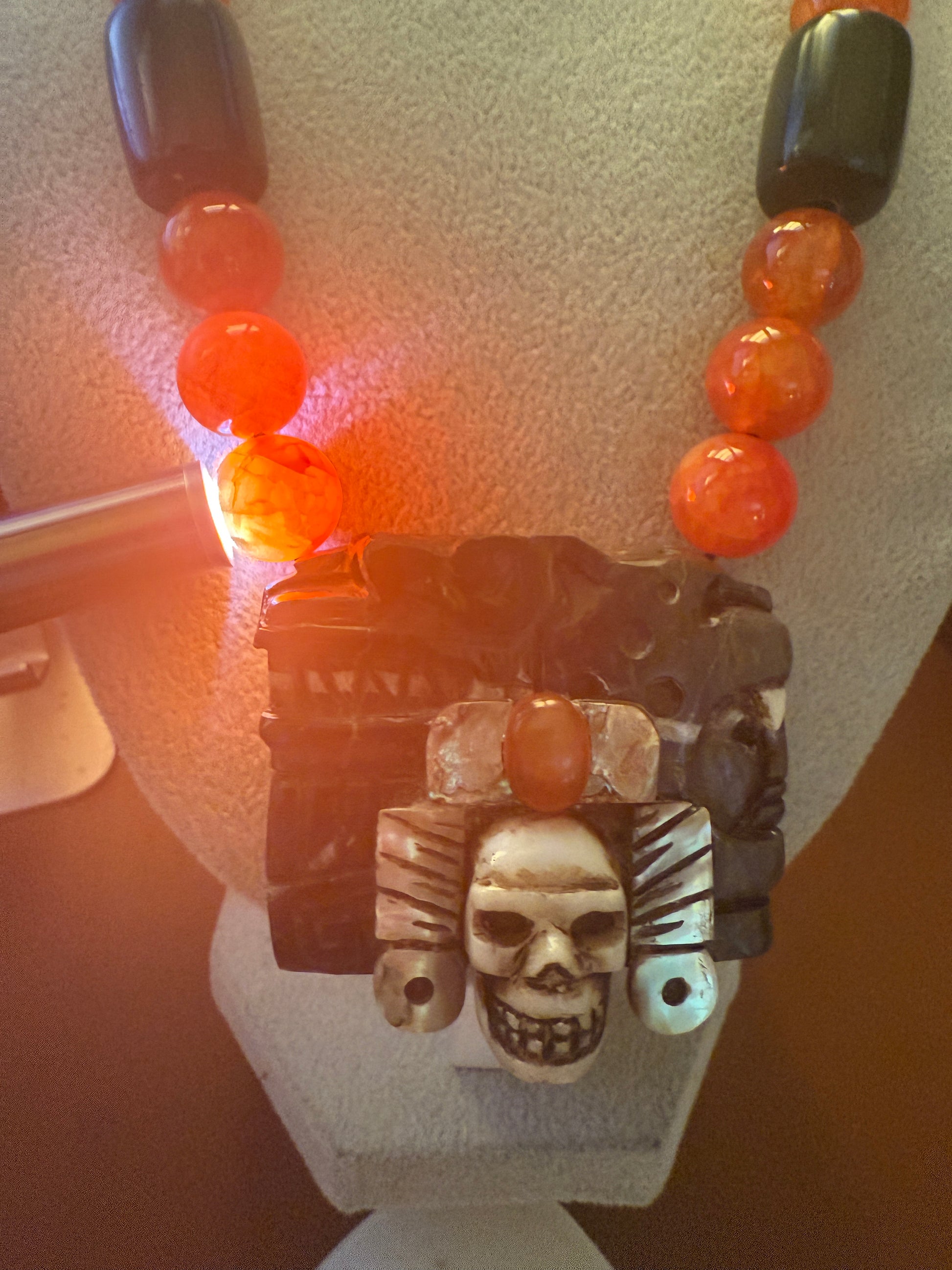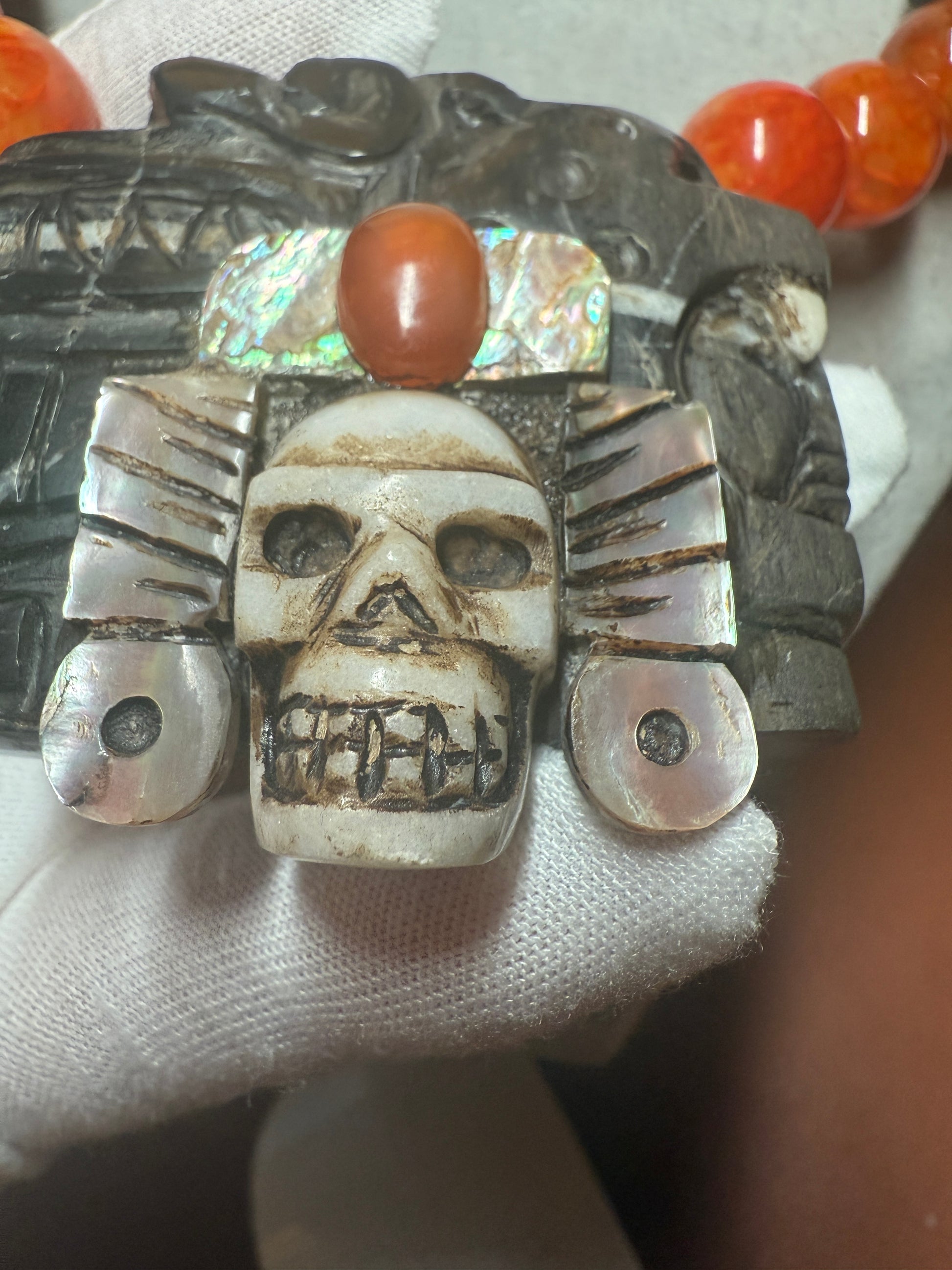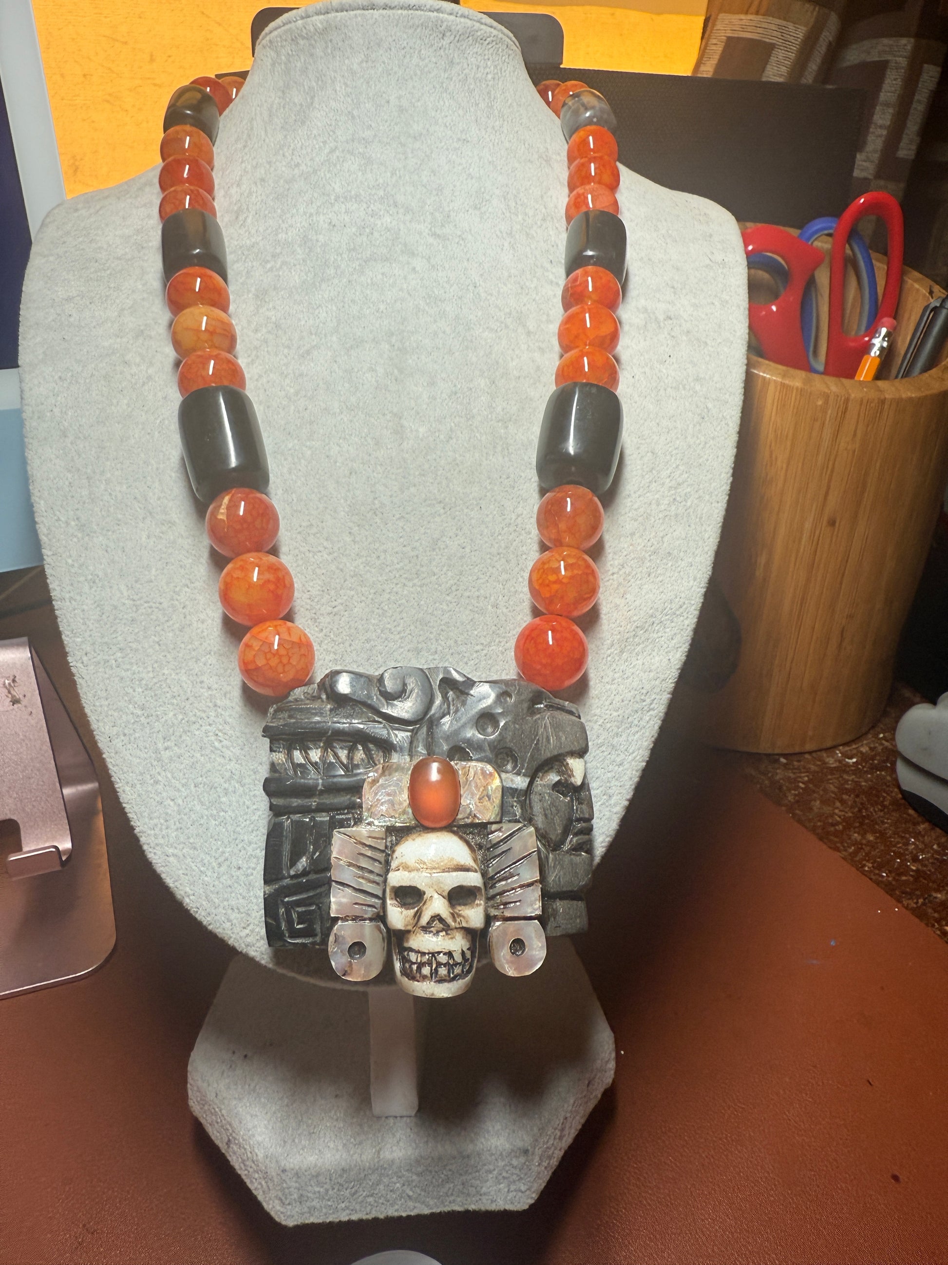 Kukulkan Quetzalcoatl Jaguar Mictlantecuhtli Warrior Pendant Necklace, all natural stones.