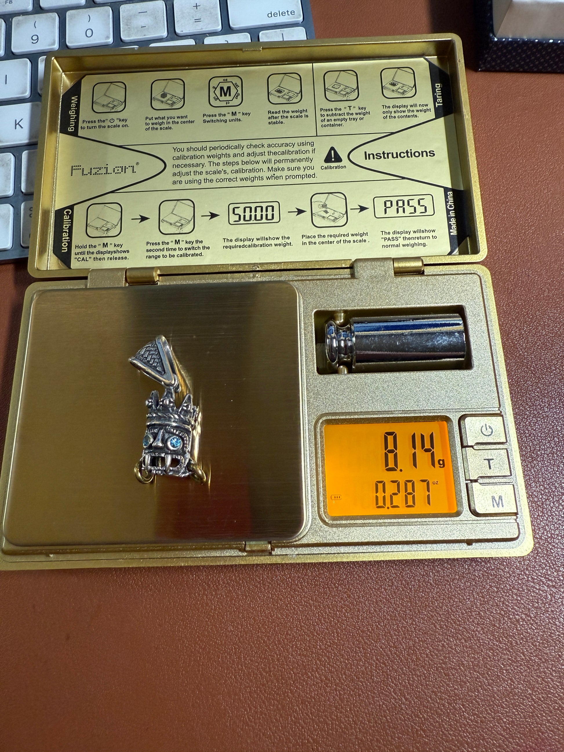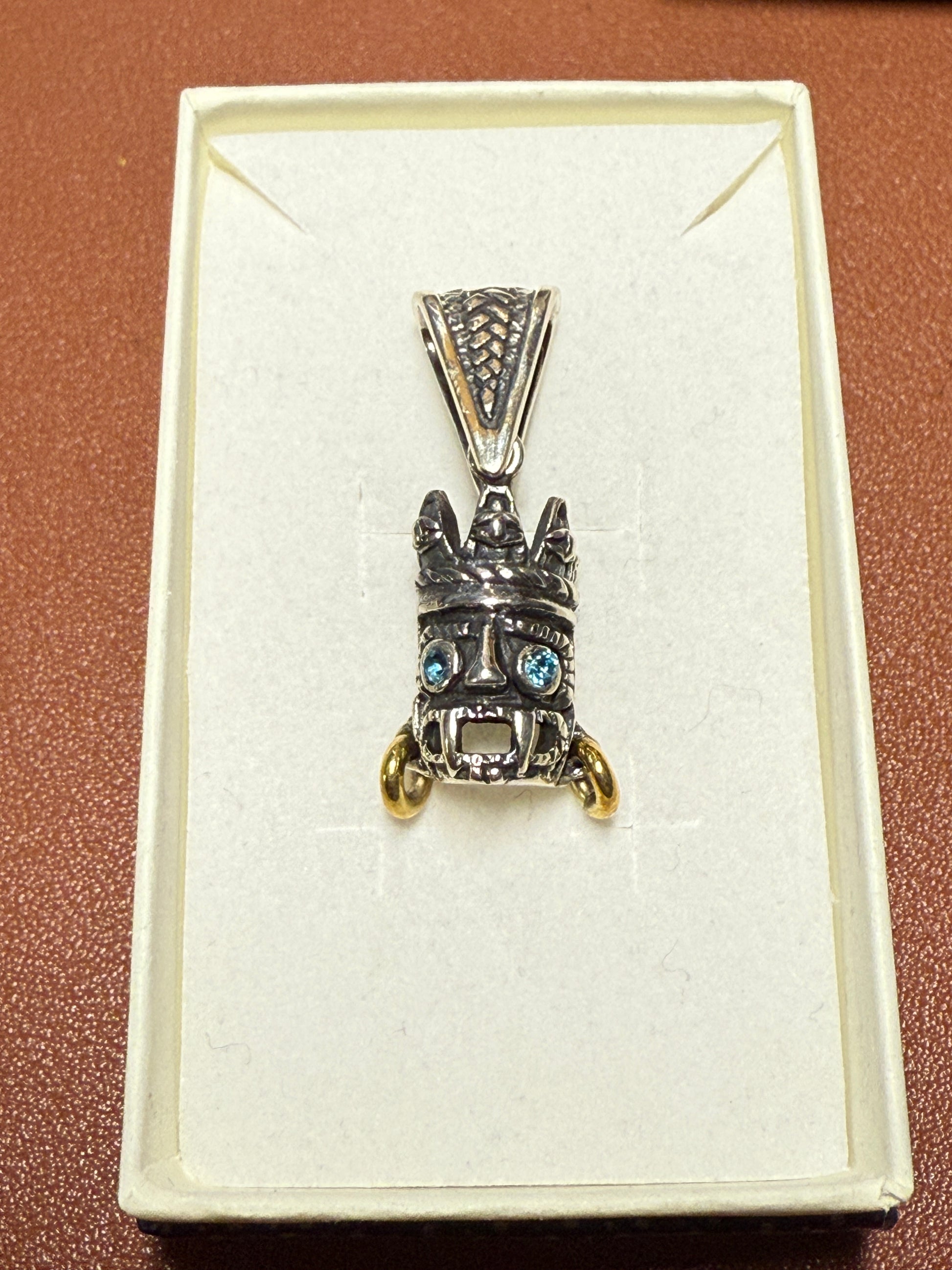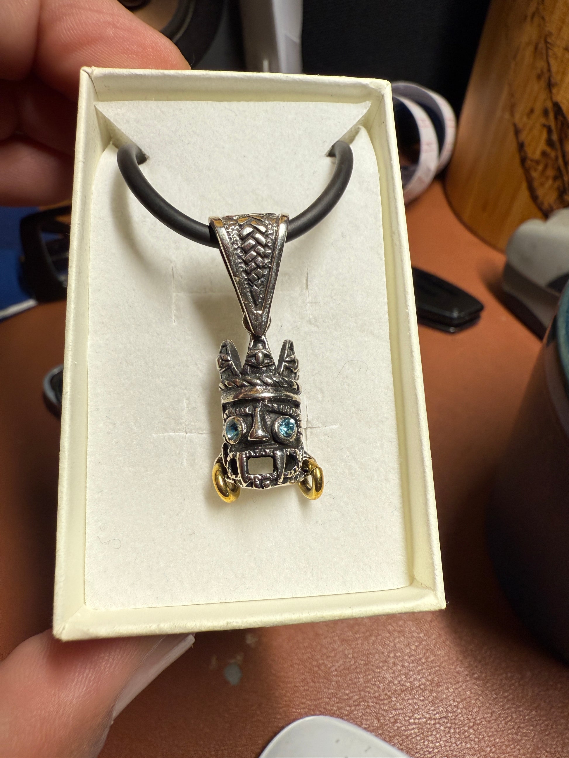 Small Tlaloc pendant Sterling Silver, Aztec Rain God, Blue Zirconia Eyes, Mexico, #4