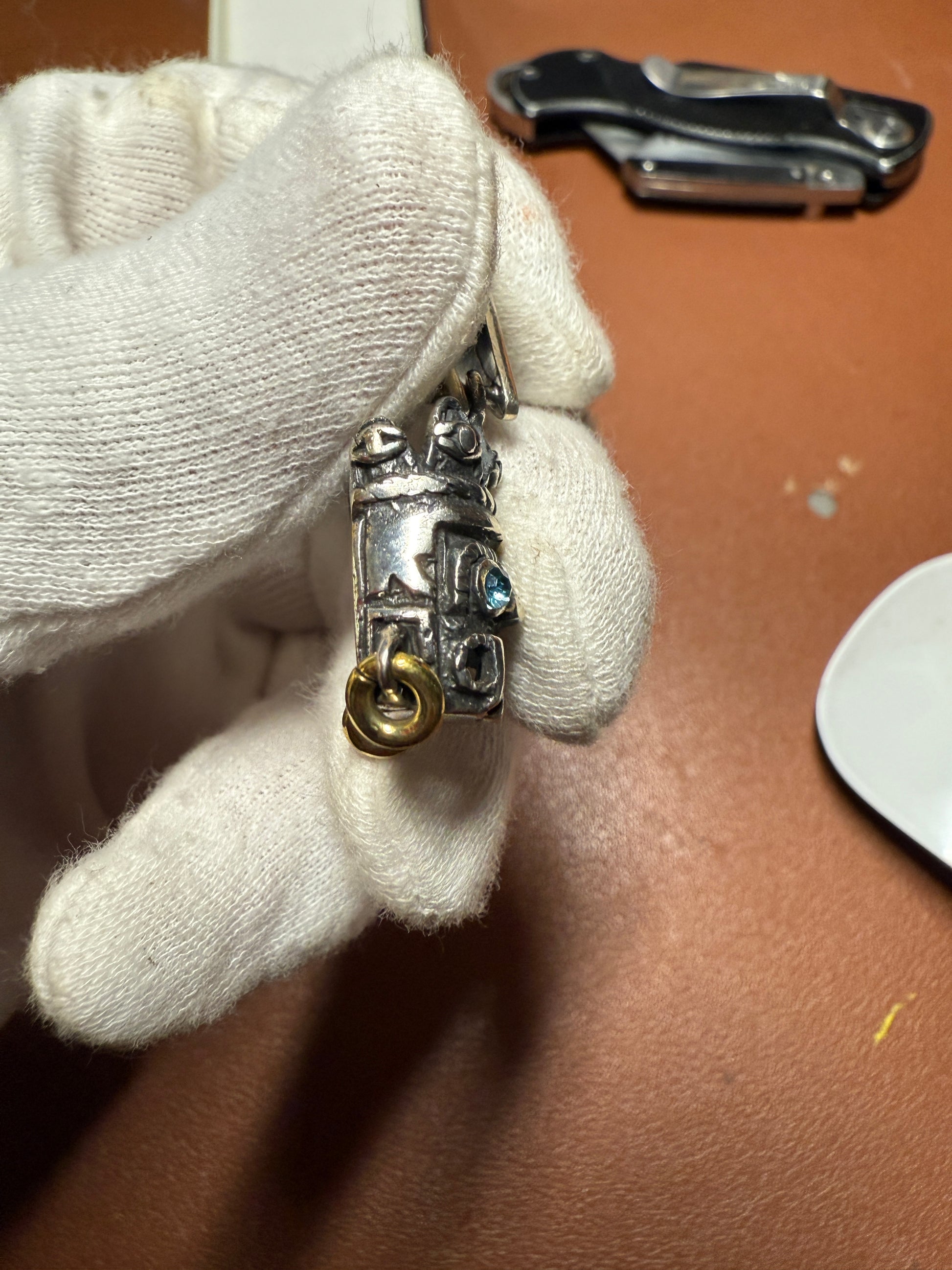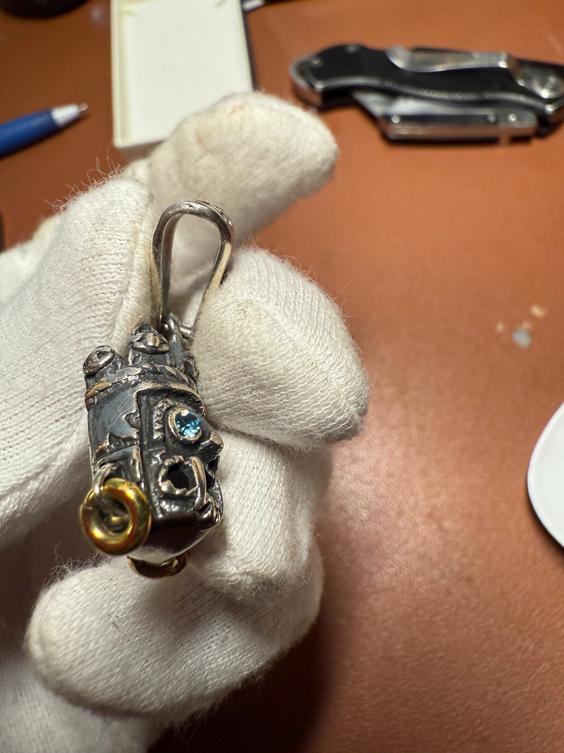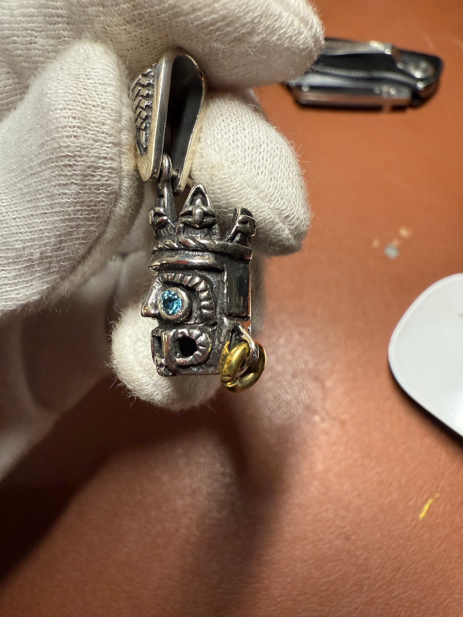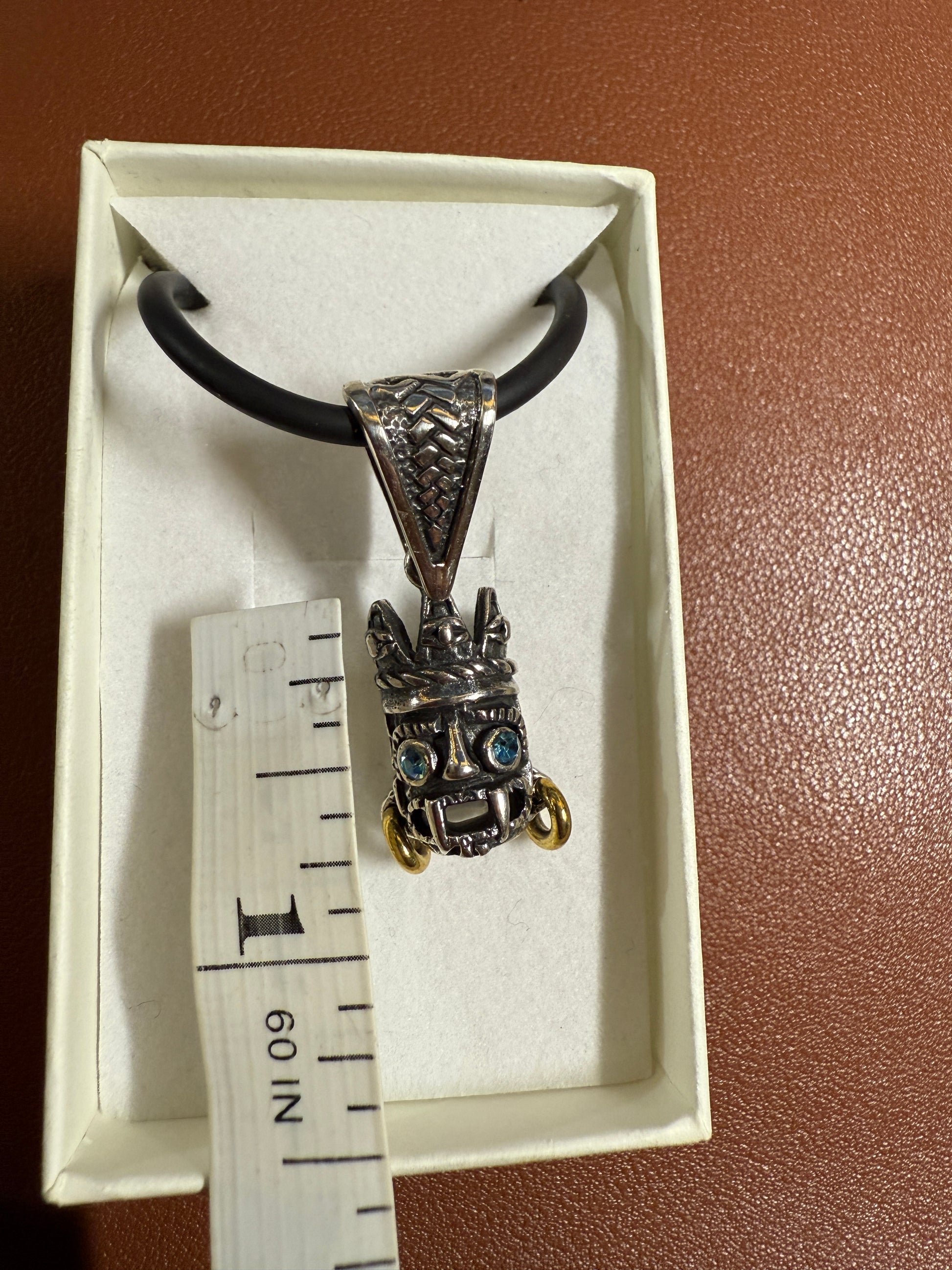 Small Tlaloc pendant Sterling Silver, Aztec Rain God, Blue Zirconia Eyes, Mexico, #4
