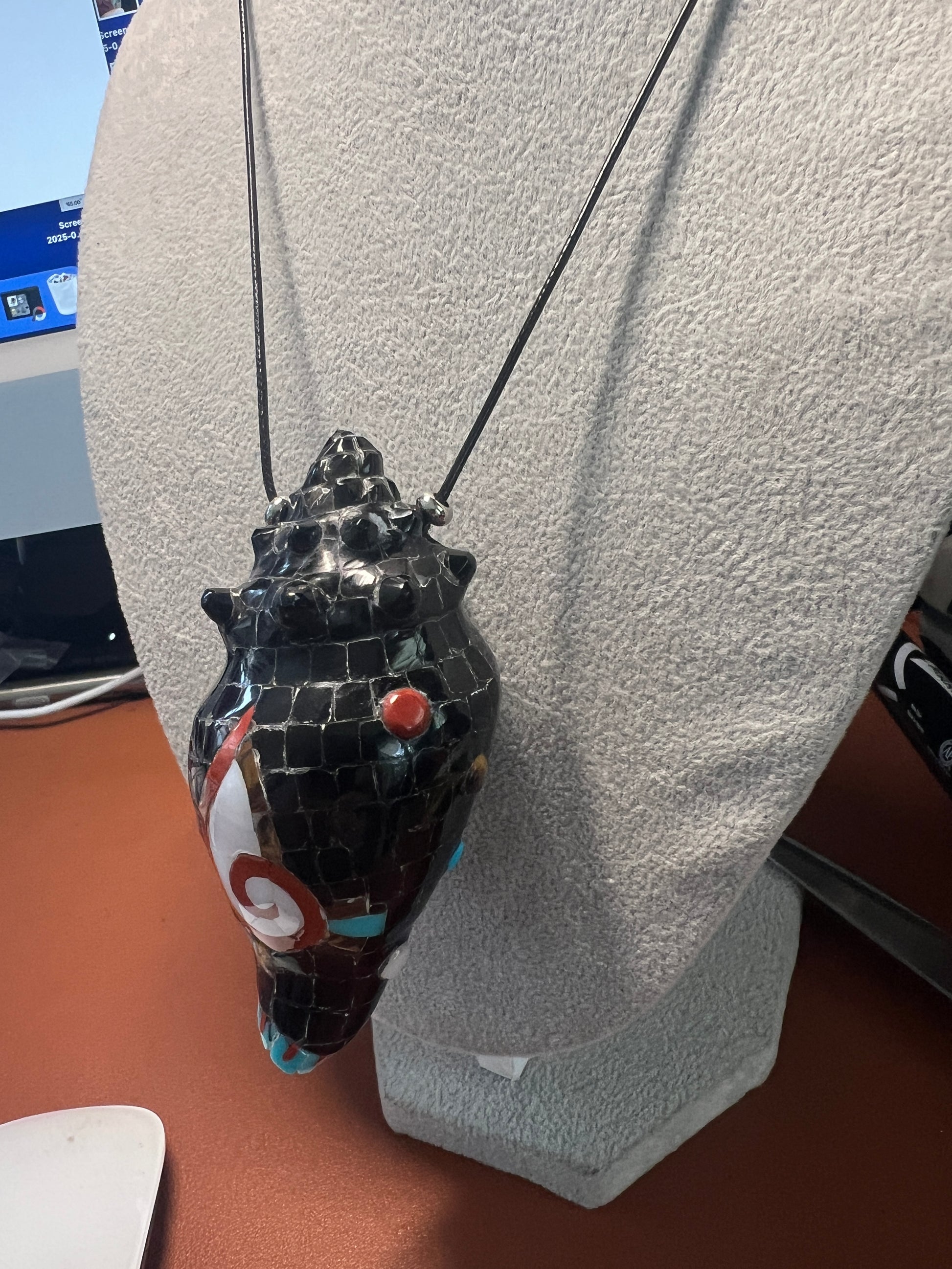 Conch Sea Shell Mosaic Obsidian Turquoise Tiger Eye Mother of Pearl Nahuatl Aztec #H