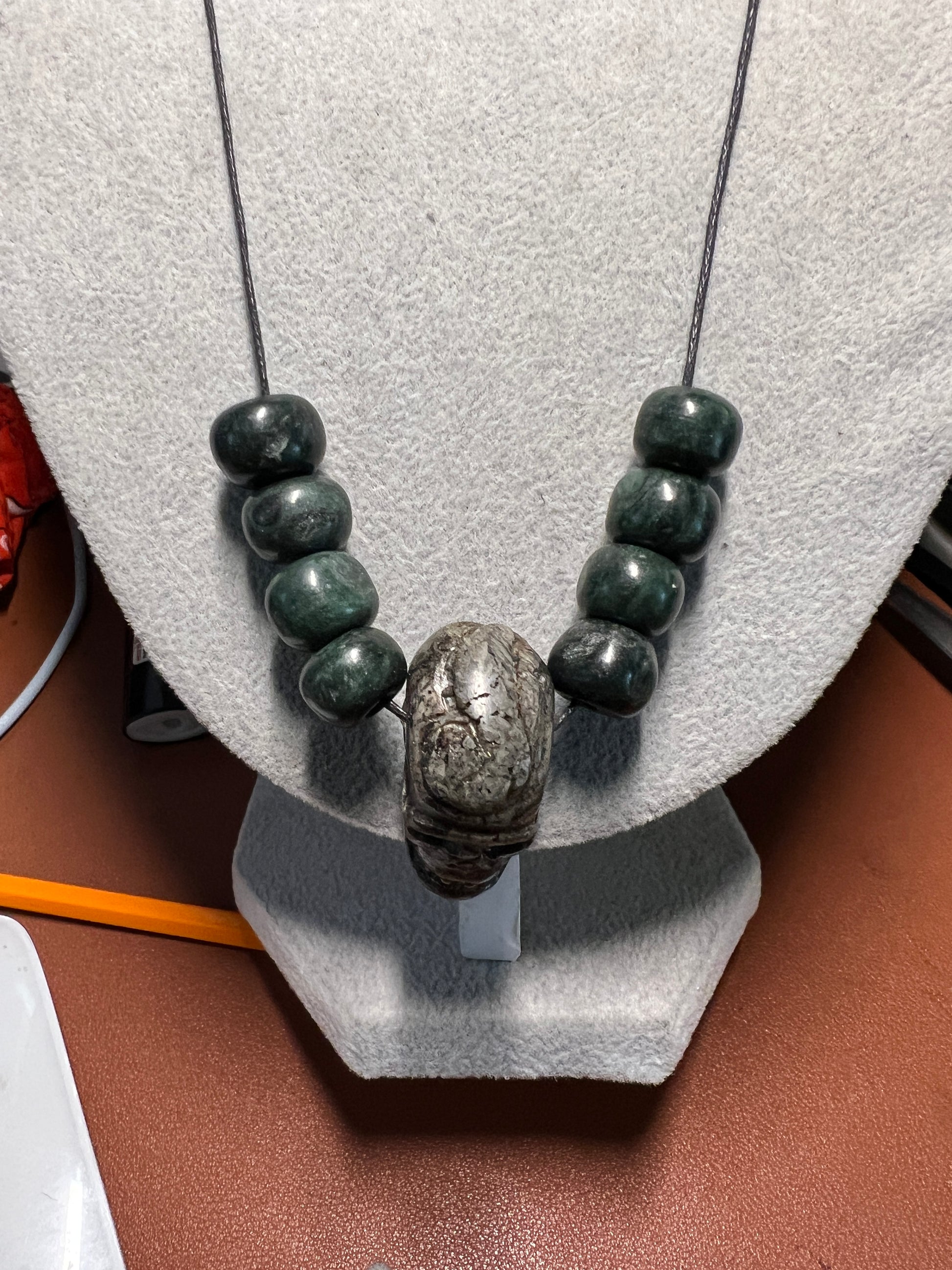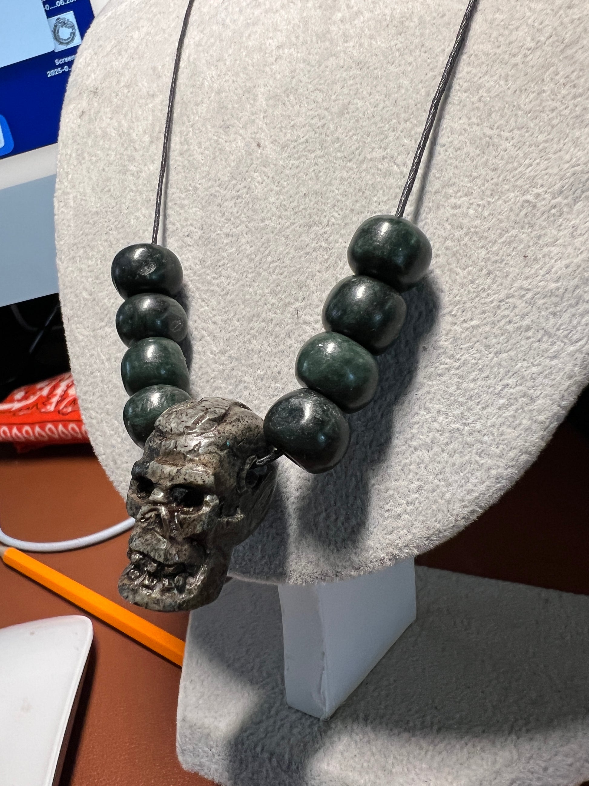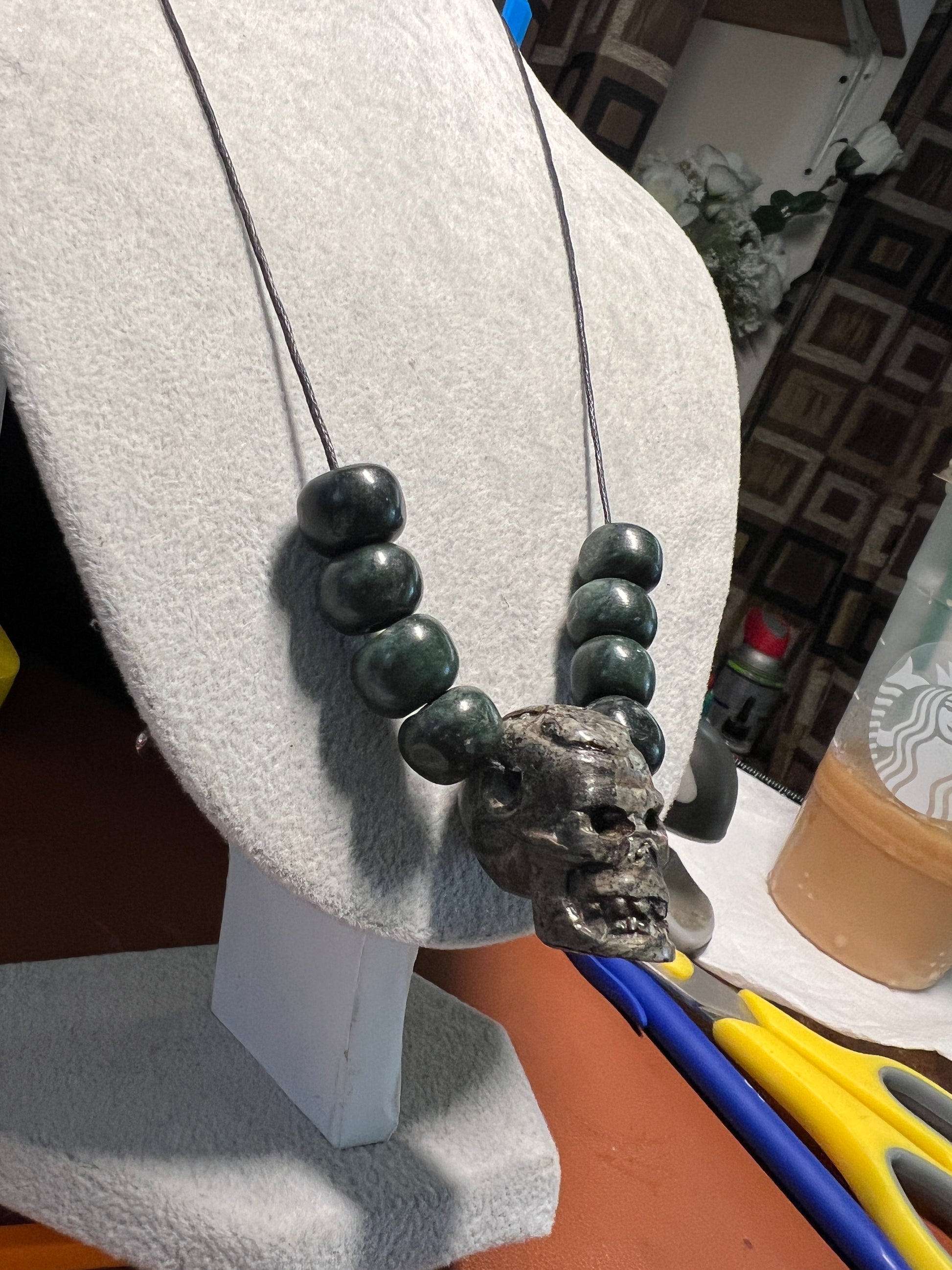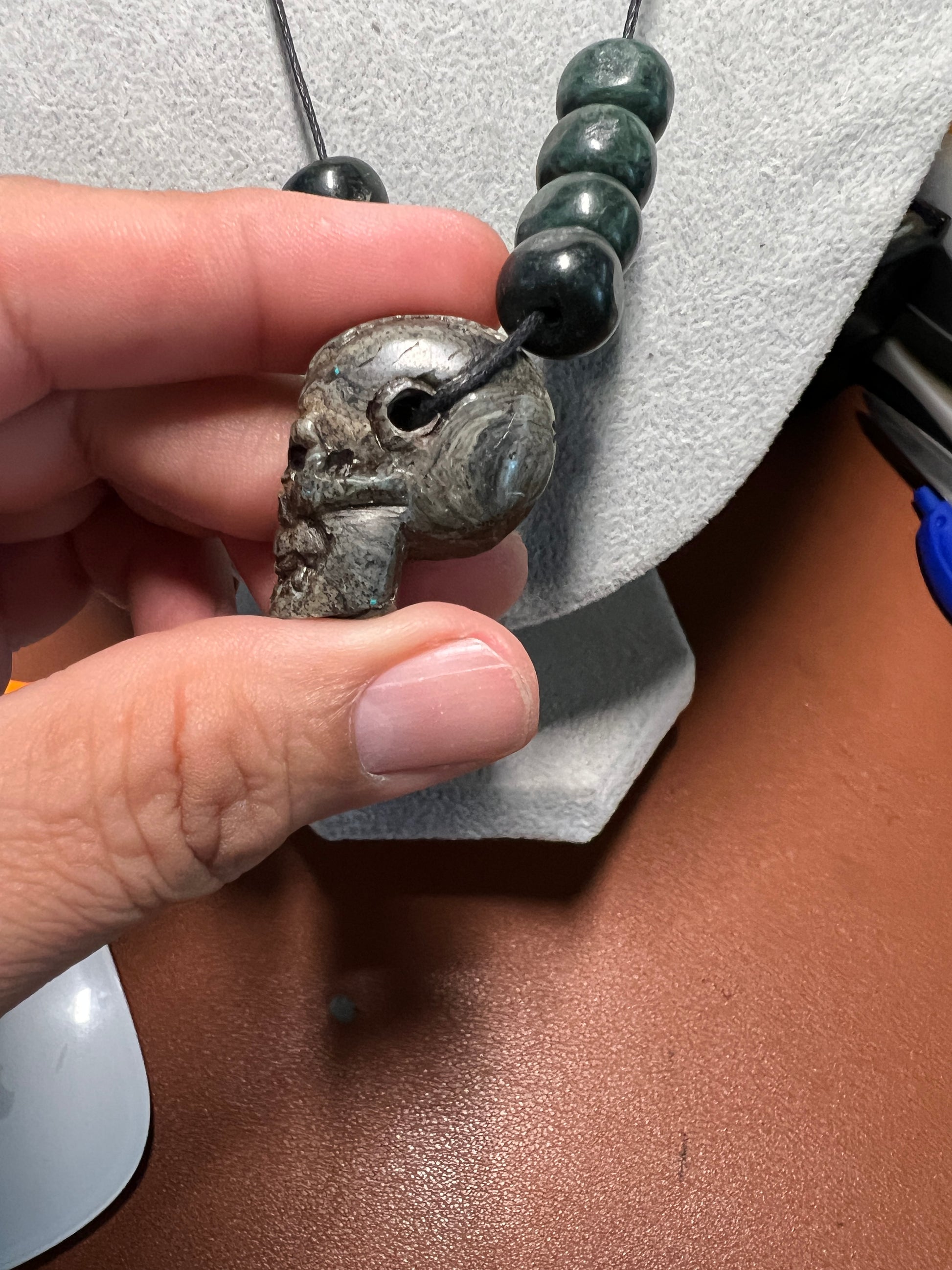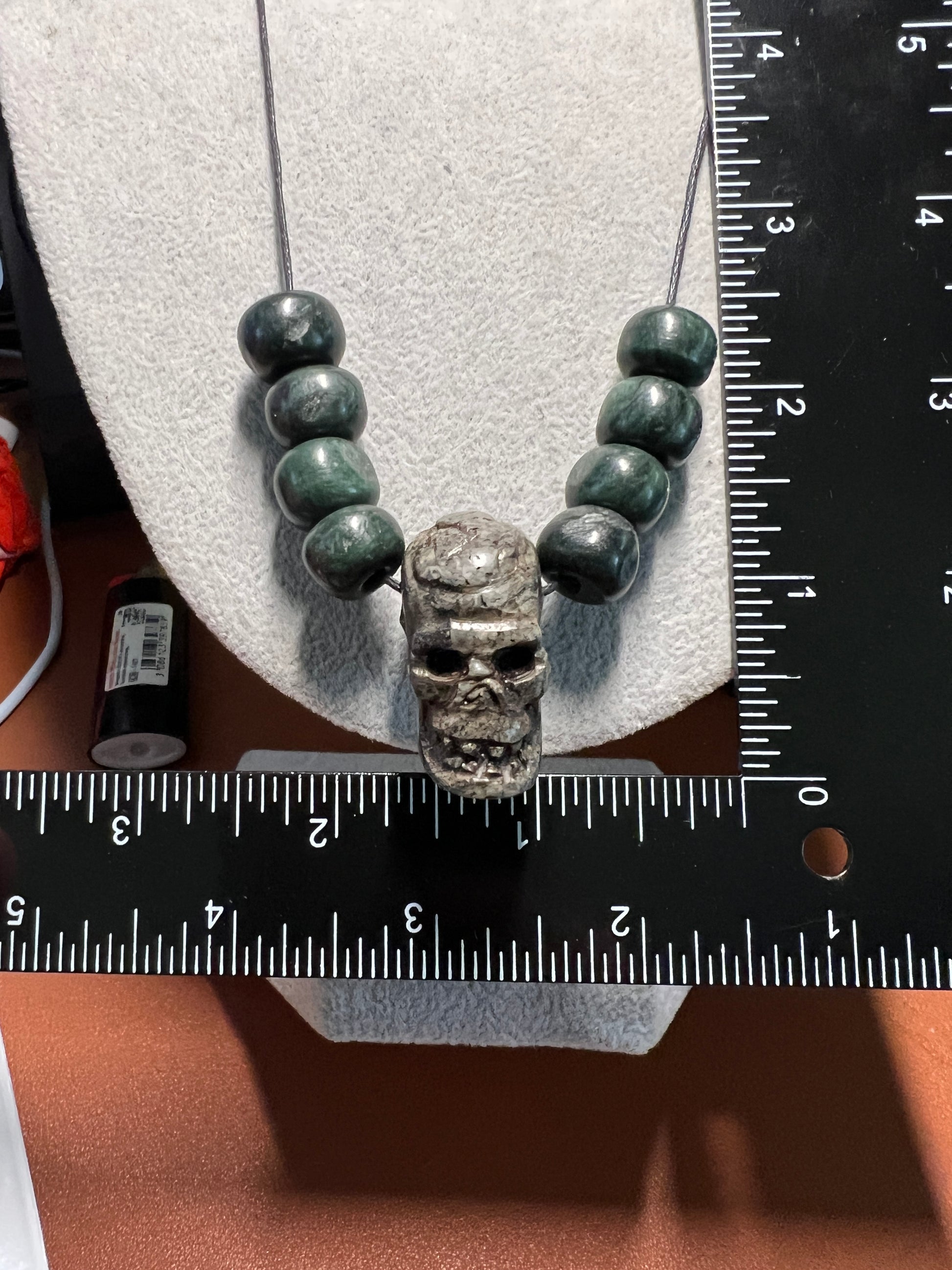Stone Skull Pendant Necklace, Guatemalan Marble Beads, Handmade, Mexico, Tribal (#2)
