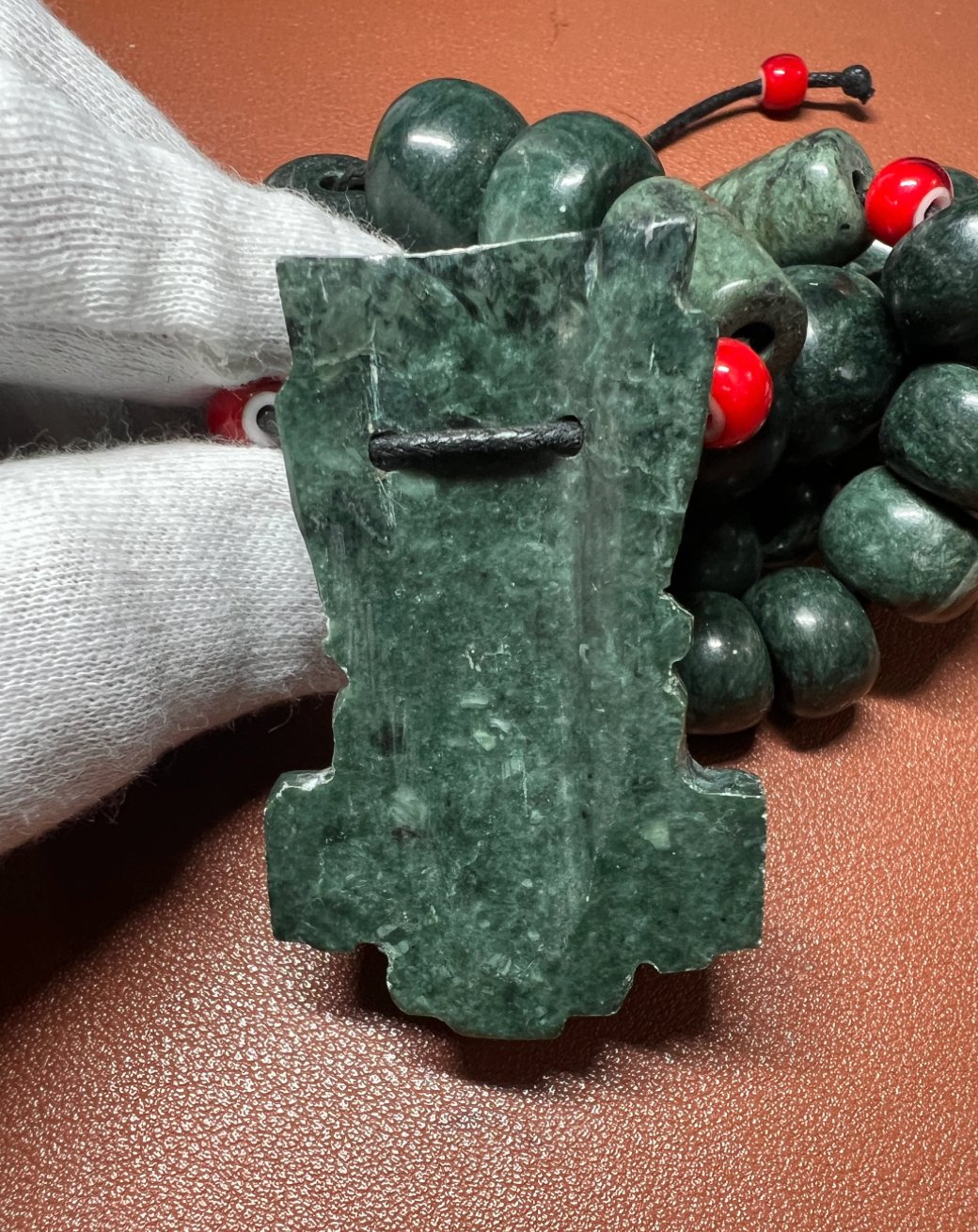 Serpentine Tlaloc Pendant Marble Beaded Necklace, Aztec Rain God, Mexico, Indigenous Jewelry, Native American, Meso-America, Pre-Hispanic (#17)