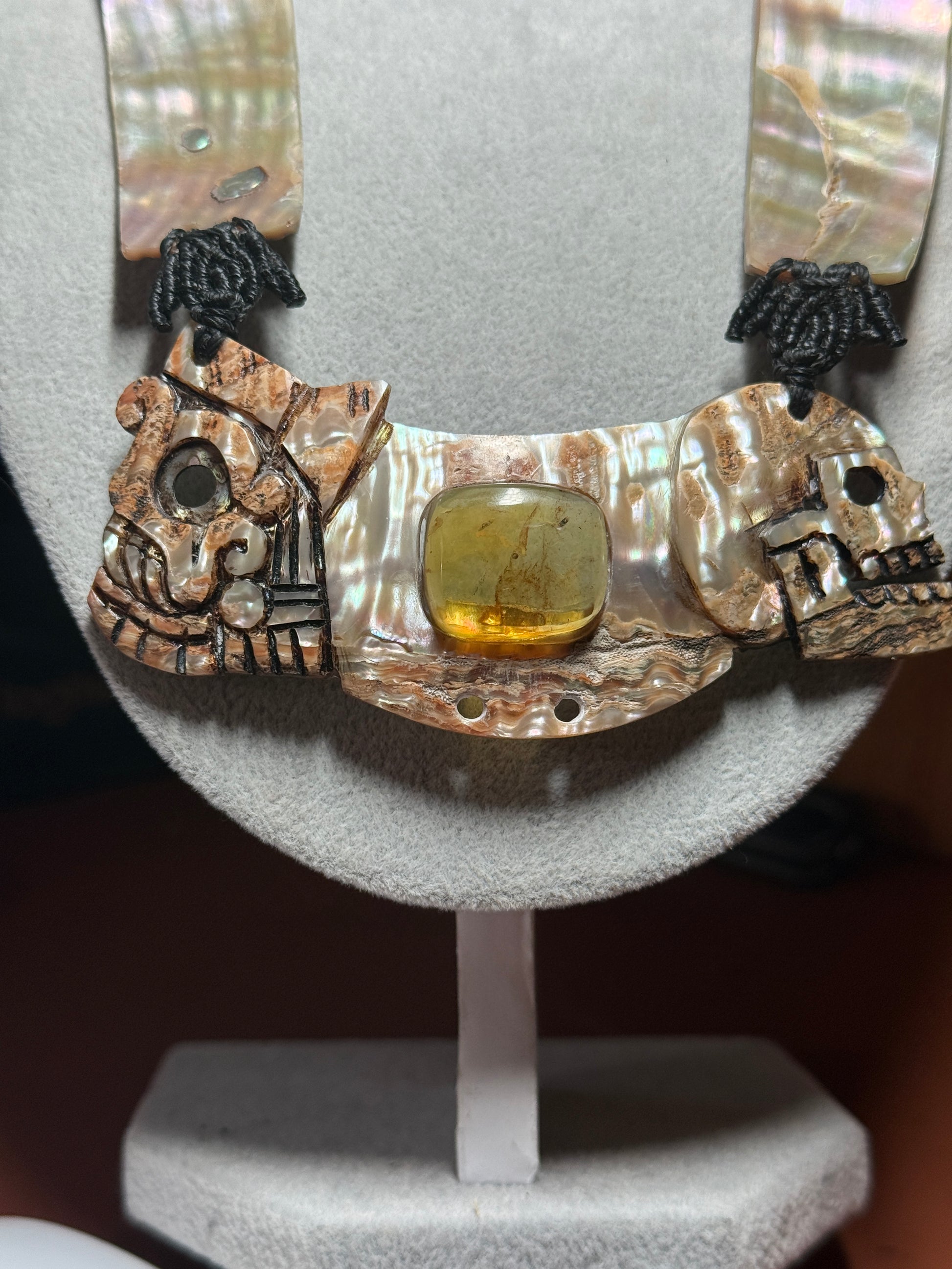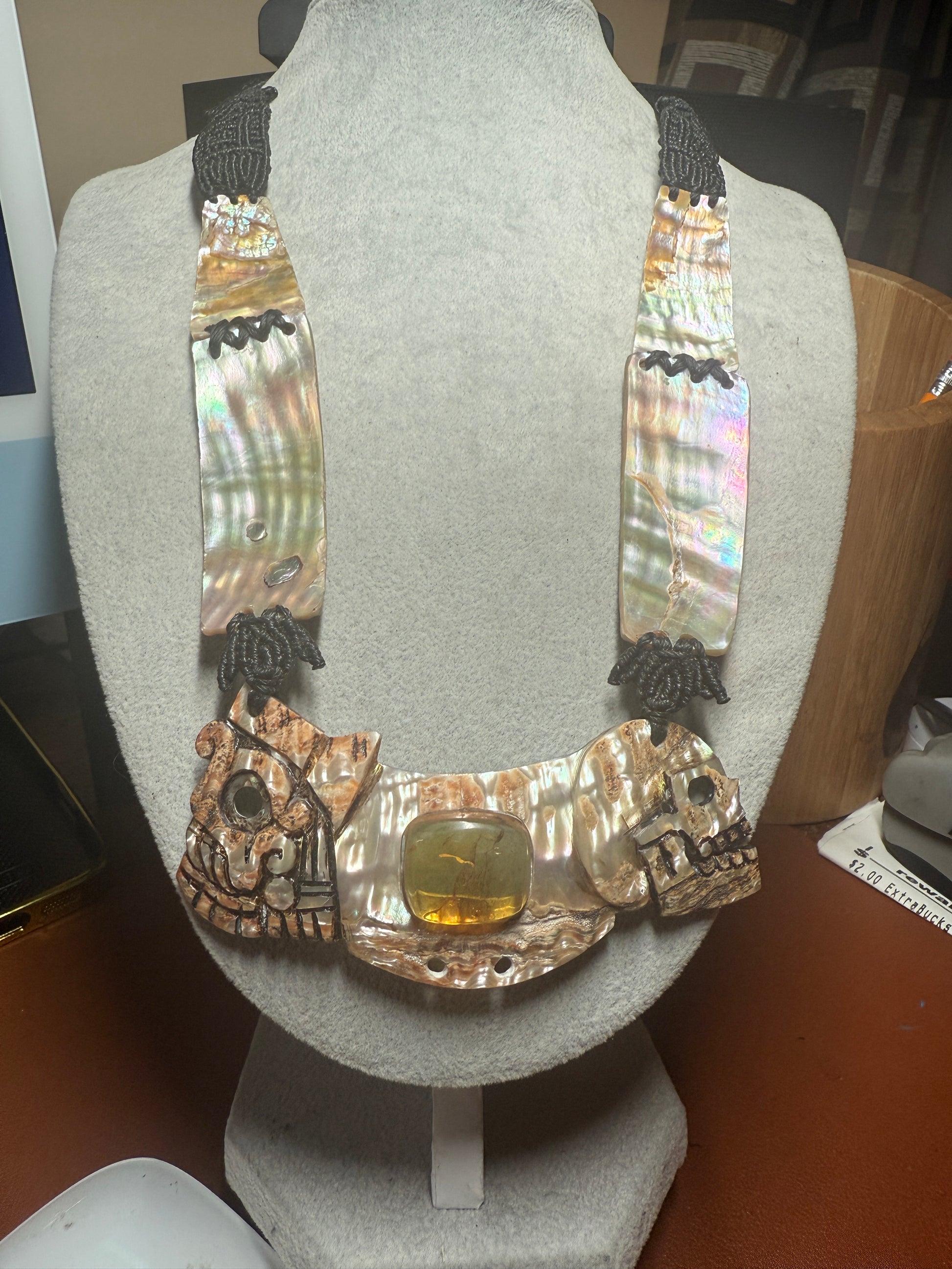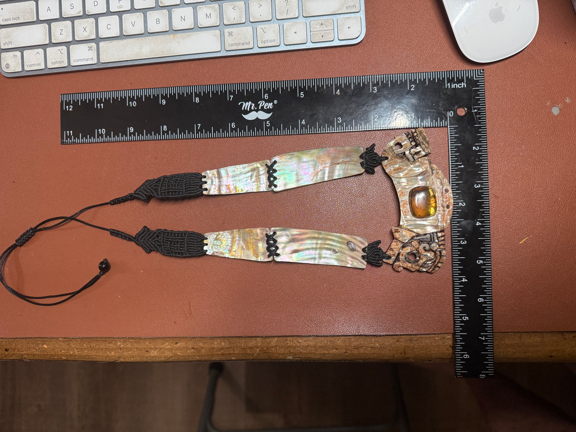 Aztec Tlaloc Mictlantecuhtli Skull Abalone Amber Aztec Pendant