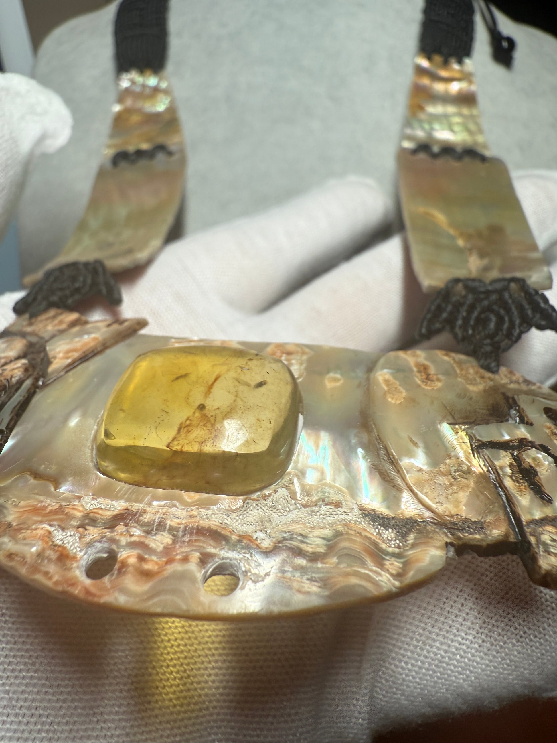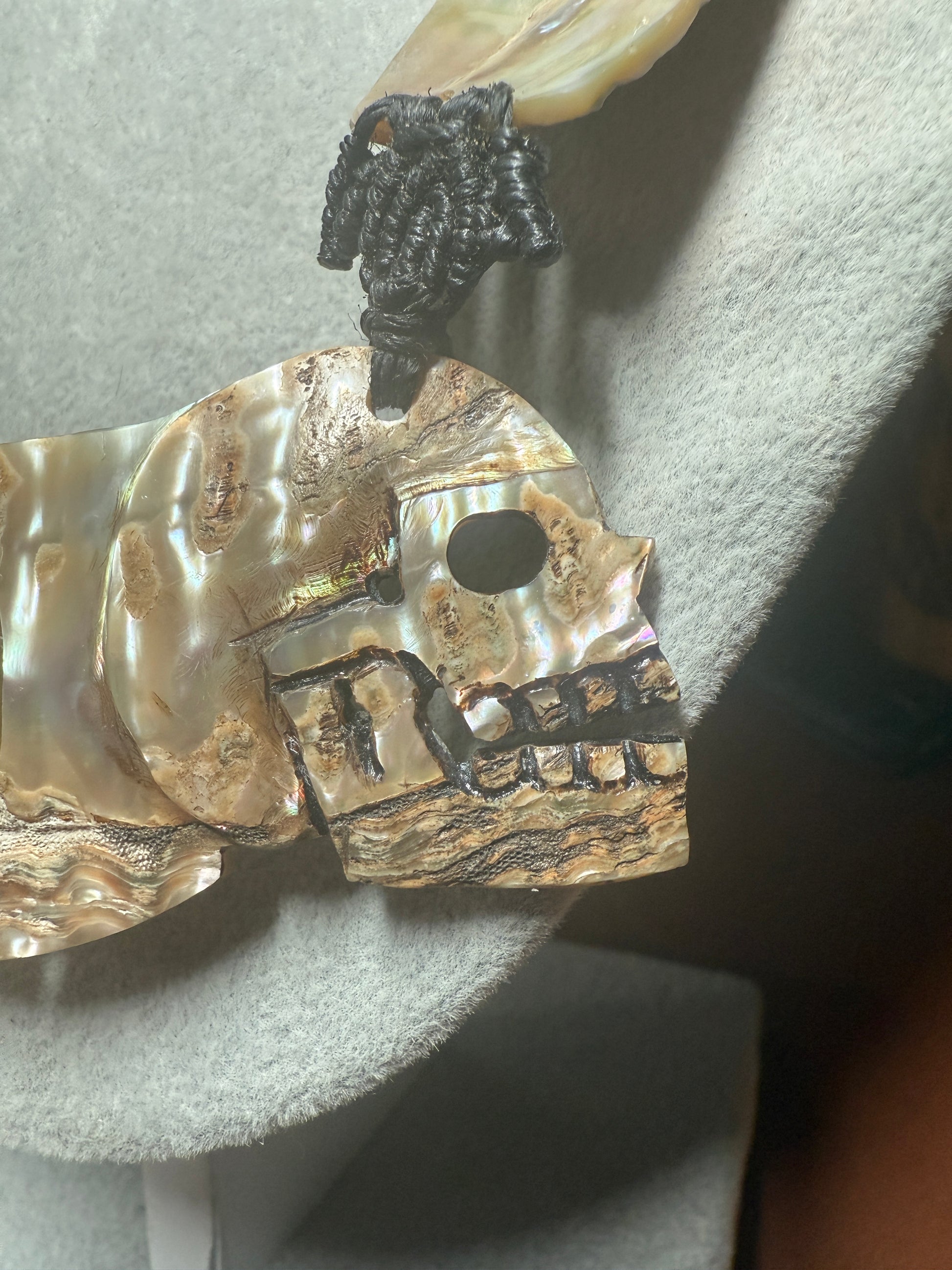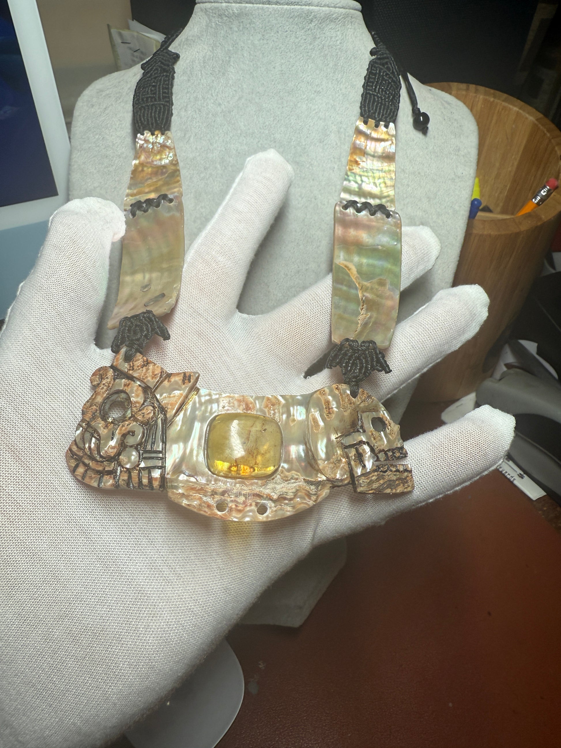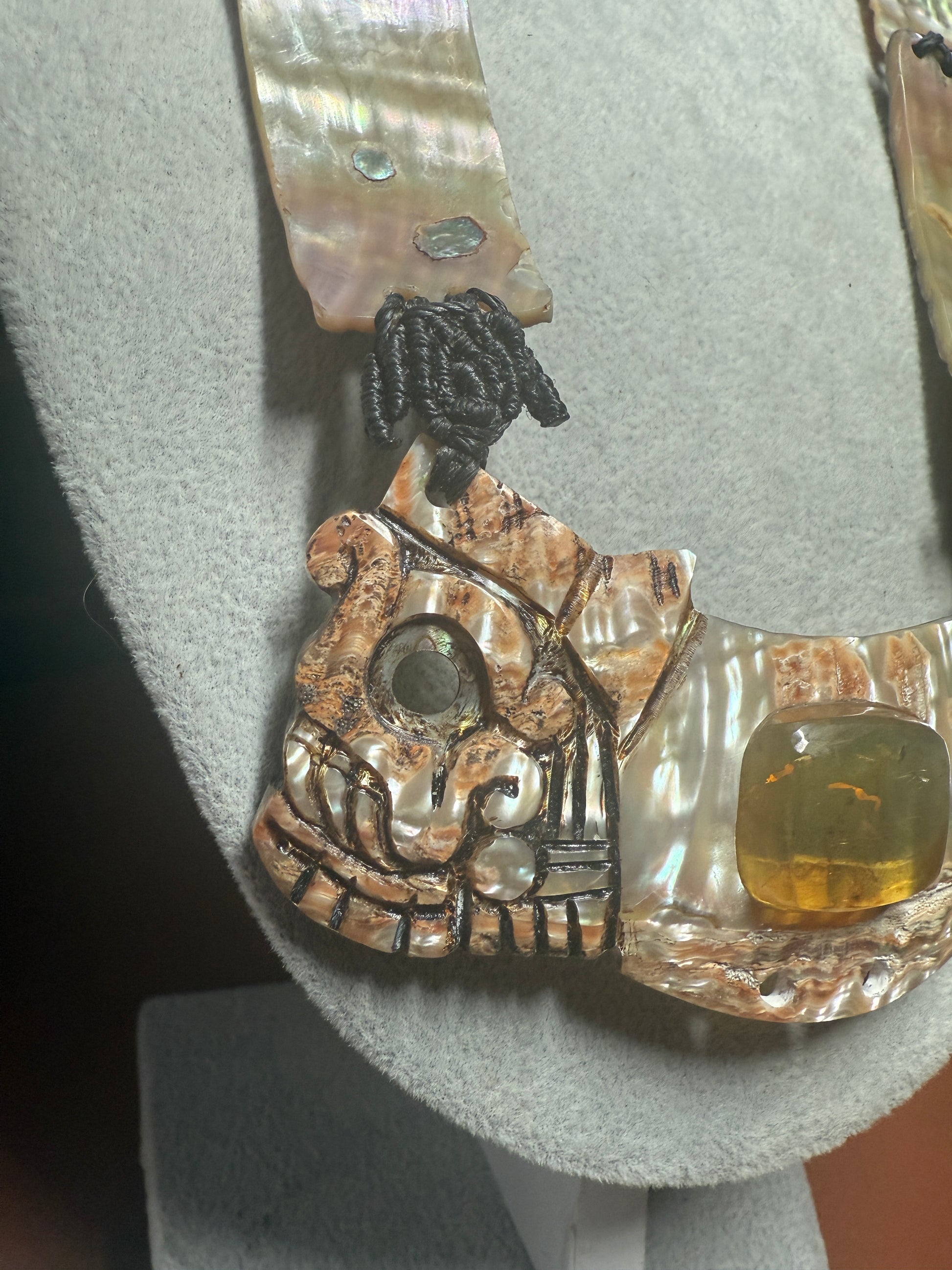 Aztec Tlaloc Mictlantecuhtli Skull Abalone Amber Aztec Pendant