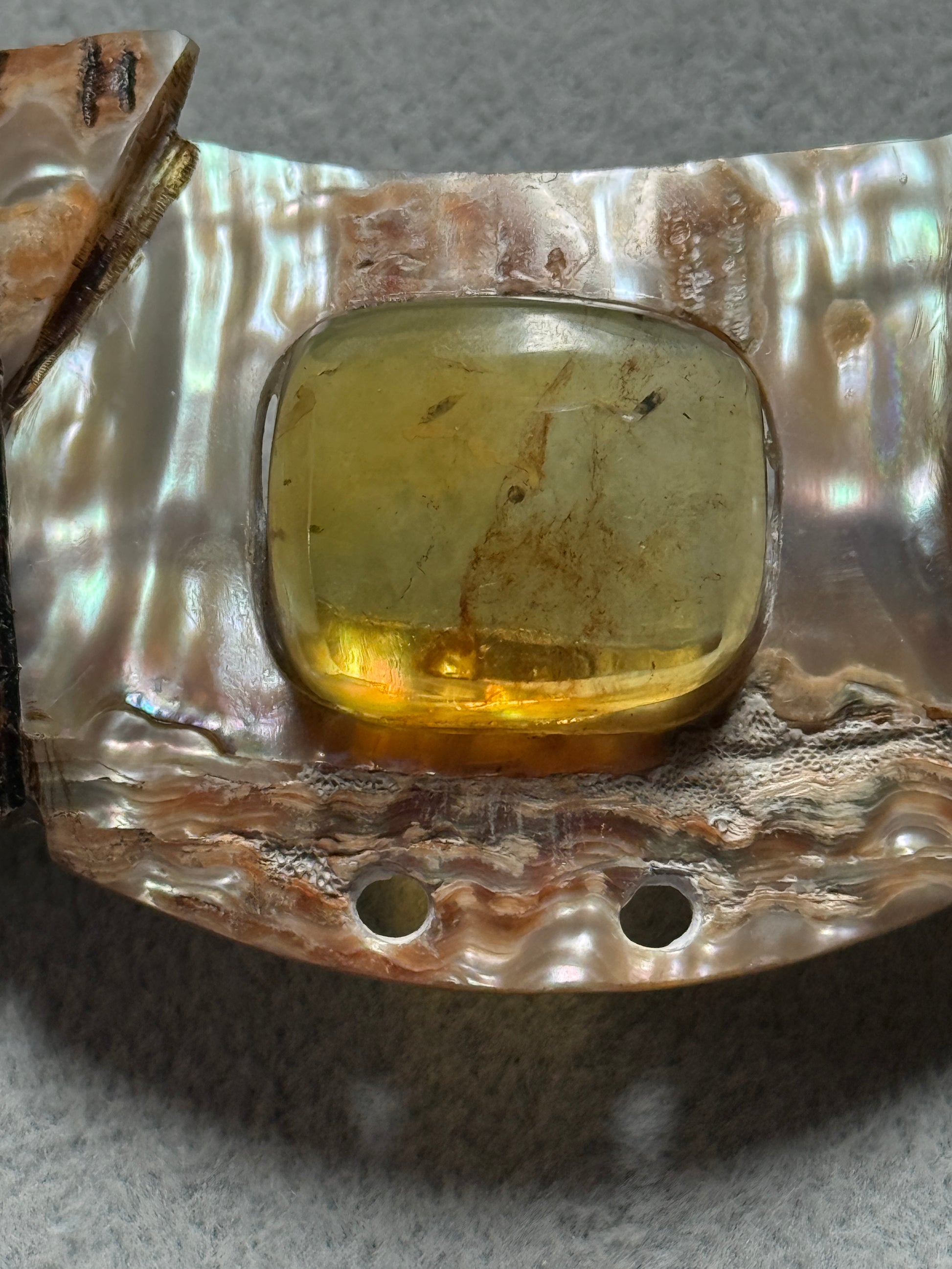 Aztec Tlaloc Mictlantecuhtli Skull Abalone Amber Aztec Pendant, Mexican (#H)