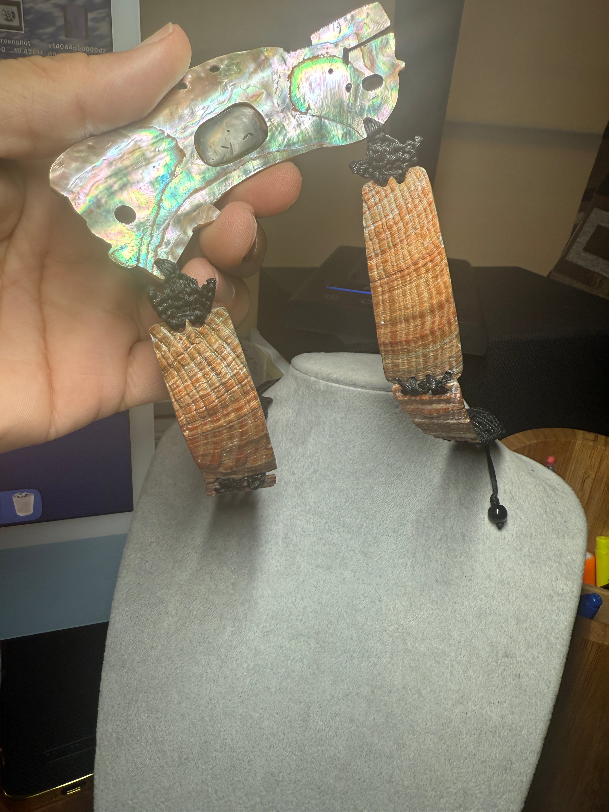 Strung on an adjustable braided rope.