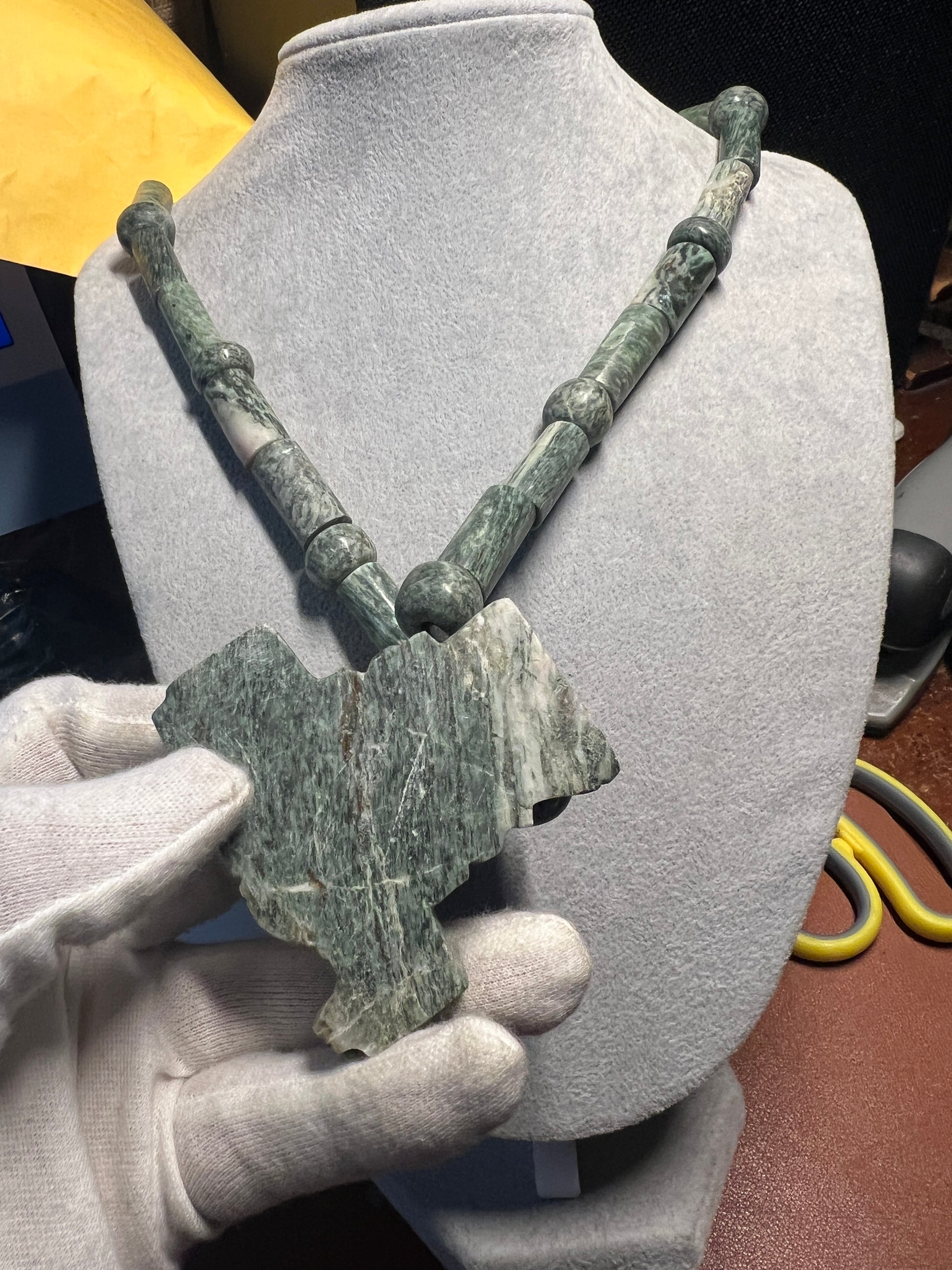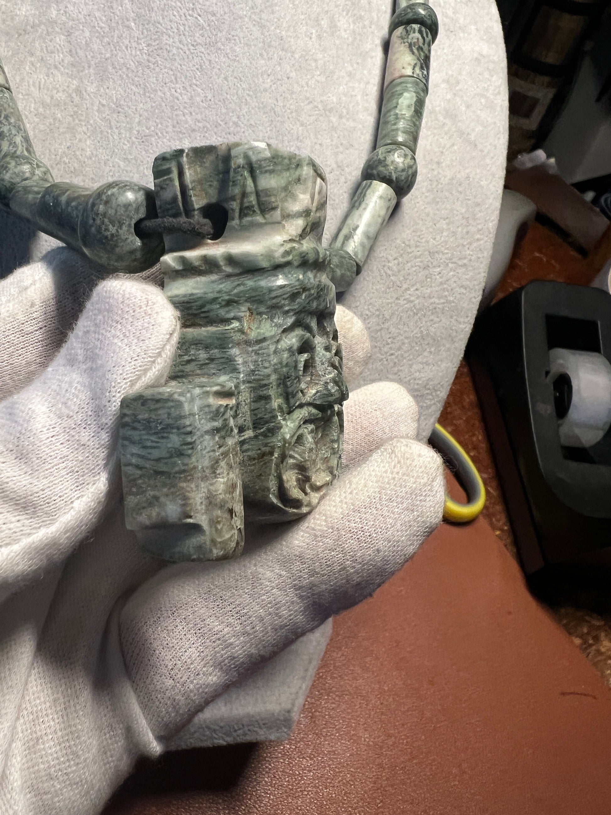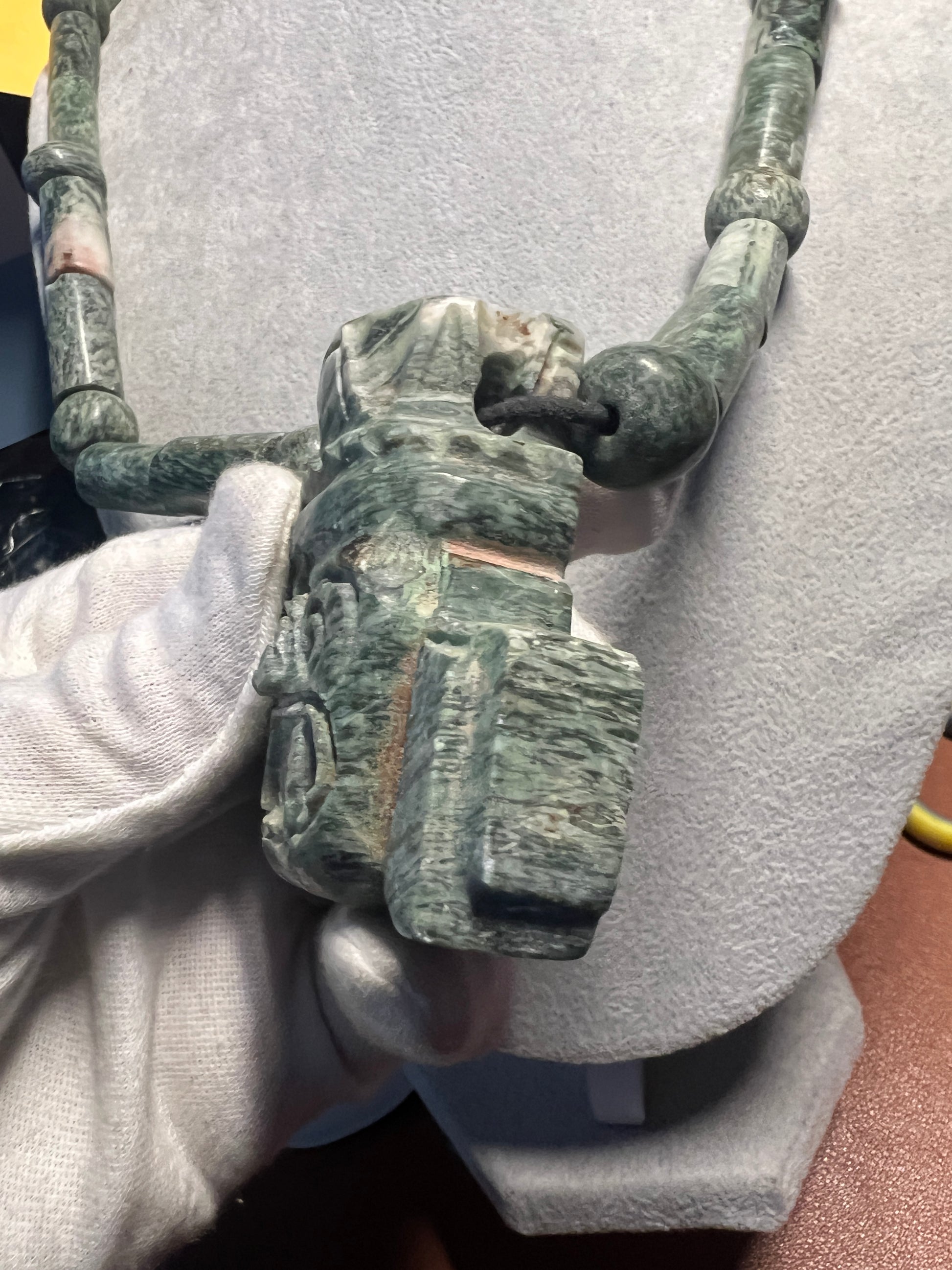 Tlaloc Pendant and Beaded Necklace of Mayan Granite, from Mexico, Azteca (#38)