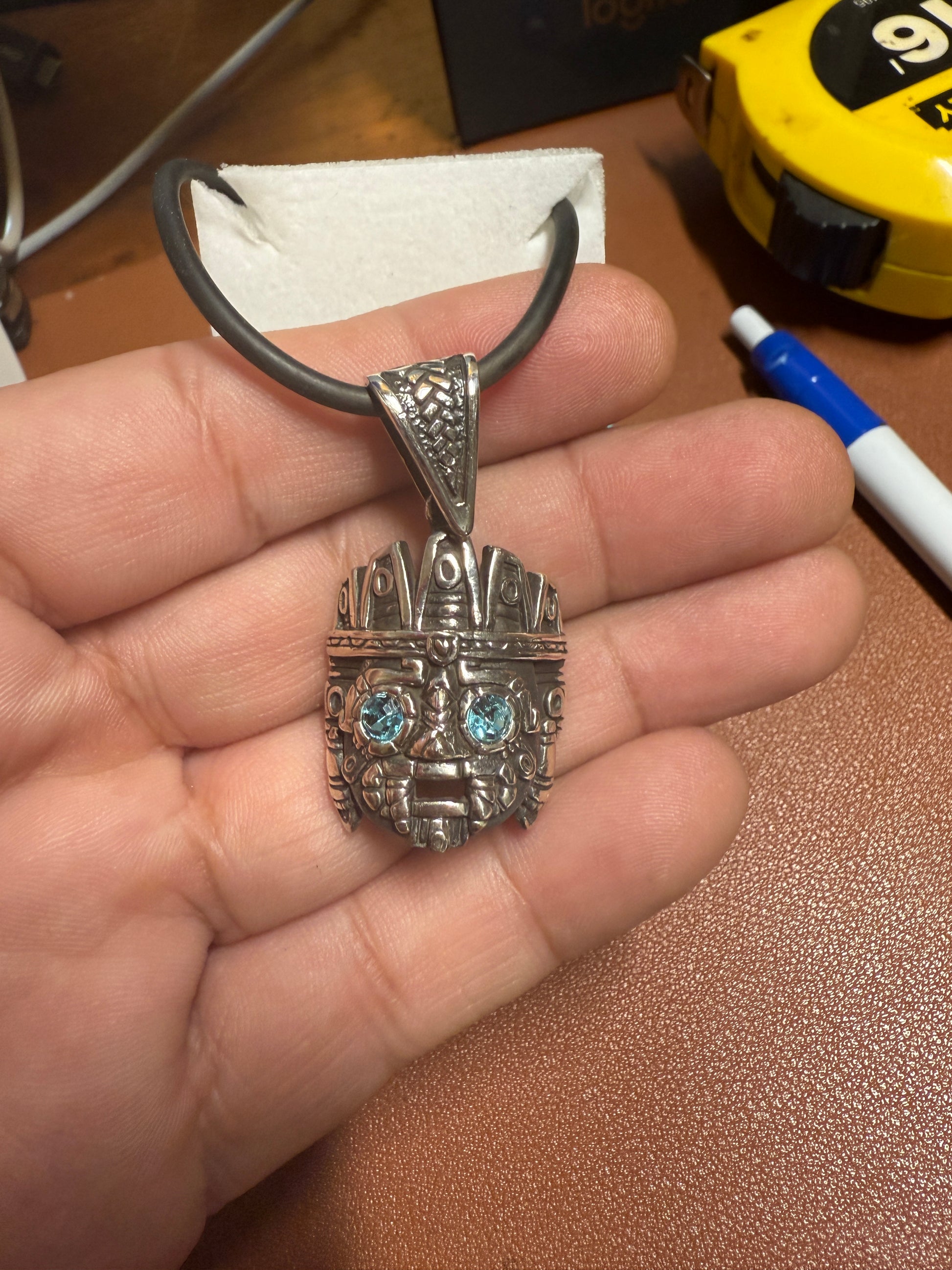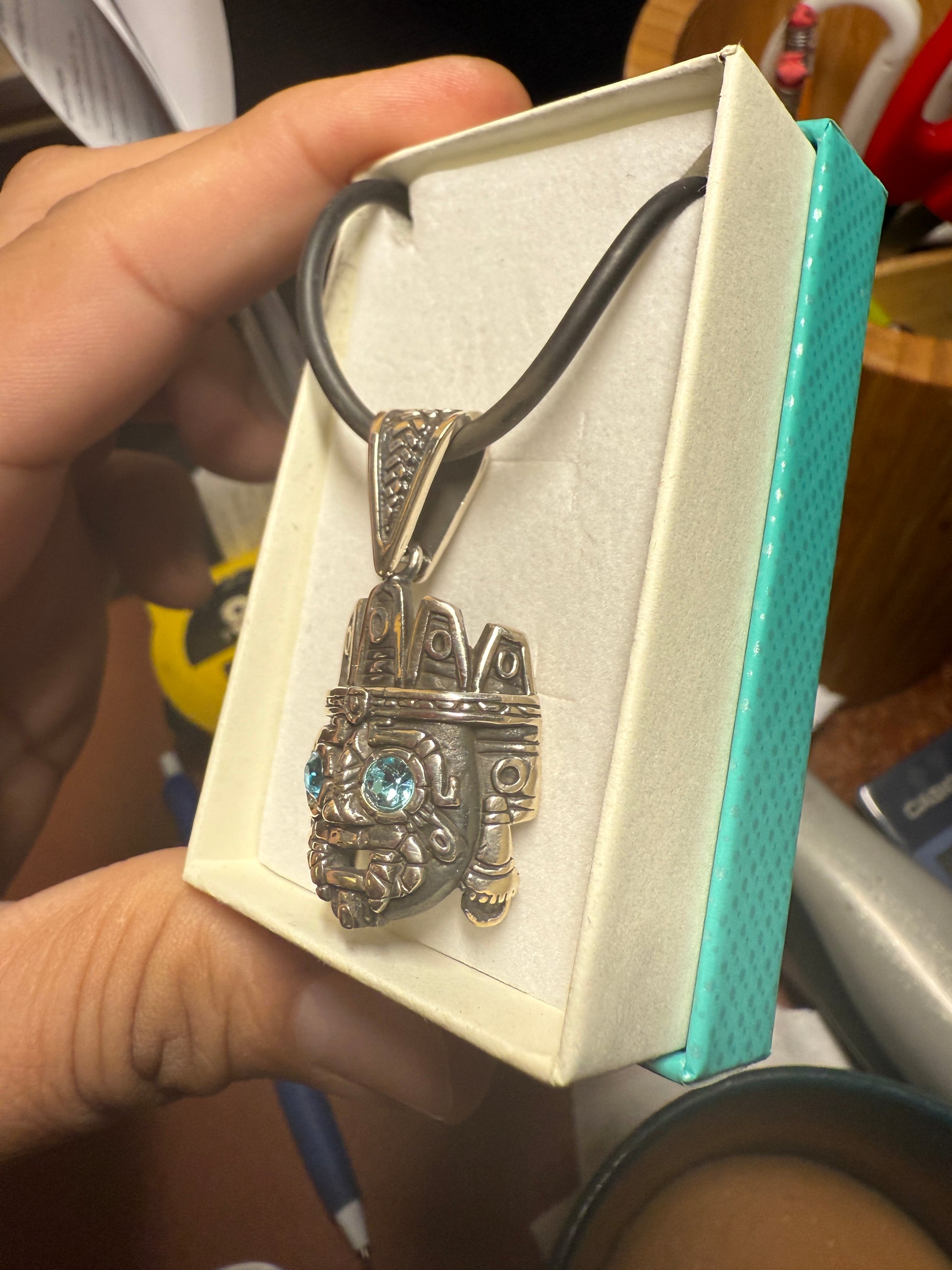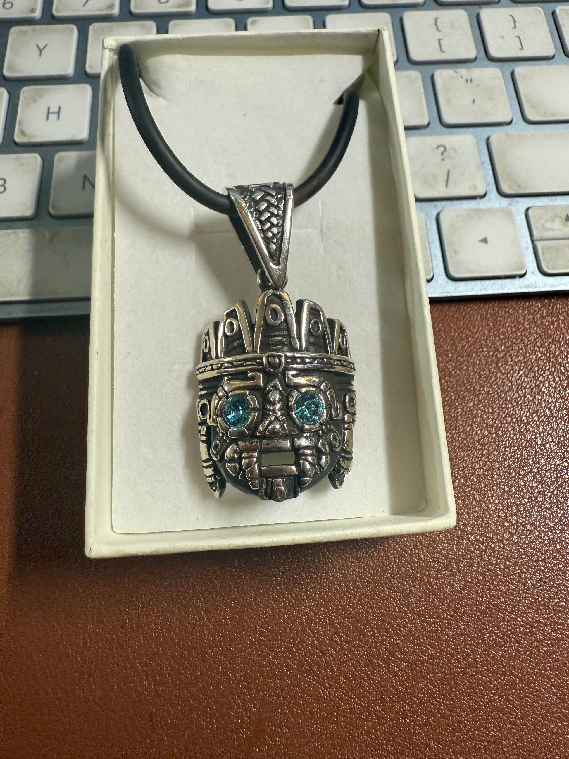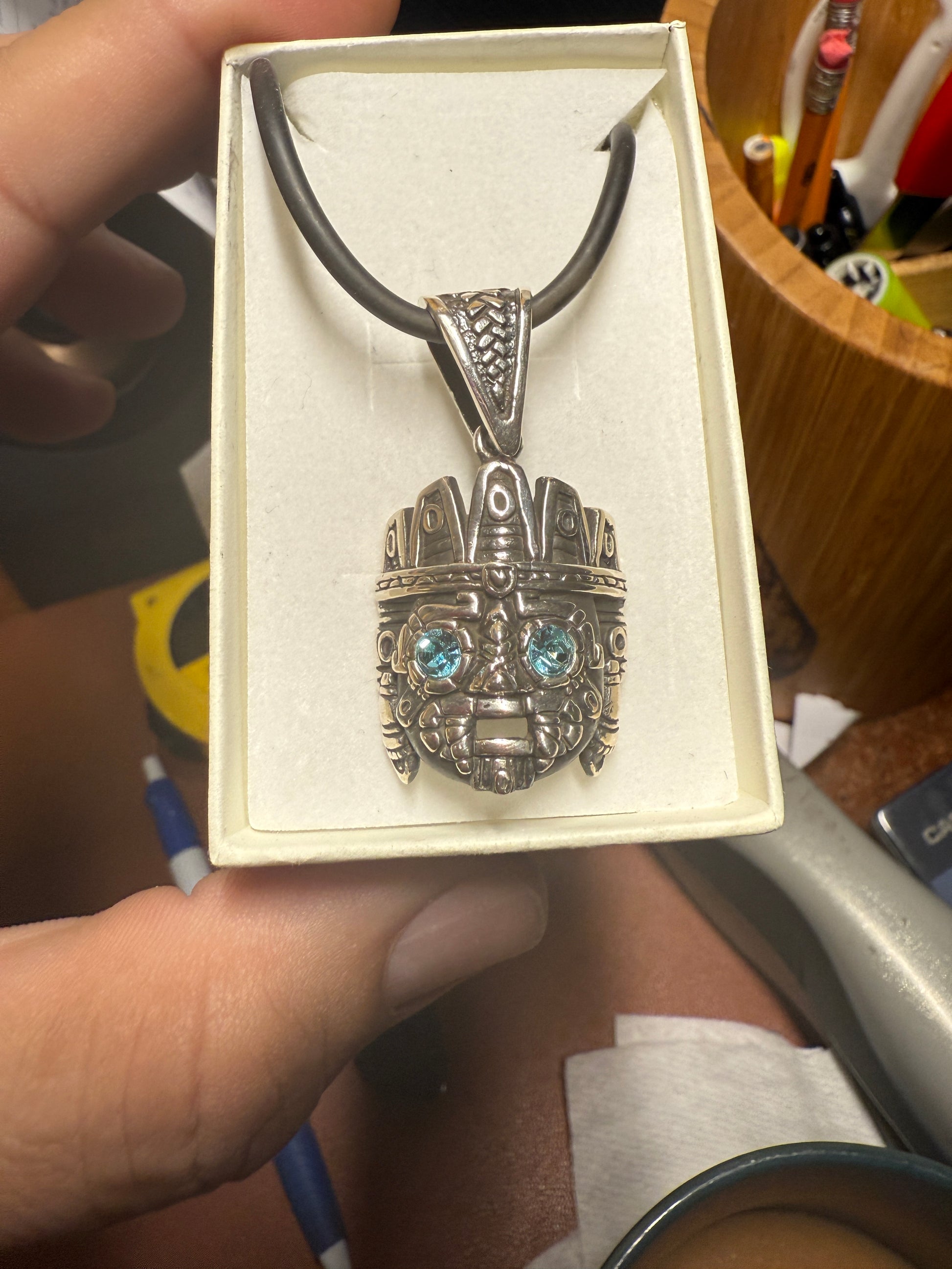 Tlaloc pendant Sterling Silver, Aztec Rain God, Blue Zirconia Eyes, Mexico, #4