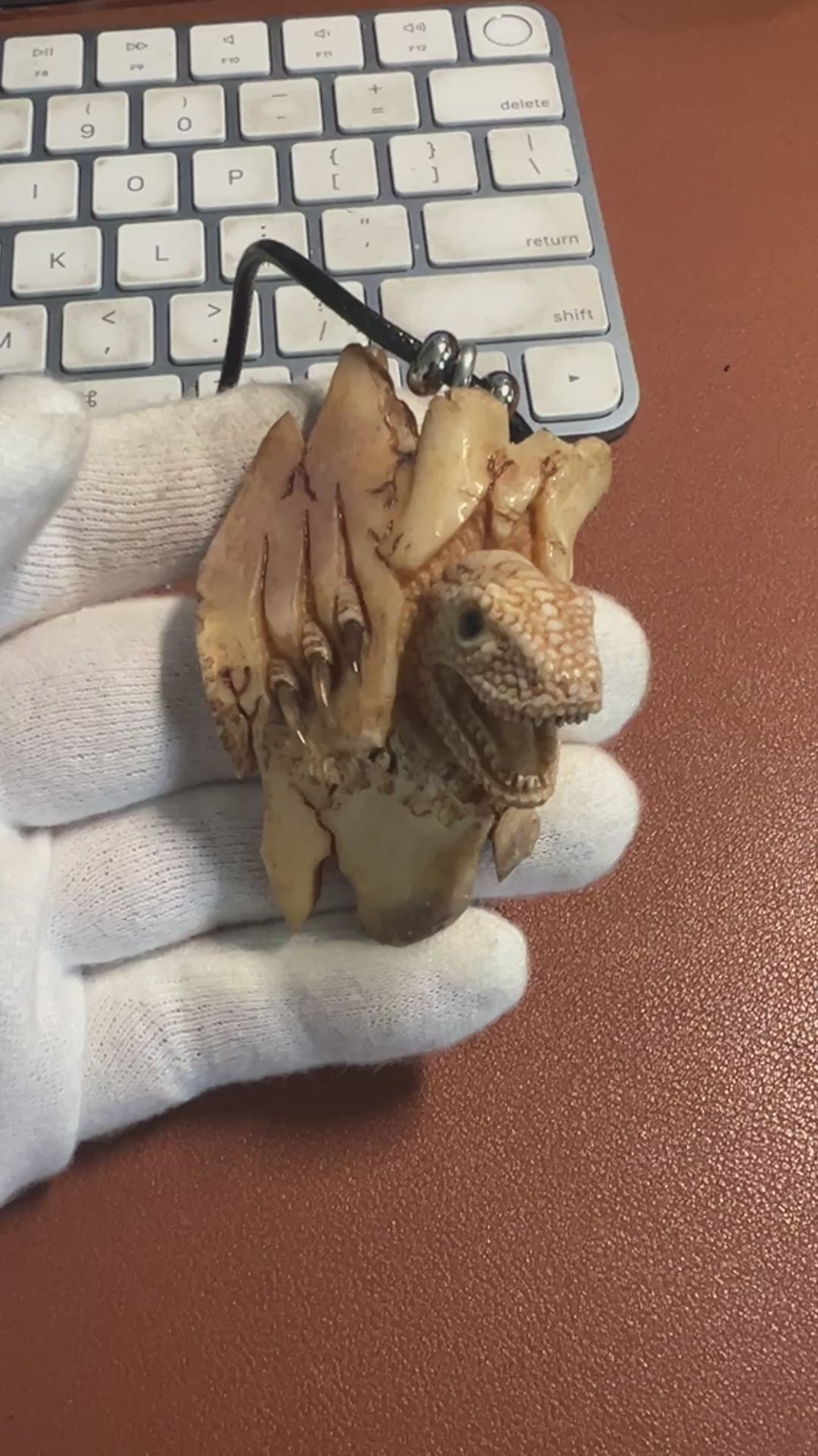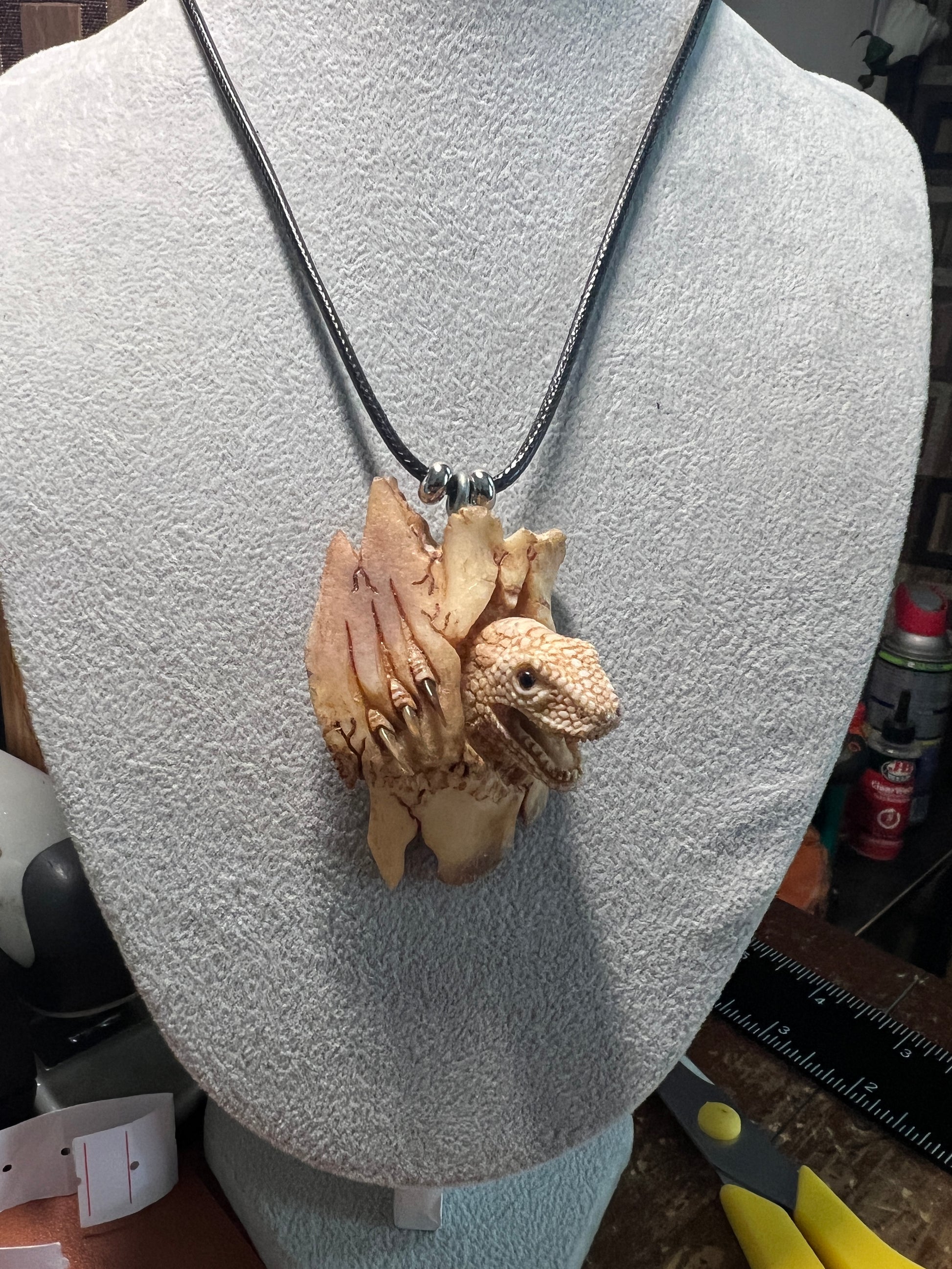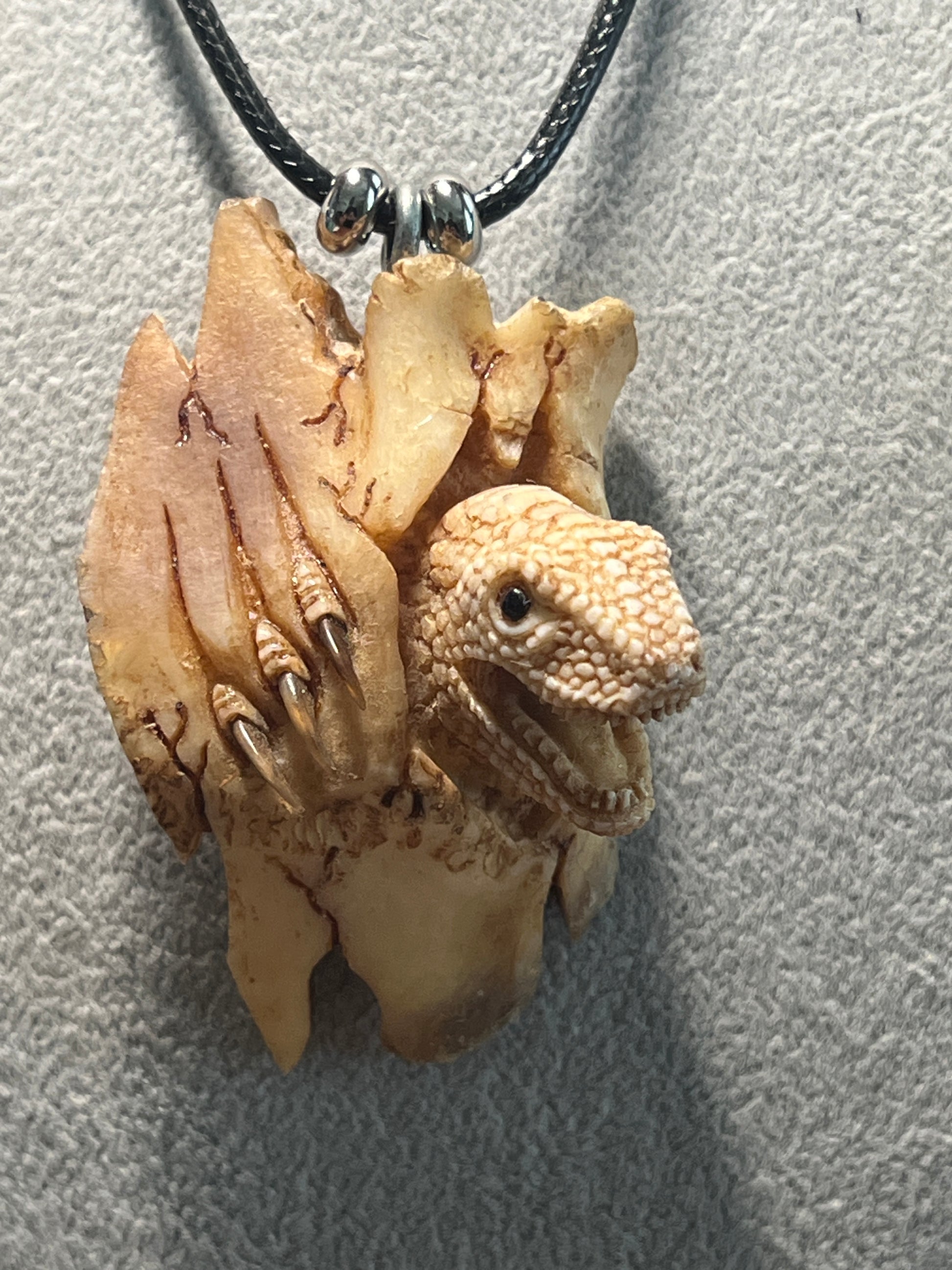 Velociraptor Jurassic Dinosaur Carved Deer Antler All Natural Mex Indigenous (H)