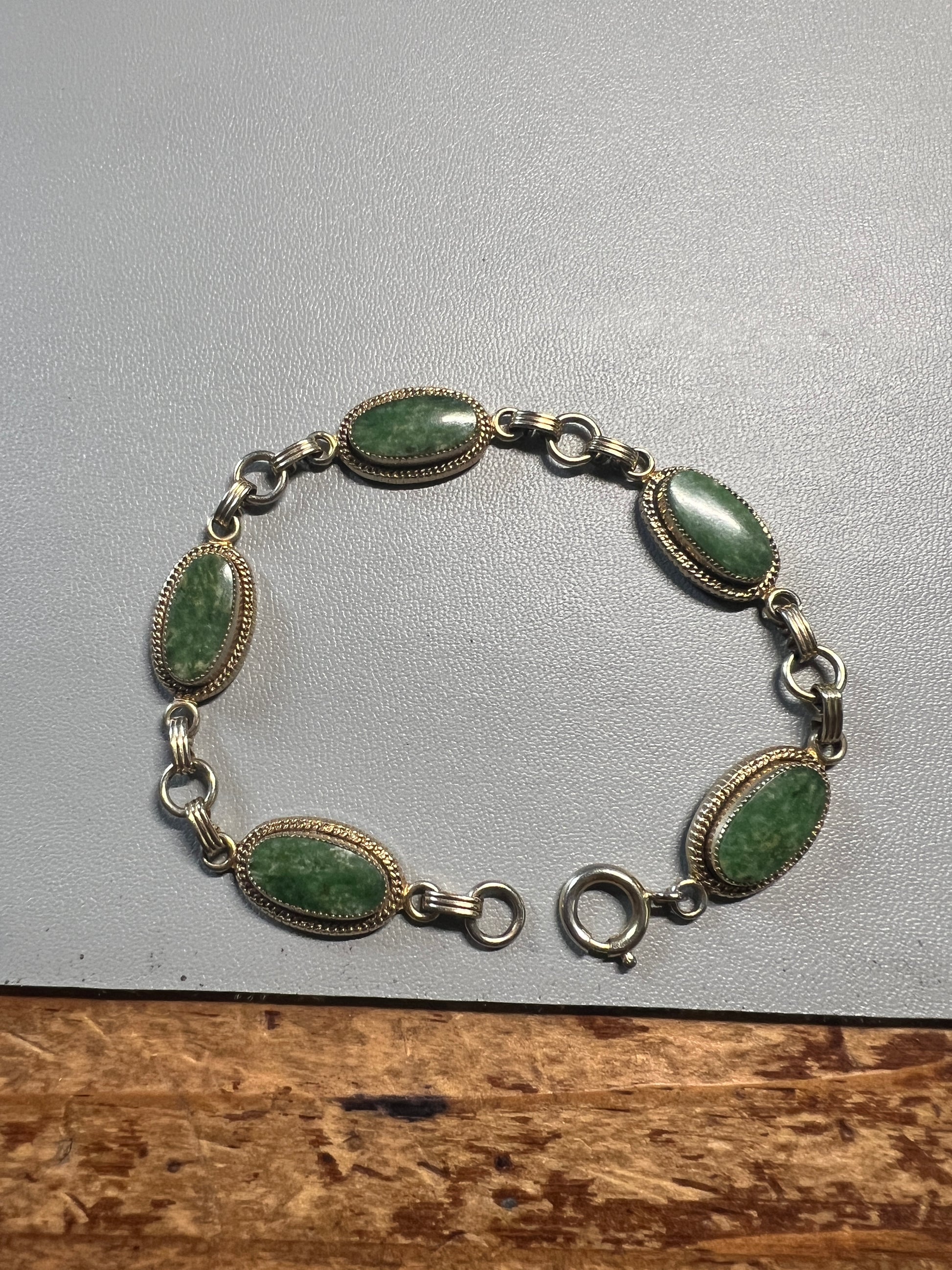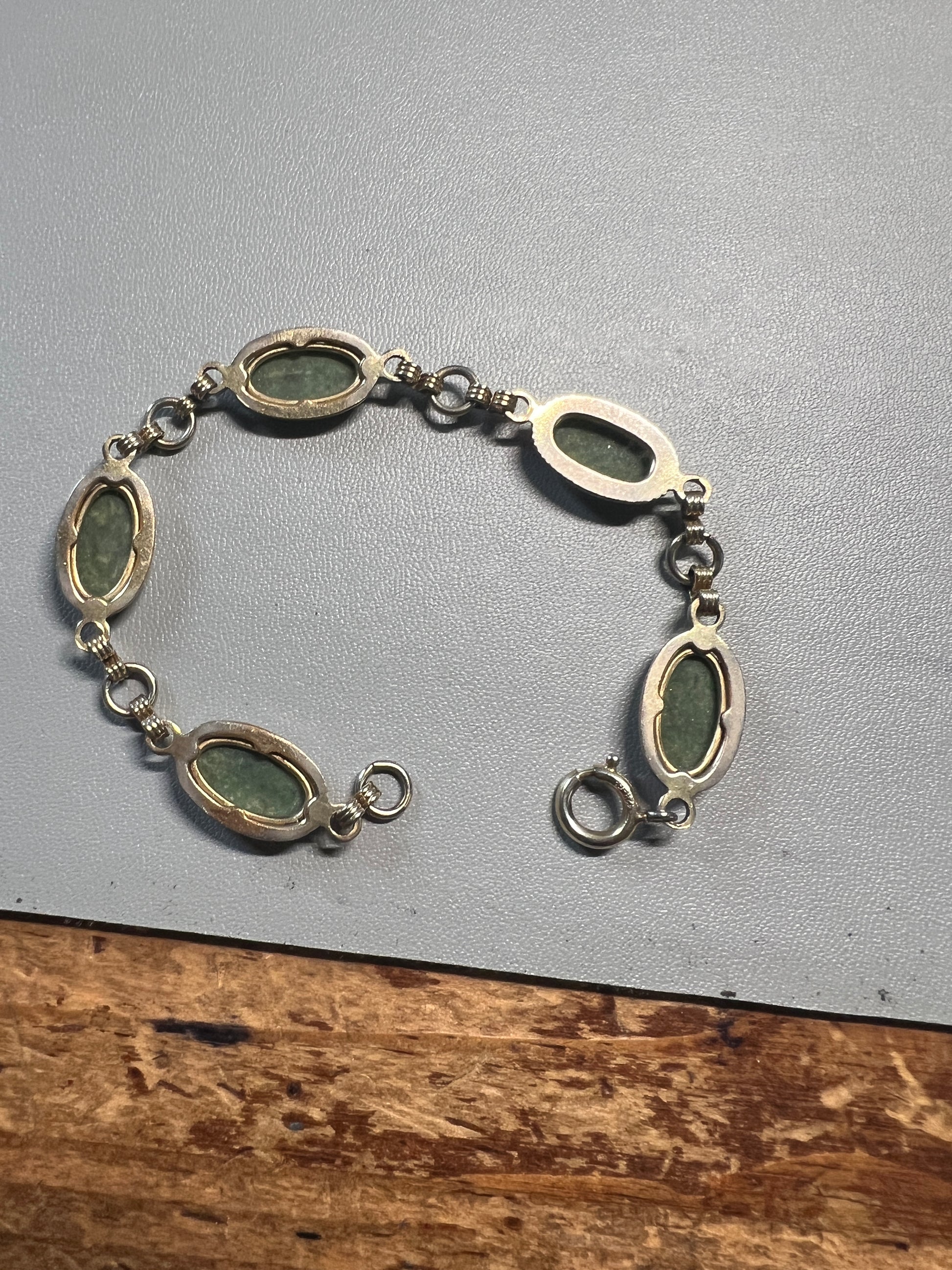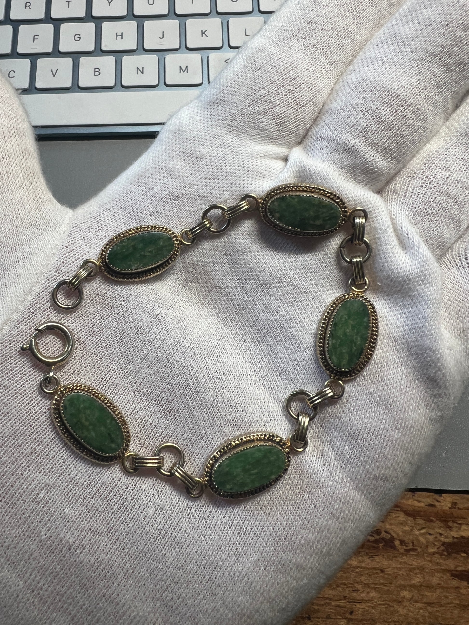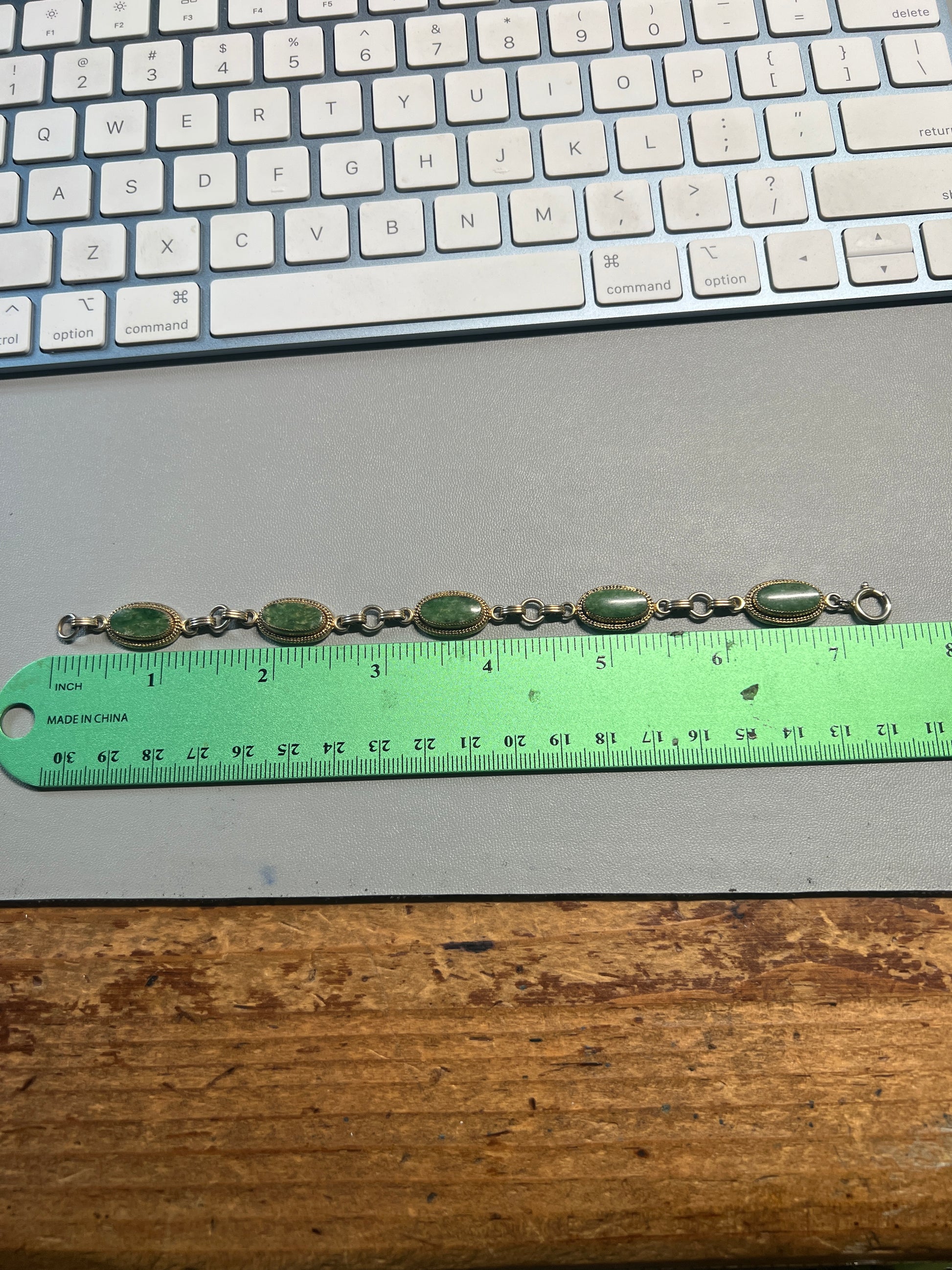 Vintage 12k GF Gold Filled Jade Green Gemstone Link Bracelet Jewelry (#12)
