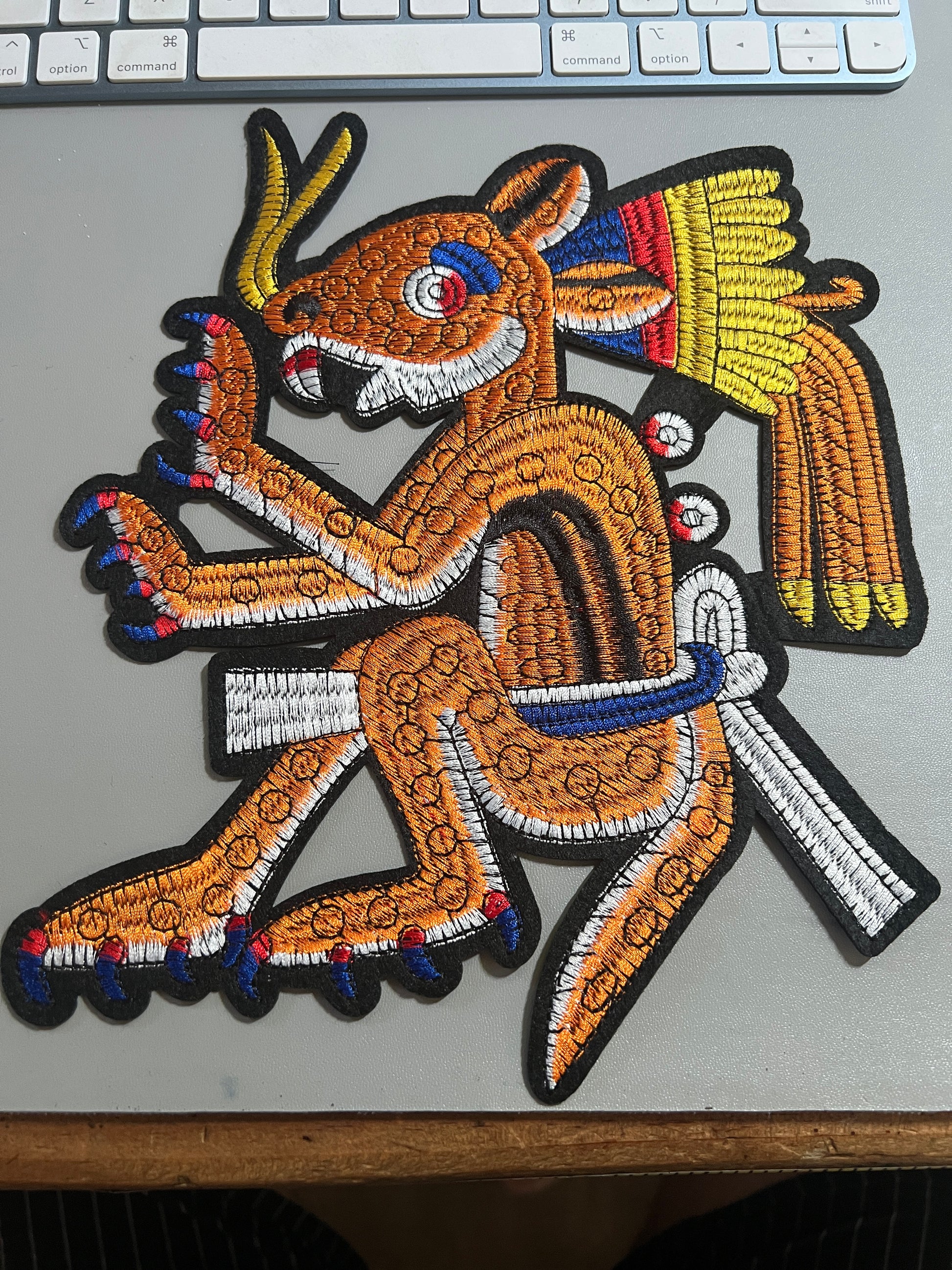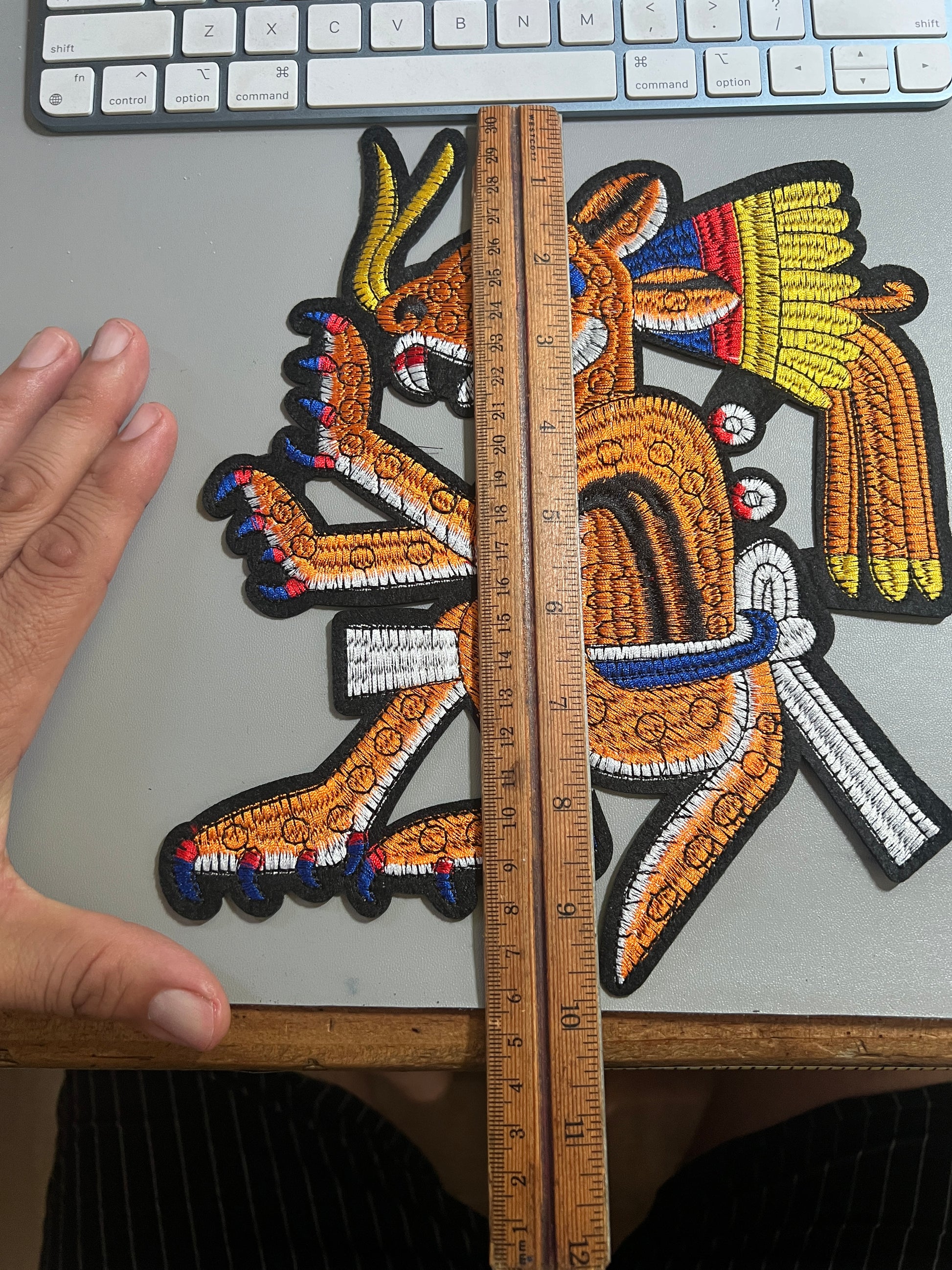 Large 9" Ocelotl Jaguar of Aztec Day Calendar Patch, Iron-On Patches, Mexica, Birthday Signs